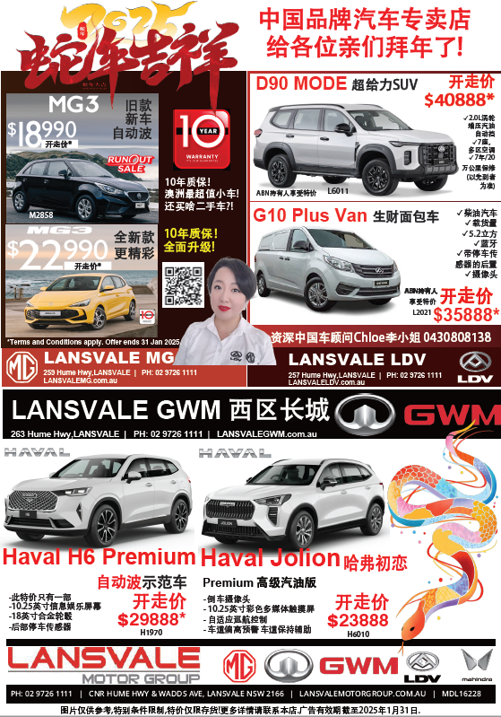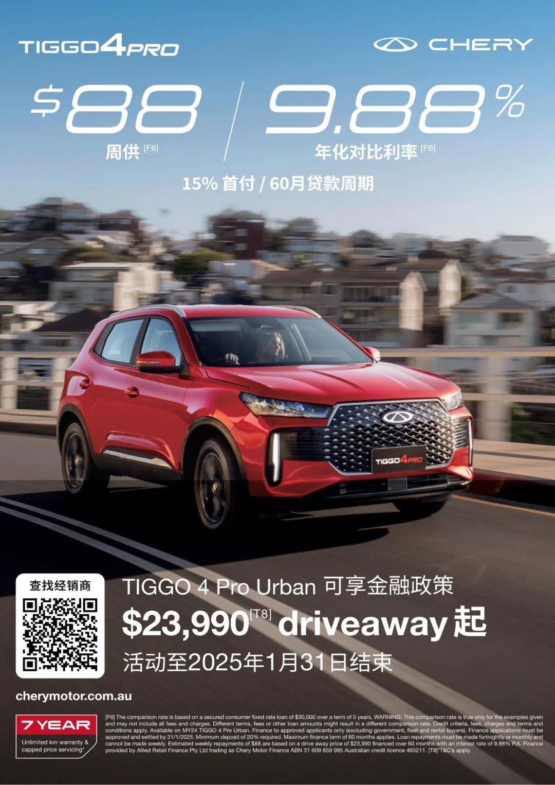 ![]() 长按识别二维码或者点击左下角"阅读原文" 即可手机在线阅读本期《澳洲汽车杂志》 ![]() 澳洲车市二月超值DEAL精选 ![]() VW------VW近期业绩表现平平,与缺乏有特点的新车产品以及足够竞争力的价格不无关系。GOLF 8.5及全新换代TIGUAN即将于今年陆续上市,伴随又一波价格上涨,很难预料上述两款本该具有相当市场号召力的新品在本地市场前景如何。T-ROC $37,990出车起价,GOLF $39,990出车起价,GOLF GTI $59,990出车。 SKODA------同样表现挣扎的SKODA目前有2.99%低息车贷提供,针对MY23及MY24车款。 ![]() HYUNDAI------I30 N SEDAN及HATCH目前皆有$3000现金折返,I30 SEDAN(包括HYBRID)及HATCH有$1500现金折返。大型SUV PALISADE同样是$3000现金折返。 KIA------小车STONIC GT-LINE $33,540出车,旧款CERATO GT $39,290出车。 ![]() MG------近期上市的换代ZS HYBRID $33,990出车起价,MG 5 $24,990出车起价,同样换代不久的中级SUV HS $34,990出车起价。 MAZDA------CX-60 $56,990出车起价,CX-30 $35,990出车起价,马三$33,990出车起价,退市在即的马六$37,990出车。 CHERY------TIGGO 4 PRO $23,990出车起价,OMODA 5 FX $27,990出车起价,七座车TIGGO 8 PRO MAX $38,990出车起价。 ![]() ![]() ![]() ![]() ![]() ![]() ![]() ![]() ![]() ![]() ![]() ![]() ![]() ![]() ![]() ![]() ![]() ![]() ![]() ![]() ![]() 相关文章 澳洲车市一月超值DEAL精选 ![]() 《澳洲汽车杂志》创刊21年,每周平均10多个新车品牌,几十家车行给您选择,汽车保养维修贷款配件一应俱全,悉尼华人商圈周末免费派发,更多一手澳洲车市资讯及独家原创车评,尽在澳洲汽车网www.autoweekly.com.au及微信公众号:autoweeklyau。澳洲华人买车省钱买车必看 ,简单粗暴有疗效 ![]() 。 重要信息 华人销售精英全家福 购车咨询问答专栏《澳洲汽车杂志》免费派发点 澳洲汽车杂志宣传片 |
