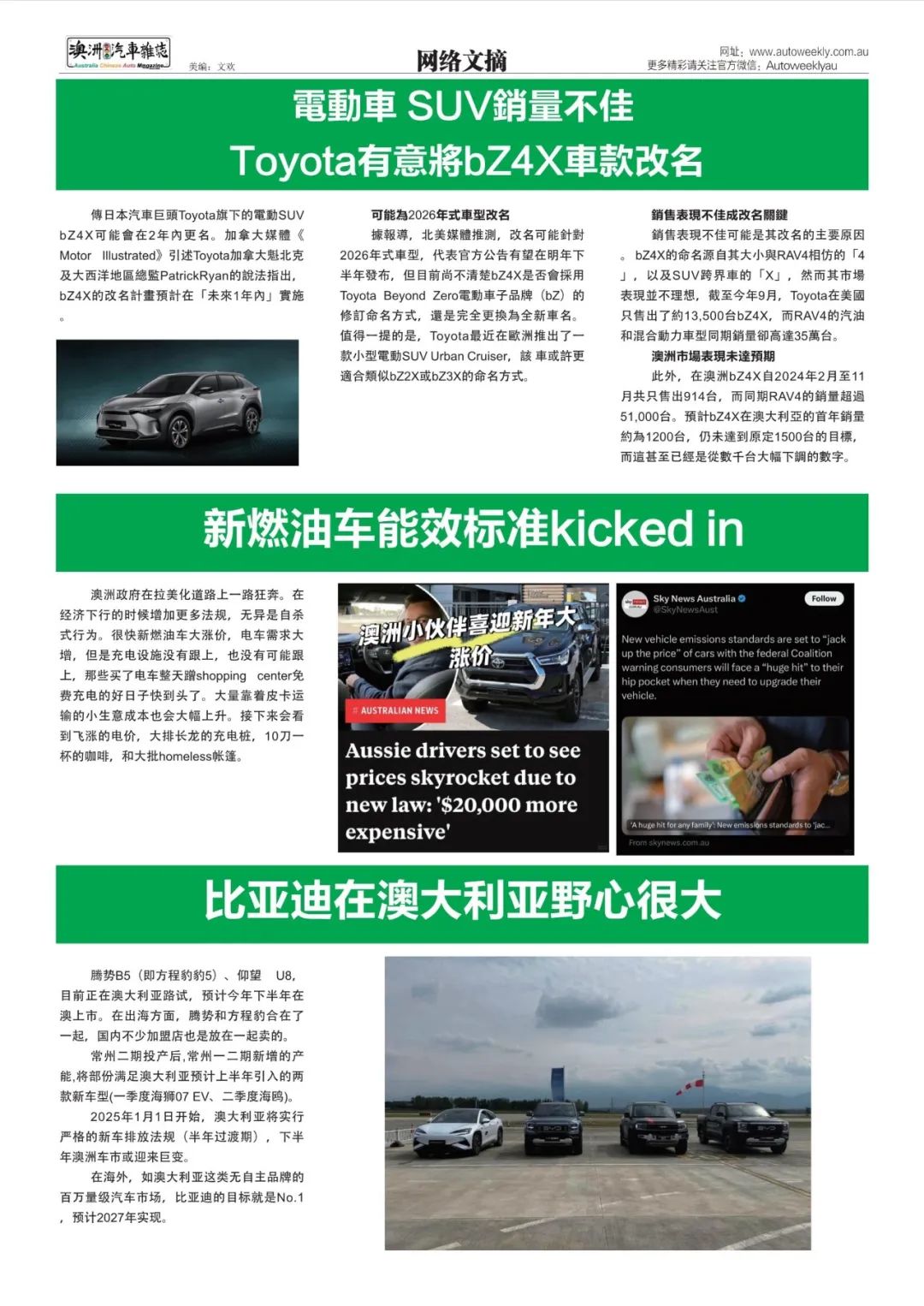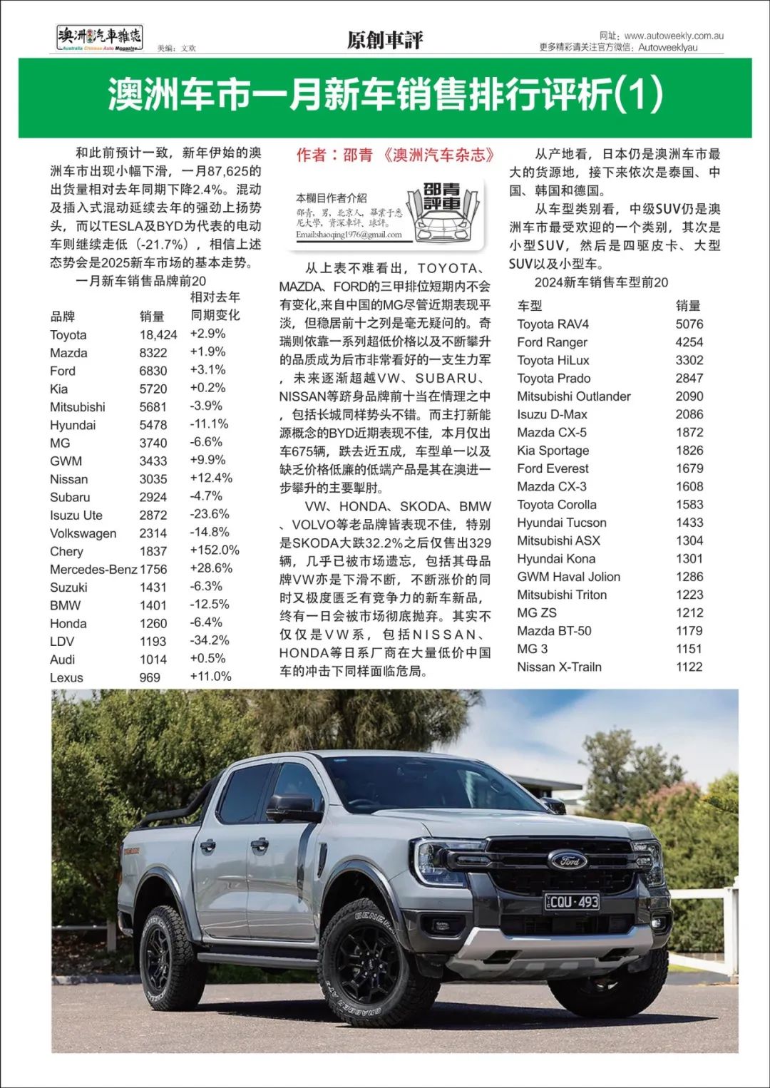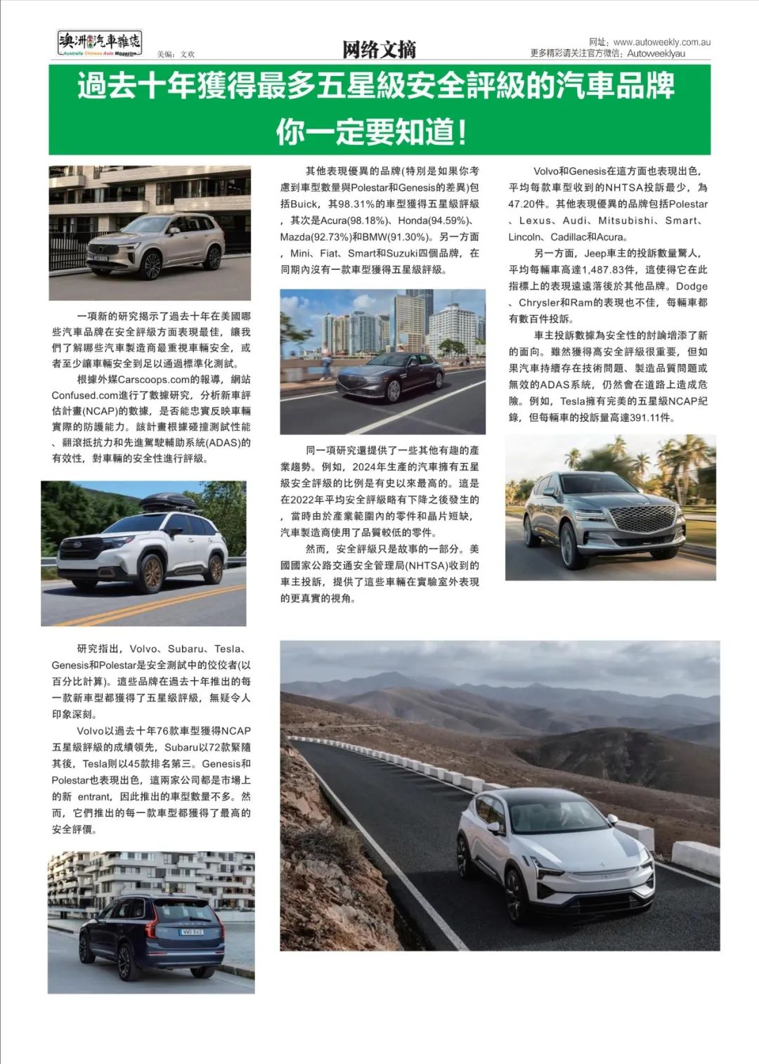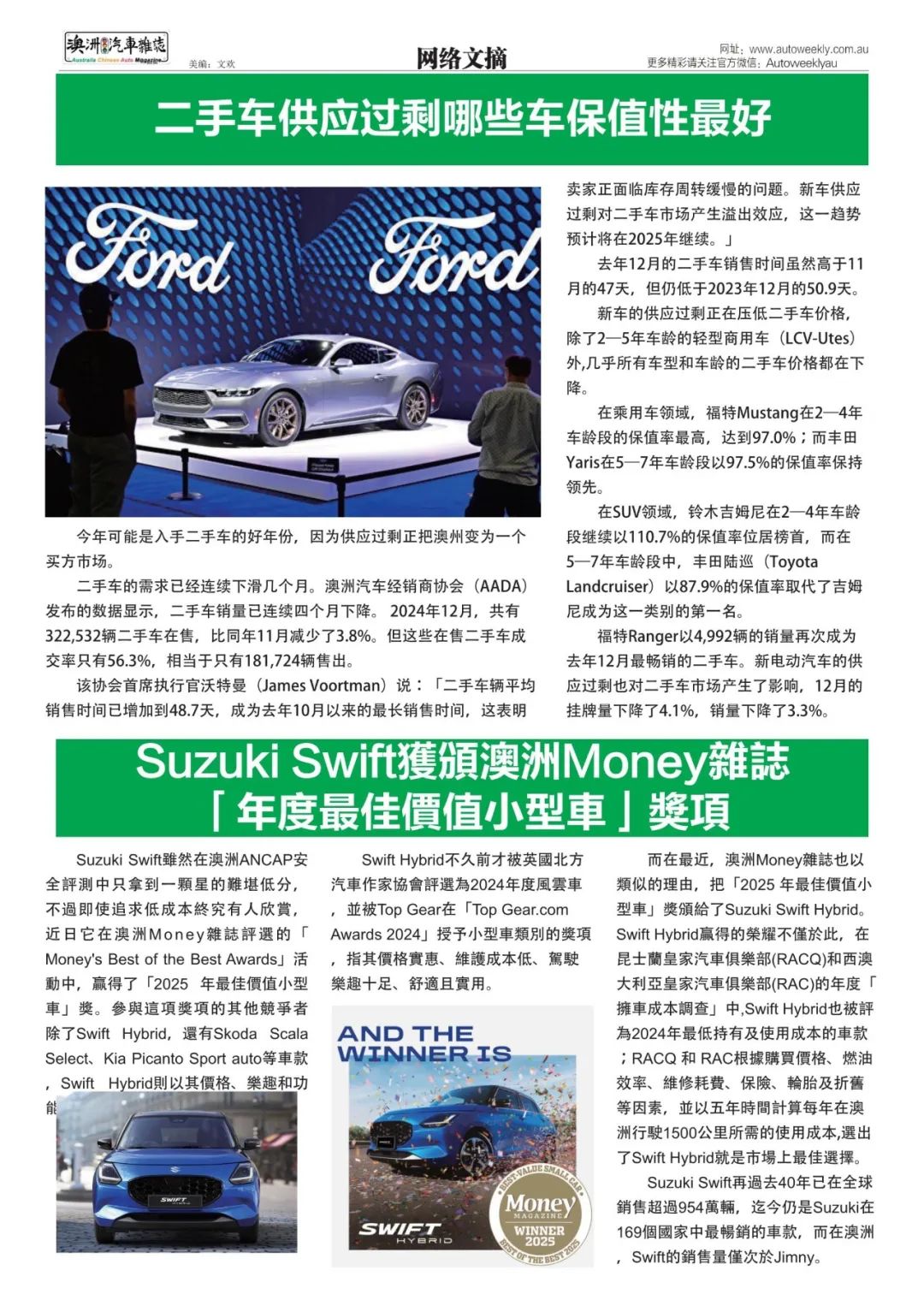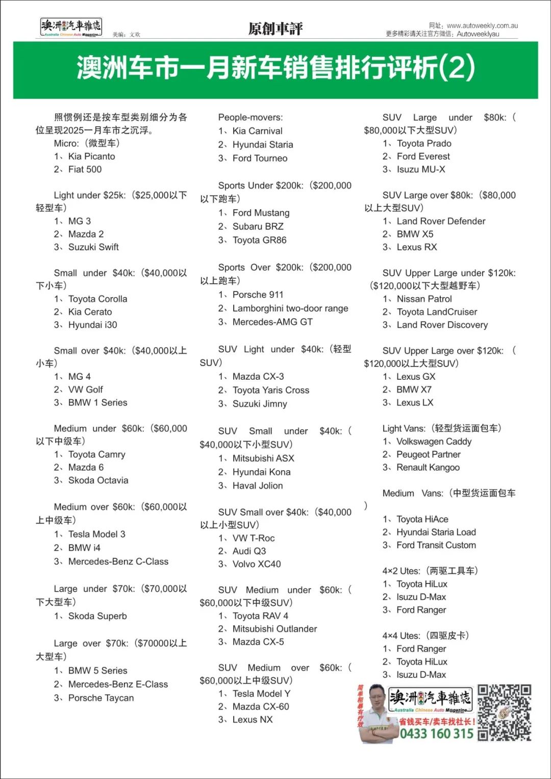 ![]() 长按识别二维码或者点击左下角"阅读原文" 即可手机在线阅读本期《澳洲汽车杂志》 ![]() 杂志介绍 《澳洲汽车杂志》创刊于2003年,是目前澳洲唯一中文汽车专业周刊。每周平均10余个新车品牌,多家车行给您选择,汽车保养维修配件贷款一应俱全,周末悉尼华人商圈免费派发,更多一手澳洲车市资讯及独家原创车评,尽在www.autoweekly.com.au澳洲汽车网及微信公众号:autoweeklyau。 每周电子版免费邮件及微信推送,欢迎关注订阅。 省钱购车热线:0433160315。 本期文章 澳洲 Haval Jolion 哪款最值得买? 國外研究顯示「電動車壽命不輸油車」!表現最好的是這品牌 過去十年獲得最多五星級安全評級的汽車品牌 你一定要知道! 澳人一年购买近15万辆中国车!专家预测:今年将突破20万 方形SUV休旅設計再次流行!但它竟有安全疑慮? 本期杂志在线阅读链接地址:www.autoweekly.com.au/journals/1140 上期杂志在线阅读链接地址:www.autoweekly.com.au/journals/1139 本期详细页 ![]() ![]() ![]() ![]() ![]() ![]() ![]() ![]() ![]() ![]() ![]() ![]() ![]() ![]() ![]() ![]() ![]() ![]() ![]() ![]() ![]() ![]() ![]() ![]() ![]() ![]() ![]() ![]() ![]() ![]() ![]() ![]() 相关文章 本周第1139期《澳洲汽车杂志》 本周第1133期《澳洲汽车杂志》 本周第1132期《澳洲汽车杂志》 更多杂志请上澳洲汽车网www.autoweekly.com.au 重要信息 华人销售精英全家福 购车咨询问答专栏 《澳洲汽车杂志》免费派发点 |