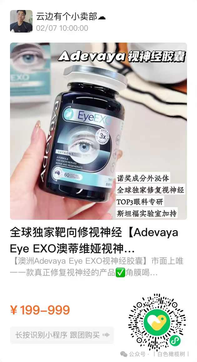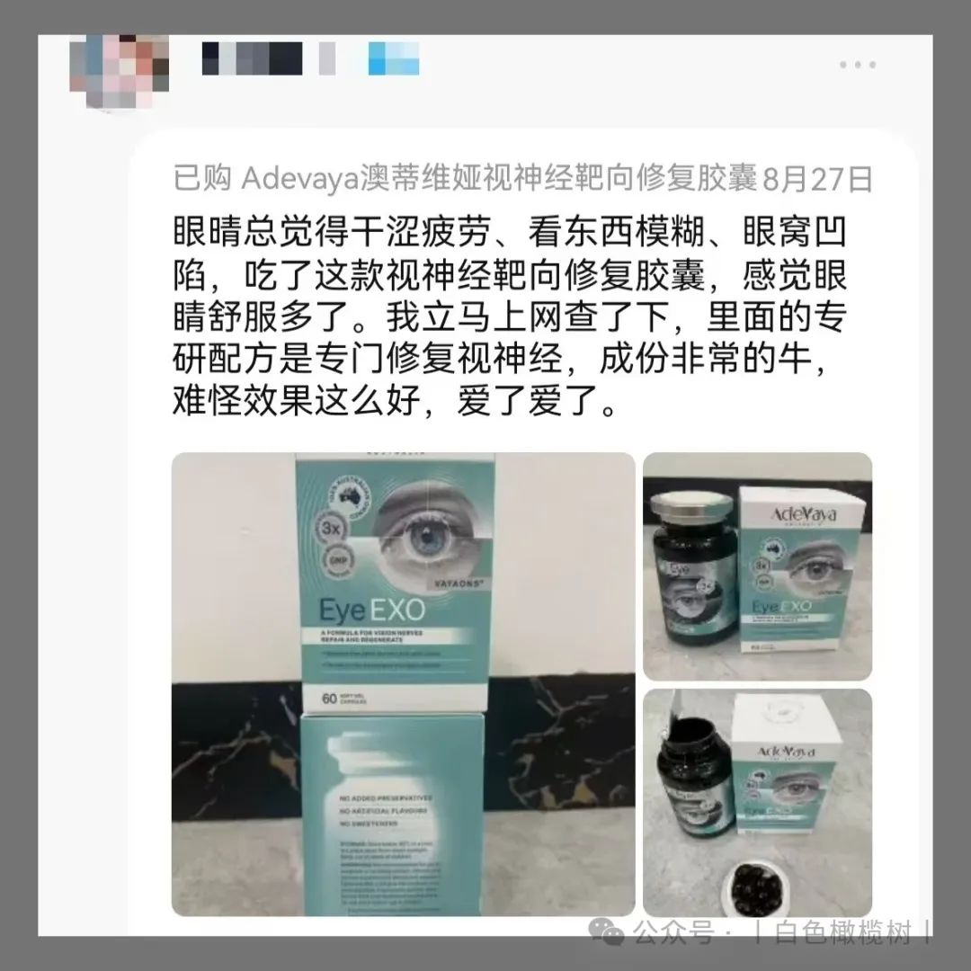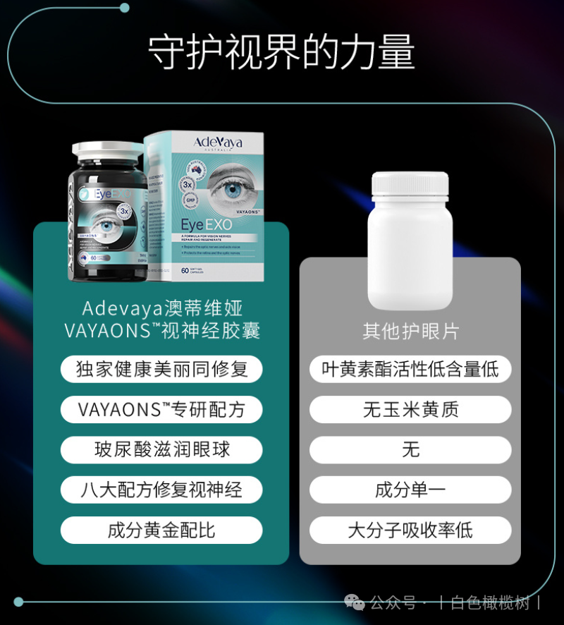 【Adevaya Eye EXO澳蒂维娅视神经胶囊】团购秒杀:199(直接图一扫码下单即可)![]() ![]() 全球独家靶向修视神经 【Adevaya Eye EXO澳蒂维娅视神经胶囊】 诺奖成分外泌体,28天全方位打造立体明眸 世界TOP眼科研究所、霍金私人医生研发 斯坦福AI实验室加持 澳洲线下💰431!团💰最低143 ✅角膜喝饱水,告别眼疲劳 ✅保护视网膜,度数不加深 ✅修复视神经,远离青光眼 8岁以上就能吃!1天2粒 长期盯屏的上班族,课业繁重的学生,视力下降的老人必入 快递 团管理订单管理商品核销 56天前 发布 跟团中691天2小时43分18秒后结 ![]() ![]() ![]() ![]() ![]() 【澳洲Adevaya Eye EXO视神经胶囊】 市面上唯一一款真正修复视神经的产品 ✅角膜喝饱水,润眼不酸涩,告别眼疲劳 ✅保护视网膜,KO红血丝,度数不加深 ✅修复视神经,眼部减压器,远离青光眼 🏆核心成分“因地外泌体” 一种能帮细胞返老还童的物质 2013年斩获诺贝尔生理学或医学奖! 在青光眼及其他视神经损伤中起到显著作用! 减少视网膜神经节细胞损失,修复细胞功能! 抑制炎症、促进血管生成,让视神经免受压迫! ![]() ![]() ![]() 为了测评是否有效 我们做了14天和28天SGS专业测试 眼部干涩/眨眼频次/眼部充血/明亮程度 均有明显改善 真正做到由内而外层层修护 秒杀叶黄素的单一功效👍🏻人这一辈子,陪你最久的 不是父母,不是爱人,而是手机!! 上厕所不能不拿,连走路都放不下 睡前更是被它迷得五迷三道 追短剧、看小说、打游戏、蹲直播 每天顶着黑眼圈出门,眼里没光,人老珠黄 时间久了,眼睛开始干涩、酸痛 看东西模糊不清,有时还会眼皮发麻、眼前一黑 妥妥的用眼过度,视力透支! ![]() 用眼过度的还有老人和孩子 孩子在校盯投影,回家上网课 就着手机打完卡,还得就着手机放松一下 小小年纪就近视散光,度数飞涨 老人上网比年轻人还沉迷,一天十几小时盯屏 视网膜老化、老眼昏花;视神经萎缩,视力退化 ![]() ![]() 眼睛就像一台相机 ◼️镜头就是角膜、晶状体,负责透光、聚焦 ◼️视网膜是胶片,记录光的强度和颜色 ◼️视神经就是摄影师,负责把胶片拿进暗房 让大脑冲洗底片,最后显影成像 视神经断了,成像的桥梁就断了 就算眼睛、大脑都好好的 还是会导致视力下降,甚至是双目失明! ![]() ![]() 🚫我们滴的眼药水充其量只是擦擦镜头 🚫吃的叶黄素最多只是升级胶片 最该养护的视神经却总是惨遭忽略! 难怪之前吃那么多护眼丸都没什么效果! ![]() 那为什么选择Adevaya? 因为Adevaya是澳洲国民品牌 每3个澳洲人里就有1个是澳蒂维亚的忠实粉丝 就连澳洲总理阿博特夫妇都是它的铁粉! 与其他品牌不同,Adevaya背靠诺奖实验室 在成分和配方上一直走在行业前列 视神经胶囊的研发就是最佳佐证! ![]() ![]() ![]() 【澳洲总理站台】 澳大利亚总理托尼阿博特及夫人玛格丽特 都是Adevaya的忠实拥趸, 品牌国民度可见一斑! ![]() 澳蒂维娅制药有限公司位于澳大利亚悉尼, 是一家国民级的制药企业 【诺奖研发实力】 1953年生物化学家汉斯·克雷布斯因发现三羧酸循环斩获诺贝尔生理学或医学奖,并基于此成立克雷布斯实验室,继续人类代谢研究 1998年Adevaya与克雷布斯实验室达成战略合作,成立生命科学研究中心,背靠诺奖科研实力,产品功效更卓著! ![]() ![]() ![]() 【超前的研发思路】 Adevaya是澳网公开赛的赞助方之一 网球是一种考验动态视力的运动 长期视疲劳、视网膜病变、视神经损伤 都会导致动态视力下降 特别是视神经损伤,会导致视觉处理速度下降 运动员手眼失去同步,失球,乃至全盘皆输 这启发Adevaya研发师深入研究视神经修护成分 ![]() 【殿堂级研发团队】 霍金私人医生Neil Bressler带队,10年研发! 世界TOP3美国威尔玛眼科研究所权威临床支持! 斯坦福AI实验室经过上亿次人工神经网络实验 最终打磨出Adevaya Vayaons™专利配方 提供角膜晶状体、视网膜、视神经三重营养 10大黄金成分,全方位打造立体明眸 独家外泌体靶向修复技术,将生物利用率 拉到极致的99%!实现视神经“返老还童”! ![]() ![]() Adevaya Eye EXO视神经胶囊 在澳洲最大的商超Cole,最大的连锁药房CW 都要卖到💰89澳元/瓶!折合人民币431元! 团💰259/瓶,比人肉背回来还便宜! 限时买6送1,多瓶低至171/瓶! 1瓶3效,叶黄素的价格, 买到视神经专利配方! 加班熬夜,游戏刷剧,常戴隐形,视疲劳的! 眼干,红血丝、眼压高分泌物多、度数加深的! 叶黄素一买好几种,一吃一大把, 吃了没效果的,都赶快安排上! ![]() ![]() 【明星力荐】 伊能静、百克力、四火姐张棪琰、小P老师、抖音达人dada倾力推荐!朱梓骁更是赴澳溯源! ![]() 【全球热卖】 澳洲本土500+政府许可连锁药房在售! 欧美亚马逊、丝芙兰同款,日韩松本清、cosme、乐天热销! ![]() 澳洲旅游大使、头部主播都在推荐 妥妥的爆款! 👉️随手一翻都是好评 “眼睛没那么疲劳了,看东西也更轻松了” “早上起来眼白都没有红血丝,看着也不会很疲惫” “孩子不再频繁揉眼睛了” “买给爸妈,吃下来眼睛不酸不疼,眼压下来了” ![]() ![]() ![]() ![]() ![]() ![]() ![]() 高强度用眼、营养不良和精神压力 是视力衰退的元凶! 早八人上班上到人机合一,下班重度依赖手机 学生党时间紧任务重,上课学习,备考刷题 老年人为了1块钱红包,连刷十几个视频 据统计,我国人均单日手机使用时长达7.2小时 光看手机就占用一天1/3的时间! 甚至有人1天盯屏14个小