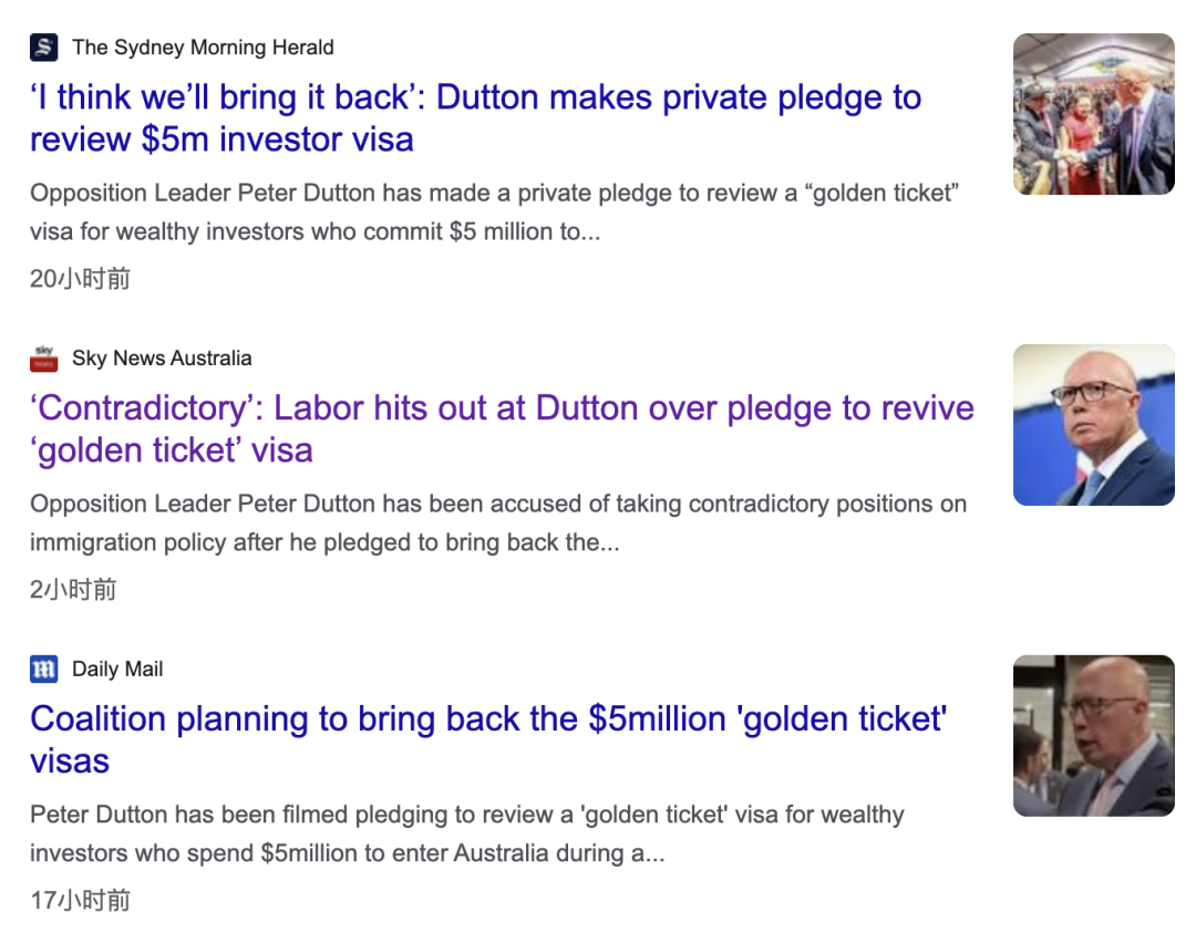 ![]() ![]() 最近,澳洲又一签证或有重大变化。 曾经备受关注的“投资换签证”计划(Significant Investor Visa, SIV)可能迎来回归的机会。 澳洲联邦反对党正在考虑: 重新启动“投资换签证”计划,允许外国投资者通过大额投资快速获得澳洲签证! ![]() 一旦实现,大批中国富豪可轻松获得签证。 早在2012年,澳洲工党推出了该签证:申请人只需在澳洲投资至少500万澳元! 即可获得快速通道,无需英语考试、年龄限制或学历要求。 ![]() 这项签证政策曾吸引了大量中国富豪,成为很多人移民澳洲的重要通道! 然而,由于存在潜在的洗钱和非法资金流入问题,澳洲政府在2023年废除了这一签证类别。 如今,反对党领袖Peter Dutton在与华人移民中介的对话中表示: 可能会重新考虑这一签证,并设计新的模式! 如果该签证恢复,意味着中国富豪将重新获得“投资换居留”的机会,无需众多条件限制,只需达到投资门槛即可快速入境澳洲。 数据显示,2012年到2020年6月,澳洲一共批准了2349份SIV签证,为澳洲吸引了超过100亿澳元的投资。 ![]() 申请人中,84.9%来自中国大陆,而获得申请的人员中,84.9%来自中国大陆。 如果该签证恢复,意味着中国富豪将重新获得“投资换居留”的机会,无需众多条件限制,只需达到投资门槛即可快速入境澳洲。 对经济贡献较大的投资者来说,意味着更多移民机会。 ![]() ![]() 美移民局官宣:2026财年H-1B抽签登记3月7日开启 ![]() 香港入境处年度总结报告:释放三大重磅信号! ![]() 香港引进人才受养人“本地生”定义将调整,教育局长最新回应 ![]() 学到崩溃!压力最大的50所美国大学,名次越高,压力越大? ![]() ![]() ![]() ![]() |
