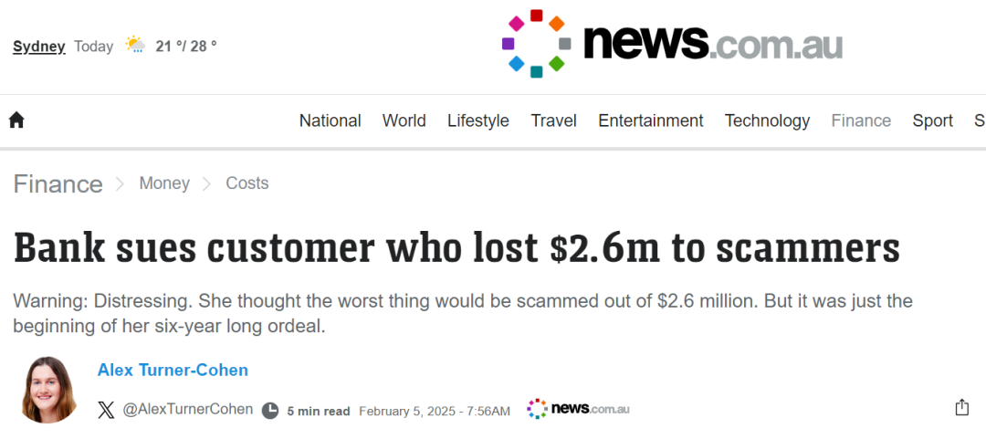![]() ![]() 太惨了 “我真的想过自杀,”Sylvia Chou流着泪说,“家人和朋友是我坚持下去的动力,因为我不能辜负他们的信任。” 今年57岁的Sylvia Chou(以下简称周女士)是悉尼一名会计师。 六年前,她遭遇了一场精心设计的外汇交易骗局,被骗了260万澳元,不仅所有积蓄被骗走、房产做了再融资,还借了亲戚朋友几十万澳元,逼得她一度想要轻生。 原以为这已经够惨了,没想到最糟糕的事还在后头——如今她竟然被银行告上法庭。 ![]() NAB以周女士再融资时存在差异为由,起诉她偿还140万澳元及利息。 如果输掉官司,周女士不仅房子会被银行收回,还将不得不宣布破产,这意味着她会失去会计师执照。 她说:“破产对我来说意味着没有未来,因为我再也不能当税务代理,也不能再做合格的会计师了。我还能做什么呢?” ![]() 图为周女士 因此,周女士全力支持news.com.au发起的“人先于利”(People Before Profit)活动,呼吁联邦政府像英国一样,强制要求银行对诈骗受害者进行赔偿。 去年10月,英国出台了立法,规定除存在重大过失的情况外,银行需在五个工作日内对诈骗受害者进行赔偿。 ![]() ![]() ![]() 被骗始末 2019年,周女士在社交媒体上看到一则似乎得到真人秀节目《Shark Tank》背书的广告,内容是关于如何增加投资组合。 广告中提到,投资者需要向一个名为BlueLexus的外汇交易平台进行投资,通过买卖外汇获利。 ![]() 由于此前有过成功的交易经历,所以周女士并未察觉异样。 她还在网上进行了搜索,也没找到任何关于该平台的负面评价,而且该平台登记的母公司位于美国。 “我做了功课,仔细核查过,它看起来非常专业,”周女士说。 并且在开户的时候,对方还要求周女士提供100分的身份证明文件,以及一张近期的水电费账单证明住址,这让她更加相信不是骗局。 ![]() 该公司还有BPAY账户,周女士将260万澳元陆续都转到了这个账户。 起初,她只投入了250澳元,后来为了获得更多收益,又追加了1万澳元。 看到投资似乎进展顺利,她便继续投入了更多资金。 BlueLexus平台随后表示,会按她投入的金额进行1:1等额匹配。 ![]() 但几周后,当她试图提现时,平台却表示,她得偿还他们投入的钱。 于是她向亲朋好友借了钱,原本想着很快就能还上,但这笔钱还完后,平台又告诉她需要追加150万澳元作为保证金。 无奈之下,她只能对自己的住房和两套投资房产进行了再融资来支付这笔钱。 可付了保证金之后,她的钱依旧无法取出,这时她才意识到自己遭遇了诈骗。 ![]() 此时,她不仅积蓄被骗光,还欠了亲朋好友50多万澳元,外加再融资的钱。 一些相识多年的朋友因此与她断交,其中一些朋友还因借钱给她,和自己的家人产生了矛盾。 这让周女士一度崩溃到想要自杀。 在接受采访时,周女士还表示:“很多人认为我是因为贪婪、愚蠢才会被骗,他们没那么蠢,不会被骗。但是,不要太相信自己。这是我犯的第一个错误。” ![]() ![]() ![]() ![]() 她指责NAB银行不负责任,反被银行起诉 周女士称,在被骗的三个月里,她通过NAB银行账户向海外转账了数百万澳元,金额和次数比她过去六年加起来还要多,但NAB从未向她发出任何警示。 即便第一笔转账是从澳元兑换成俄罗斯卢布,银行也从未提醒有任何异常。 ![]() 而在房产再融资时,她把银行换成了Westpac。 在她第一次试图通过Westpac账户向骗子付款时,银行就拦截了这笔交易,随后还要求她到分行完成100分的身份验证。 相比之下,NAB始终没有这样做过。 不仅如此,尽管Westpac在再融资时偿还了她在NAB的贷款,但NAB却从未关闭她的银行账户,这使得NAB能够对她提起法律诉讼。 ![]() 周女士称,NAB不仅向她送达了法律文书,还将文件交给了她另外两处投资房的租户。 租户现在知道了许多她的个人信息,而她并未允许银行透露这些信息。 NAB在一份声明中称,向她的租户送达索赔声明是“法律要求,并非侵犯隐私”。 ![]() 起初,周女士希望通过澳洲金融投诉管理局(AFCA)追回全部损失,她认为NAB违反了反洗钱法,本应采取更多措施阻止交易。 但AFCA并没有支持她的主张,还要求她支付与此事相关的所有费用。 现在,周女士不得不花更多钱聘请律师,准备与NAB展开漫长的法律诉讼。 不知道最终的结局如何。 而像周女士这样有惨痛经历的澳洲受害者不在少数, 我们要如何引以为戒呢, 详情: 澳洲已成全球笑柄,数十万澳洲人成受害者,很多华人痛失钱财 来源:news.com.au 部分图片来自网络 ![]() ![]() ![]() ☞突发!又一架飞机坠毁!机上人员全部遇难!10天内第4起![]() ![]() ![]() ![]() ![]() |