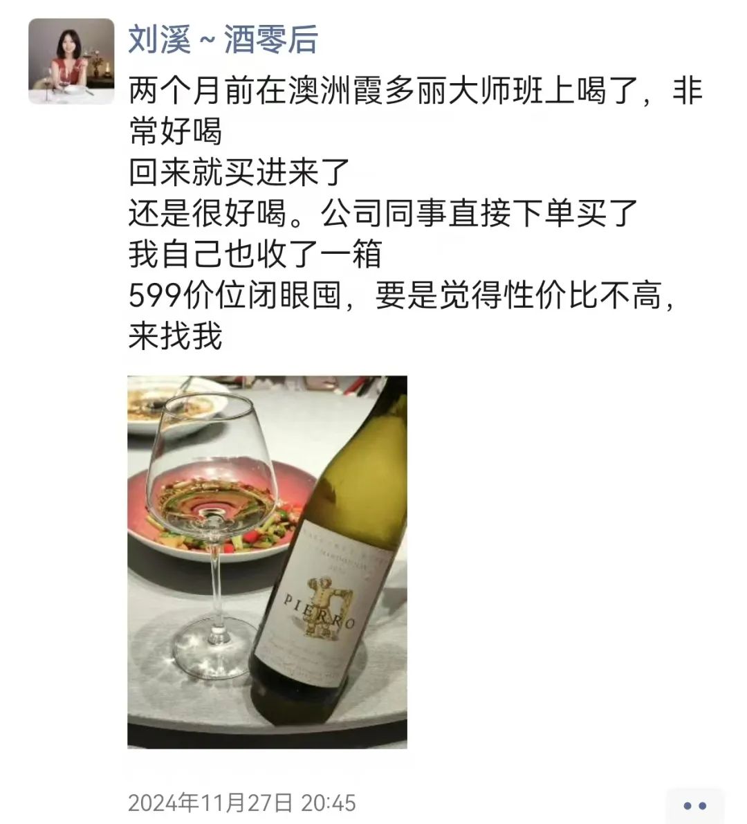 ▲ 点击关注,一起喝懂天下酒 ▲ 去年受邀去了西澳一趟,主要是实地拜访酒庄,顺带喝了7天酒,每天从早喝到晚,至少喝了几百款。期间参加了一个霞多丽大师班,这是主办方甄选的6款能代表西澳门面的霞多丽,而且有2023和2018年两个垂直年份。 ![]() 我喝到了这款皮耶诺霞多丽(Pierro Chardonnay),白桃、蜜瓜、香草冰激淋、矿物的香气,入口就有奶油、烤面包、甜瓜的味道,口感细腻丝滑,有勃艮第的高级精致感,关键500多,性价比真的是太高了,比很多普通的勃艮第默尔索好喝多了!回来我自己就囤了一箱,带给同事们喝,大家喝完直接就下单了,真的很好喝,闭眼入。 ![]() 庄主Mike Peterkin是库伦(Cullen)庄主的女婿,问了他才知道,这酒在市场上是配额制,酒庄不执着于营销,懂的人自己都在找来喝,根本不愁卖。这次酒零后带来少量配额,老规矩,直接踩箱囤!要是觉得性价比不高,直接来找我。 推荐:2022年皮耶诺酒庄霞多丽干白 Pierro Chardonnay
