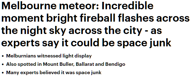 “在维州/墨尔本的任何人都会在南部看到某种流星/彗星/太空碎片!?” Shannon问道。