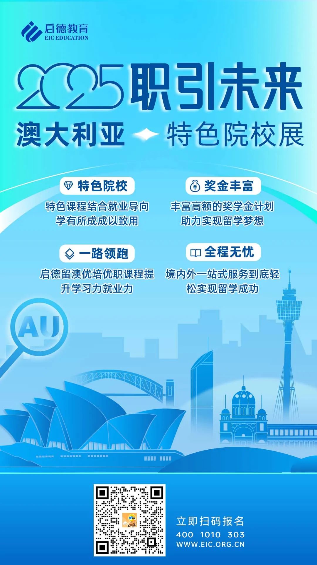 ![]() 2025职引未来•澳大利亚特色院校展已经正式开启! 活动亮点 特色院校:特色课程结合就业导向,学有所成成以致用 奖金丰富:丰富高额的奖学金计划,助力实现留学梦想 一路领跑:启德留澳优培优职课程,提升学习力就业力 全程无忧:境内外一站式服务到底,轻松实现留学成功 参展院校 格里菲斯大学、伍伦贡大学、悉尼麦考瑞大学、 乐卓博大学、 迪肯大学、弗林德斯大学、堪培拉大学、南澳大学、西悉尼大学、伊迪斯科文大学 全国巡展 4月12日 郑州 4月19日 南京 4月20日 上海 扫描下方二维码立即报名 ![]() ![]() 更多留学相关问题扫码添加小启为你解答! ![]() ![]() ![]() 启德重燃计划,高考后升学新出路 ![]() 点击图片了解详情 ![]() ![]() 启德全方位人才测评上线啦,点击查看更多 ![]() ![]() 留学考试 | 预备课 | 各国小语种 ▼启德网课中心&小语种中心帮你全面通关▼ ![]() ![]() |