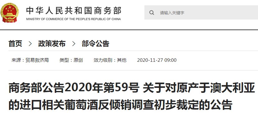 商务部网站11月27日消息,商务部日前发布2020年第34号公告称,调查机关初步认定,原产于澳大利亚的进口相关葡萄酒存在倾销,国内相关葡萄酒产业受到实质损害,而且倾销与实质损害之间存在因果关系。根据《反倾销条例》第二十八条和第二十九条的规定,调查机关决定采用保证金形式实施临时反倾销措施。![]() 公告全文如下 ↓↓↓ ![]() ![]() 商务部 2020年11月27日 来源:商务部网站 本期编辑:胡洪江、蒋川 ![]() 觉得好看,请点这里↓↓↓ |