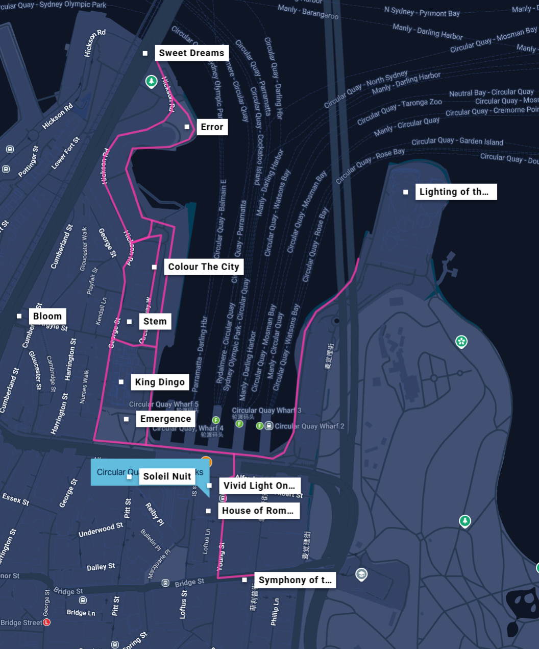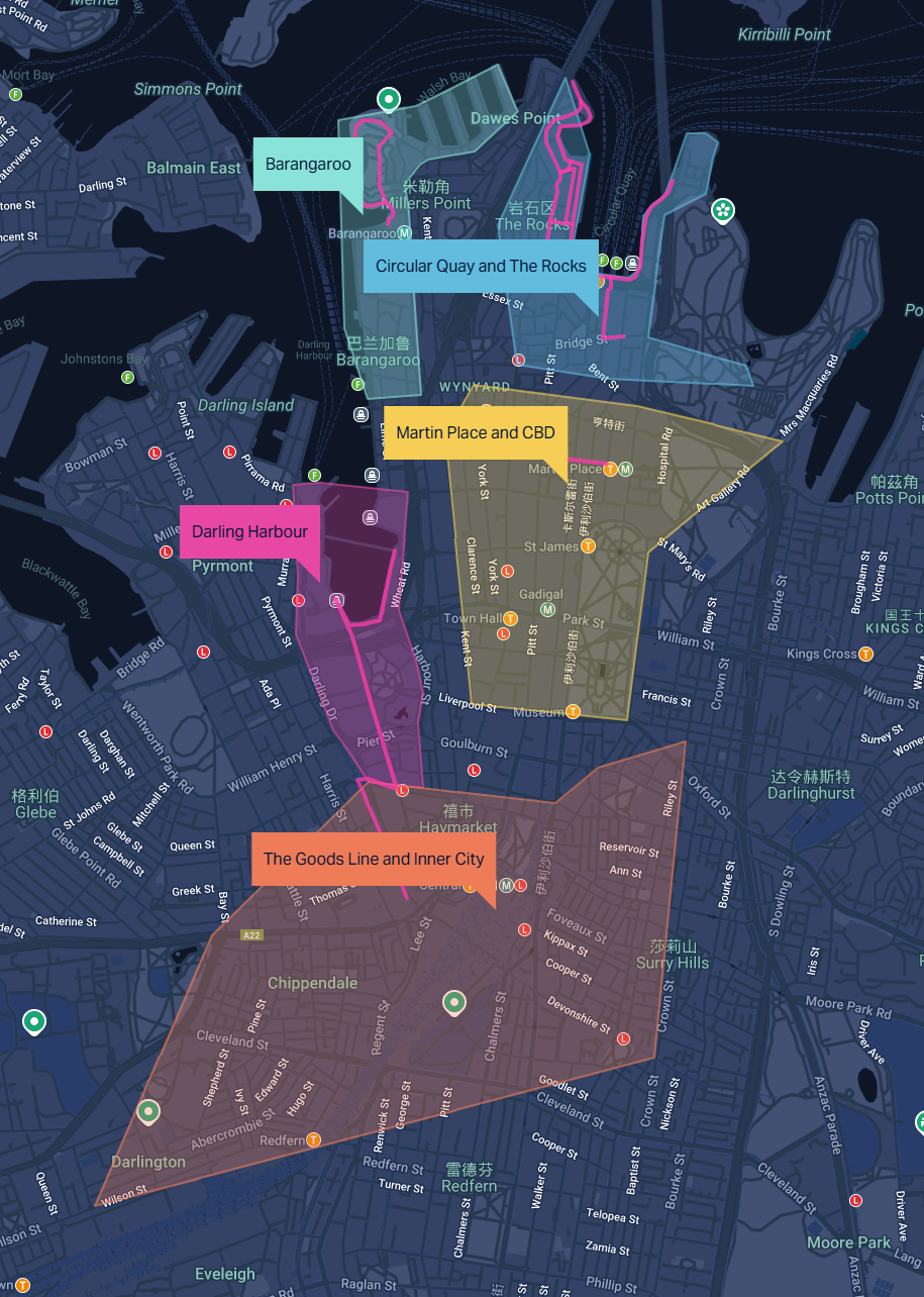 |  众信旅游 环球旅游好伙伴! 万众瞩目的 缤纷悉尼灯光音乐节 即将迎来第15届! 今年,Vivid Sydney 以Vivid Sydney, Dream 梦幻新生光影无界为主题 在活动中首次推出了 区域(Zone)的概念 规划了5个重要的活动区域—— 环形码头和岩石区 Circular Quay and The Rocks 巴兰加鲁 Barangaroo 马丁广场和中央商务区 Martin Place and CBD 达令港 Darling Harbour 货物线和内城 The Goods Line and Inner City 充分将节日特色 与各个区域的人文风貌、城市空间相结合 让悉尼的各个角落都沉浸在 灯光、音乐美食与创意的欢乐中 Vivid Sydney 官网 vividsydney.com 推出了 可配套游览五个区域的地图  ©vividsydney.com 🤔如何玩转5大区域? 每个区域有哪些值得期待的活动? 🥳本篇文章带你一探究竟!    <<<左滑查看活动路线详情 ©vividsydney.com 环形码头和岩石区自第一届缤纷悉尼灯光音乐节起,便是节日中重中之重的存在。这里汇集了一系列地标级城市建筑,灯光节期间,绚烂的灯光将让经典地标绽放出全新的生命力。悉尼歌剧院、ASN钟楼、澳大利亚当代艺术馆(Museum of Contemporary Art Australia)将成为充满无限可能的巨型“画板”。  ©vividsydney.com 📍悉尼歌剧院 悉尼歌剧院的点亮风帆(Lighting of the Sails)是每年备受瞩目的活动,今年澳大利亚已故艺术家大卫·麦克迪亚米德(David McDiarmid)的系列作品Kiss of Light 系列作品将在悉尼歌剧院建筑上以动画的形式播放,展现出悉尼包容多元,如万花筒般绚烂的都市画像。  Lighting of the Sails -Kiss of Light David McDiarmid ©vividsydney.com 📍澳大利亚当代艺术馆 今年,澳大利亚当代艺术馆的外墙,将展出澳大利亚原住民艺术家Vincent Namatjira的作品——King Dingo。  King Dingo Vincent Namatjira ©vividsydney.com 澳洲野狗(Dingo)是澳大利亚原住民艺术家Vincent Namatjira心中的精神图腾。他认为,如同这种生命力顽强的自然精灵一般,澳洲原著民文化也将在这片土地深深扎根并繁茂生长。这组名为King Dingo的作品以大胆幽默、趣味十足的手法描绘出文森特与无数澳洲原住民心中那座心灵乌托邦。 📍ASN钟楼 想要让自己的作品出现在Vivid Sydney,跻身大咖云集的光影艺术盛宴?机会来了!今年Color the City活动将在 ASN钟楼展示来自世界各地的投稿作品,不限形式,不限主题,也不限年龄……想要大放异彩,那么Vivid Sydney 便有可能成为你的舞台~  Color the City Mr. Beam Studio ©vividsydney.com 原住民文化是环形码头和岩石区的另一重头戏,参与免费的音乐会First Light: Live,即有机会体验悉尼包容的社会生态与绚烂的文化世界。   First Light Live ©vividsydney.com    <<<左滑查看活动路线详情 ©vividsydney.com 本次缤纷悉尼灯光音乐节,让马丁广场与中央商务区在节日中迎来了一次盛大回归。作为悉尼的“城市心脏”,马丁广场将在节日期间化身璀璨的感官乐园。  Flowers' Power Spectaculaires ©vividsydney.com Lucid Dream Collective讨论了时下热门的AI话题,以人工智能将人脸与灯光艺术结合,创作出千变万化的“众生画像”。Planet City: Live则重点探索了对于未来都市的幻想,描绘出一个异想天开的奇幻世界。  The Lucid Dream Collective Moment Factory ©vividsydney.com 打卡拍照之余,还可以前往在新南威尔士州议会大厦(NSW Parliament House)原住民美食体验 (Native Food Experience)品尝多姿多彩的本地美食。  Native Food Experience ©vividsydney.com 在缤纷创意(Vivid Idea)板块,Where Do Ideas Come From? Creativity Inside TIME's Cover,也是本届缤纷悉尼灯光音乐节颇受关注的活动。  Where Do Ideas Come From? Creativity Inside TIME's Cover DW Pine ©vividsydney.com 为《时代》周刊设计过1000余张封面的创意总监DW Pine将在5月29日来到悉尼市政厅,分享那些“经典永流传”的封面的设计理念,向所有的创意工作者解答本场分享的核心问题——创意从何而来?    <<<左滑查看活动路线详情 ©vividsydney.com *在灯光节期间,达令港常规的烟花表演将暂停 活力四射的达令港将在缤纷悉尼灯光音乐节期间,成为一处充满想象力的童趣乐园。这里有深藏在所有人记忆深处的一切——跷跷板、霓虹灯、游乐园、秋千、老式电话亭……充满“梦核”色彩的场景将带你完成一次时光穿越。  Tunku and Ngaadi Cheryl Davison & Studio Gilay ©vividsydney.com 中国艺术家邵嘉欣Yannesi Sui的作品Telephone希望通过怀旧电话亭链接过去的时光,让人们从冗杂的信息漩涡中短暂脱身,走进几间怀旧的英式电话亭并拨通“Dream热线”,将会有30秒的时间分享心中的所思所想,全身心投入到一次沉浸式的通话中。  Telephone 邵嘉欣 Yannesi Sui ©vividsydney.com Step onto Curiosity 与 Symphony of Light 灵感源自童年里常见的跷跷板与弹簧玩具。  Symphony of Light ONGA ©vividsydney.com  Step onto Curiosity Amigo &Amigo ©vividsydney.com Drawn in Light 则是一组笔触天真的涂鸦。Entwine 则是以潜意识为主题,探索过去与未来如何在梦中相遇。  Drawn in Light Ralf Westerhof ©vividsydney.com 而在缤纷音乐(Vivid Music)板块,达令港既有众星云集的Tumbalong Nights ,也有适合孩子们参与的Vivid Kids,无论是溜娃还是约会,都能在达令港获得无穷乐趣。   左 Tumbalong Nights 右 Vivid Kids at Tumbalong Park ©vividsydney.com    <<<左滑查看活动路线详情 ©vividsydney.com 巴兰加鲁主要以梦与科技的融合为主题,从远古的冶炼技术到现当代的奔月与星际探索,再到对人类心灵本身的反思,以“讲故事”的形式,展现出人类将如何一步步走向真理。  SomniUs Illumaphonium ©vividsydney.co