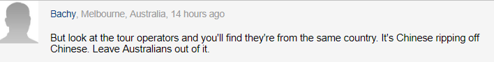 ![]() ![]() 在澳洲旅行,1:5的汇率着实让人肉疼 但好在,相较于国内大小景点的门票制度 澳大利亚的景区几乎都面向游客免费开放 无疑节省了不小的开支 ![]() 不过,这是在自由行的情况下 一旦你选择报团,那这些景点就会摇身一变 付费!付费!付费! 就连开放性的海滩都要收费 最让人心寒的是,这些坑骗游客的旅行团 都是我们的同胞所开 ![]() 澳大利亚风景优美, 是不少中国人心中的度假胜地, 尤其是随着近几年的“出国游”热潮, 赴澳的游客可以说是不在少数。 但由于语言水平受限, 有些人只得选择在中国旅行社报团出行 来自中国的李女士和她的老伴就报了个黄金海岸的旅行团 “费用人均几千刀以上” “包含景点门票、住宿交通费用” ![]() 也就是这趟旅行,成功让他们成为了澳媒头条的主人公。 让我们来看看这是怎么一回事吧: 《每日邮报》: “无良旅行社竟向中国游客收取黄金海岸免费海滩和公园的门票钱, 这恐怕会损害澳洲旅游业。” ![]() 《Courier Mail》: “中国商人向去黄金海岸游玩的游客收费。” ![]() 同胞忽悠同胞,站出来发声谴责的却是外媒, 这未免有些太过讽刺。 而当这一新闻被澳洲当地媒体报道后, 迎来了不少网友的愤慨,其中也夹杂着一些并不友好的言论。 “他们是中国旅行社,坑的是他们自己人” ![]() “你看他们来自同一个国家,这是中国人坑中国人, 跟澳大利亚人没关系” ![]() “令人震惊,中国人坑中国人” ![]() 以这种方式被报道,的确让人心底不舒服... 但实际上,这类现象并不是个例 据报道,黄金海岸是这类现象最常发生的地点。 “不仅海滩,公园、花园统统都要收费” ![]() 最惨的是,即使付费,游客也不会得到下海戏水的机会。 他们只能交着高昂的费用,在本来免费的海滩上吹着风晒晒太阳, 直到离开澳洲,都没有办法感受澳洲海水的温度。 ![]() 近几年里,其实澳洲政府已经对这些中国无良旅行社进行了数次的官方打压。 ![]() 之所以澳洲当局如此重视此事,是因为在某种程度上,这种行为已经对澳洲最大的国际旅行市场造成了影响。 ![]() 澳大利亚国家旅游部长Kate Jones在接受采访时表示: 这些行为损害了澳洲旅游业的发展 希望所有遇到这类骗局的人都能立即报警 ![]() ![]() 不仅坑骗费用,还能编造景点 除了将免费景点变为收费景点,这些导游还有一项绝技,那就是“编造景点”。 悉尼大学的古典教学楼Quadrangle在外形上神似电影《哈利波特》中的霍格沃兹魔法学校。 ![]() 那些无良的旅行社正是抓住了这一点,为了吸引更多人前去参观,他们将其编为“哈利波特拍摄地”,忽悠游客交费参观。 但实际上,《哈利波特》从未在澳大利亚进行拍摄,悉尼大学也是免费开放。 ![]() 旅行中容易踩的那些坑,你中过招吗? 1. 专供华人购物商店 旅行团常常会将游客带到一些特定的购物商店,商店内售卖的商品大多会以包装相似的假货或廉价产品来冒充澳洲知名商品,再以昂贵的价格卖给中国游客。 ![]() 例如店内的绵羊油、深海鱼油,它们的确是由澳大利亚生产的, 但其成本却比澳洲同类名牌产品相比低很多。 雪地靴等羊毛产品,真实产地是中国,却被包装成“澳大利亚制造”, 而后高价售给中国,价格甚至是名牌产品的好几倍。 ![]() 2. 免税店的“价格骗局” 很多时候,大家往往会觉得免税店的价格肯定是要比其他商店便宜一些,其实不然。 澳洲本地消费者组织Choice曾专门对比过免税店和零售店的价格,发现不仅香水这种普遍被认为免税店价格更低的产品存在“价格虚高”。 阿玛尼挚爱香水,机场免税店售价128澳元,但在Chemist Warehouse售价却仅有119.99澳元。 ![]() 就连饼干、点心、葡萄酒等物美价廉的商品,也是价格方面的“重灾区”! 澳洲神酱Vegemite的免税店价格是超市的一倍不止,直接从8.79澳元猛涨到19澳元。 ![]() 3. 特产、保健品推销 店员也往往会摸准中老年游客对于身体健康问题的看重,向他们极力推荐一些保健产品,游客消费后,导游和领队一般能拿到10%-15%的回扣。 重点是,这些保健品极少是我们所熟知的保健品品牌。 除了保健品,不少人也会选择为家人带一些具有当地特色的伴手礼,据报道,之前有游客在新西兰的羊驼养殖场内,以1.5万元的高昂价格被导游忽悠着购买了一条羊驼被。 最后发现,新西兰羊驼被的售价远比这个价格低上数倍。 ![]() 看了这么多新闻,小编只想说: 本是同根生,相煎何太急 老乡坑老乡,两眼泪汪汪 海外游不易,大家还请擦亮眼睛 别被那些无良商家,坏了出游的好心情 张韶涵3.15布村演唱会倒计时4天!! 相约布里斯班会展中心,见证张韶涵的励志旅程? 购票客服? 热线 0433 232 403 微信 theoneqld ![]() ![]() ![]() ![]() ![]() ![]() 订阅今日昆士兰微信 ■ 点击右上角→“查看公众号”点击关注 ■ 搜索“今日昆士兰”点击关注 ![]() |