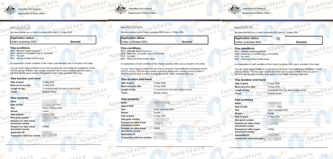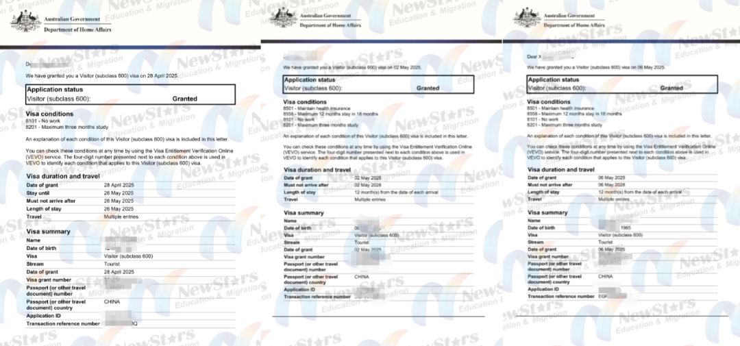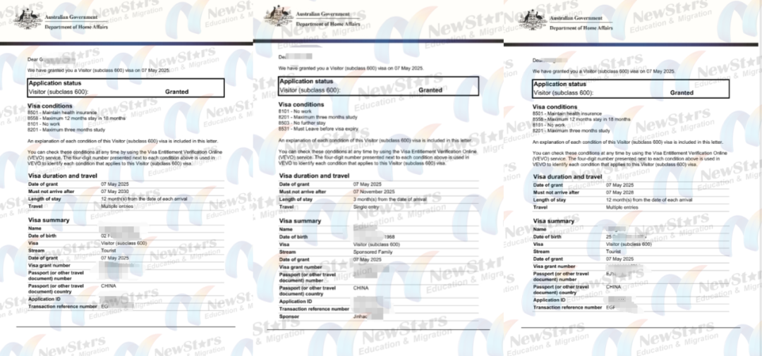 ![]() 经常会有人来咨询:你们办理旅游签吗? 答案是:我们办理,有非常多的成功案例,更有不少拒签后在我们帮助下翻案的成功案例! 我们的五月部分旅游签成功案例! ![]() ![]() ![]() 澳洲有哪些常见的旅游签 ![]() ![]() 一、一年有效期 单次最长逗留3个月 最普通和常见的境外申请的旅游签 适用情况:通常父母兄弟姐妹亲戚朋友来澳短期旅行都申请这个签证;TR(如485/500/491/482)的父母想来澳洲陪孩子 最容易被误解的地方:非常多人以为3个月的居住日期必须在1年有效期内,这是完全错误的。举个例子,如下旅游签,如果在2020年12月5日入境,是可以居住到2021年3月5日的(而不是只能居住到2020年12月10日)。 二、三年有效期 单次最长逗留3个月 每次最长居住3个月----不太常见的境外旅游签 适用情况:同上,但是,这样的签证通常只能由国内某些有资格的旅行社才能代理申请。据说这个签证常常被称做是商务签,其实也就是旅游签,签证代码都是600。 三、三年有效期 单次最长逗留12个月 任意18个月居住不超12个月 适用情况:申请人必须是PR/公民的父母,且过去曾申请旅游签来过澳洲,需要购买保险和体检。虽然这种签证常常被称做是探亲签,其实这还是旅游签。孩子拿到永居后,一般都给父母申请这个类型。 四、18个月有效期 单次最长逗留12个月 任意18个月居住不超过12个月 适用情况:和类型三几乎完全一样,唯一不同的地方在于,适用于PR父母从未来过澳洲。因为父母基本上都至少会来过一次澳洲,才决定第二次居住久一点,所以几乎都是申请3年的签证,申请这个类别的少一点。 五、五年有效期 单次最长逗留12个月 任意18个月居住不超12个月 适用情况:也是和类型三几乎完全一样,唯一不同的地方在于,PR父母必须已经递交了父母移民签证103/143父的申请。 六、一年有效期 单次最长可逗留 6/12个月 通常是PR/公民的父母可以申请,且需要体检。这种申请得比较少,还不如一次性申请类型三。 七、10年有效期 单次最长逗留3个月 任意24个月居住时间 不超12个月 适用情况同类型一,但是这个签证的签证费比较费,另外还要求去签证中心进行面部和指纹采集。因此本签证只适合嫌麻烦、不想多次申请签证的土豪或商务人士。 八、亲属担保 单次有效 入境后居住时间 可能是1-12个月的旅游签 针对的有拒签史、或是高危地区,或是经济条件比较差的申请人,且有公民/PR亲属在澳洲愿意提供担保。 商务访客类 不仅“朋友公司出个邀请函” 那么简单 比较常见于来澳进行商务考查、合同谈判、访问、会议等等情形。 需要澳洲公司发邀请开证明,而且需要能提供足够的商务探访证明材料,比如这趟出差的必要性,要来做个培训?要来开会?要来做技术支持?还需要提供国内和澳洲公司之间的业务往来,申请人本身与澳洲公司在工作上的往来,为什么需要这个人来澳洲? 所以不仅是朋友开了家公司,给开个邀请信那么简单。 旅行团签证 只适合国内某些符合资质的旅行团进行团签。此签证有8503条款,不得在境内续签。在此不作展开。 境内旅游签 和境外旅游签有本质区别。境外申请的旅游签,都是从入境开始算居住时间(3-12个月)。而境内申请的旅游签,则是申请到多长,就居住到多长。 申请旅游签 特别提醒 1、永居/公民的父母 现在都不建议一直在澳洲境内续旅游签,较大几率被拒签和被warning。可以出境并在境外待3-6个月后再申请旅游签入境。想要实现不间断留在澳洲境内的,可以建议870签证,一次可申请3/5年的。 2、现在澳洲旅游签的审理 旅游签正常审理,等待时间一般不超过1个月。在背景良好材料齐全,一般都能顺利下签。再次强调,是材料准备齐全的情况下,如果是白本或者曾有拒签记录,一定要确定有挖掘到更多的材料,不要草率再次递交(想了解是否能翻案,可联系我们) 3、如果白本/有拒签历史/经济条件较弱 可以考虑申请亲属担保通道(sponsored family stream) 该通道与普通旅游签最大的区别在于需要有担保人 担保人: ①与申请人(被担保人)的关系可以是配偶、父母、子女、兄弟姐妹、养父母、继父母、祖父母、孙子孙女和姑叔侄等等 (未婚夫妻、儿媳女婿和朋友关系是不能担保的) ②必须是settled定居在澳的澳洲公民或者PR (一般获得永居后在澳洲定居2年,被认为是settled定居) -18周岁及以上 ③如果担保人此前担保过其他人,且这个担保还没到期的话,不可以再担保其他人。除非之前的被担保人与这次的担保人互相是家庭成员 ④如果担保人此前担保过别人,当时的被担保人在有违反签证条款的情况下,担保人要等被担保人的签证过期后5年才能担保新的人 ⑤移民局可能会要求担保人支付bond,每人需5千-1.5万澳币,但是这并不常见 是因为有担保人的背书,可以提升申请人下签的几率,申请人还是需要递交旅游签一般的申请材料,工作证明和资金证明等等。 同时签证时长会较短,并且是单次往返,并附上8503条款不让在澳洲境内续签。 简单来说更保险的同时,限制也会更多。旅游签被模板式拒签,能救吗?DIY给父母递交被拒,能再交吗?家属担保/商务通道,可以考虑吗? 联系我们办理父母和朋友的旅游签,是否合适和推荐申请亲属担保通道,或者能否通过挖掘材料翻案,可以联系下方客服为您安排详细评估后给出建议 ![]() NewStars介绍视频 (拍摄于2021年) 491近两个月有望下批签雨?189积压持续减少,比预期乐