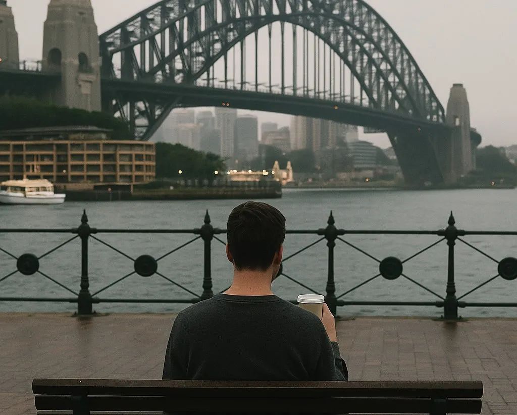悉尼的早上带着咸湿的海风,我坐在环形码头的长椅上,手里捧着一杯刚买的flat white。 桥下是熙攘的游人,有的举着相机,有的匆匆赶路,还有人干脆倚着栏杆抽烟。 我把咖啡捧在手心,指尖却感受不到多少温度。每个人都说,来悉尼一定要站在大桥上俯瞰港口。 ![]() 我照做了,甚至特意在黄昏时分登上最高的观景台,看日光怎样落在歌剧院洁白的屋顶上。那一刻的确壮观,世界辽阔得让我有点晕眩。 可等游人退去,只剩下风和铁索,我忽然觉得孤单无处安放。城市那么大,桥那么长,却没有一个方向,是通向我的归属。 昨天朋友发来消息:“你在悉尼还习惯吗?有没认识新朋友?” 我点开键盘,最后只回了两个字:“挺好。” 其实,我每天都在街头穿梭,走进一家家咖啡馆,像是在寻找什么,又像是刻意地逃避什么。 咖啡店的菜单上总有几种我没喝过的口味,街角的小店也会换新海报,可是“新鲜”这种东西,在孤单面前总是很短暂。 有时候,我会坐在桥头,看潮水一波波拍打堤岸。那些涟漪一圈圈扩散开去,最终消失在水面。 和我在这里的日子有点像,每天都做着不同的事情,却始终没有一个真正属于自己的出口。 我记得第一次路过海港大桥,是在一个风很大的傍晚。身边的人都在拍照,只有我一个人,背着包沿着桥慢慢走。 铁轨上传来地铁的轰鸣,地面微微颤抖,我却觉得自己像一粒被风吹远的沙,随时会消失在人群里。 有人和我擦肩而过,有人远远招手叫着朋友的名字,我忽然很羡慕他们,有人等、有处归、有话说。 “你来悉尼后,有没有觉得更自由?”有天妈妈在视频里这样问我。 我一时答不上来。自由好像是有的,但孤独也更大了。就像这座城市,明明那么繁华,却有无数个夜晚,只剩下自己和自己的影子。 海港大桥依然横亘在那里,壮观得几乎让人忘了孤单。可等喧嚣退去,只剩下铁索和风声,孤单却比钢铁还重。 我把冷掉的咖啡喝完,起身沿着港湾往回走。游人还在拍照,快门声此起彼伏。有人让我帮忙按下快门,我笑着答应,照片里的他们笑得很自然。 我走到大桥下,抬头望那一整片灰色的钢架。它们紧密相连,却各自为阵,没有出口。 太阳出来了,远处传来渡轮的鸣笛。我知道这座城市会继续热闹下去,但我的孤单,大概还得在这桥下多停留一会儿。 |