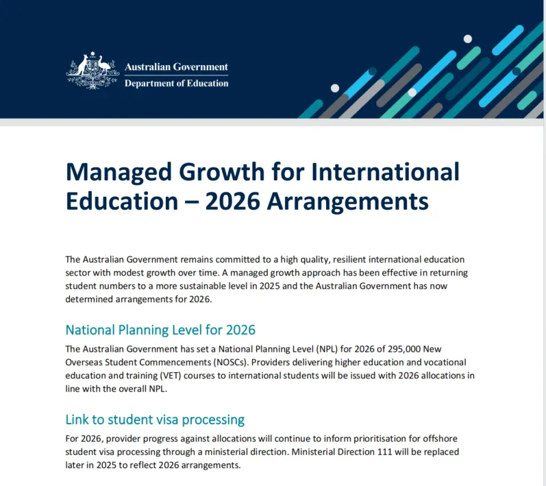 依据澳教育部长Jason Clare在2025年8月4日公布的政策内容,2026年,澳政府将允许额外2.5万名国际学生在澳高校及教育机构就读,但高校和学院扩招,还需满足一定的条件。 • 澳大利亚的公立大学只有证明与东南亚地区国家建立合作,且能为所有学生提供足够的住宿的情况下,可以提高各自招生人数上限。 • 澳政府倍加重视保持澳大利亚国家教育产业的可持续性,2026年对国际学生的招生上限人比重开边境后的峰值低了8% • 从澳高中升入澳高校就读的国际学生,不再计入NPL国家规划层面的国际学生人数配额内。 在2025年8月4日,澳大利亚政府发布了一份《管理可持续发展的国际教育产业》文件。 ![]() National Planning Level(简称NPL),即澳政府24年提出的“国家规划层面”,对国际学生招生人数配额规定上限,目前上限为27万,到2026年将升至29.5万人。 2025年,也就是今年,澳大利亚的公立大学招收国际学生人数总额上限为14.5万,职业教育与培训机构VET的总额上限为9.5万,私立大学总额上限为3万——每个不同院校实际上都设定各自具体的招生限额。 ![]() 澳持政策修订释放积极信号 澳大利亚教育部长Jason Clare承认国际教育仍是“澳大利亚极其重要的出口产业”,但他也强调了需要管理其增长速度,可以保持可持续性。 ![]() 澳政府明确,2026年每所澳大利亚院校、机构将至少获得今年的招生配额。不过现在,公立大学将能够申请增加其各自招生配额,前提是学校需要证明已增加与东南亚地区国家的互动,并证明自己具备足够的学生宿舍来安置国内和国际学生。 政策背后的原因分析 从上述很官方文件表述中,可以看到澳大利亚留学的机会正在扩大,速度温和,公立大学现在可以有机会提升招生人数规模。 结合这两年澳大利亚留学热度和政策变化,可以理清政府扩招的背景: • 2023-2024年 澳大利亚边境开放后,国际学生数量大幅反弹,部分城市出现租金暴涨、住房紧张的问题,社会舆论压力增大,澳政府在2024年不得不采取限制措施,收紧签证政策。 • 2025年 首次引入“国际学生招生人数上限”制度,实施软Cap,受教育部长令MD111影响,澳学生签证审核全面收紧,市场进入“注重质量、筛选优质生源”的调整阶段。 • 2026年 政策开始适度放宽,新增2.5万个名额,更多优质国际学生有望获得签证,表现出澳政府在“控制总量”和“推动教育出口”之间寻求平衡的思路。 2026中国留学生的机会在哪里? 对于中国申请学生来说——2026申请公立大学且住宿有保障的大学,如悉尼大学、蒙纳什大学、昆士兰大学等澳“八大”;或者,在东南亚地区设立有分校区的澳大学,如伍伦贡大学,斯威本大学、科廷大学,都有可能获得更多配额,从而提高录取几率。 此外,通过高中课程、预科、TAFE课程升入公立大学不计入招生限额,这点也会让“本土升学的国际学生”会得到澳大学的青睐。 PTE Academic考试被澳大利亚100%的大学、院校和教育机构所接受。同时,获得澳大利亚内政事务部DHA批准,可以用于各类签证的申请。 ![]() 在全球化英语测评体系中,PTE考试凭借AI审核和快速出分机制,已成为新澳留学、移民申请的最佳方案。想要快速出分的小伙伴快添加顾问老师咨询PTE课程吧! ![]() 袋鼠教育PTE暑期小班课,权威、高效、优质、快捷,助力零基础学员短期内快速拿下目标分数,想趁着暑假提升自己PTE语言成绩的同学快来看看↓ 高效完善的课程系统:我们提供全面的课程设置,涵盖所有必备词汇、语法知识和技巧等内容,系统化教学,短期内快速查弱补缺。 专业的师资团队:我们的师资团队全部是海外名校海归讲师,拥有丰富的语言培训经验,擅长采用简单易懂的教学方法来帮助学生取得理想成绩,并且能够因材施教,以学员为本,深度挖掘学生闪光点,不断激发学员的学习动力和潜能。 ![]() 全面的教学服务:我们提供全面的教学服务,包括语言基础课程、真题模拟测验、阶段性测验、答题技巧指导等环节。我们会通过对每一位学员的考试情况进行详细分析,帮助他们找出自己的不足并进行有针对性的训练。 更有考不过免费重学的保障服务~ 想及时知晓高分备考攻略 留学移民怕搞不定语言成绩? 扫码添加袋鼠教育课程顾问老师 货比三家,还是袋鼠教育性价比高! 袋鼠教育PTE 与您一路同行! ![]() ![]() 免费领资料,加入PTE备考学习群 一起交流备考心得 ![]() ![]() ↑ PTE最新资讯丨PTE备考资料 ↑ 获取更多PTE考试资讯和备考干货 关注袋鼠(新瓴)教育公众号 |