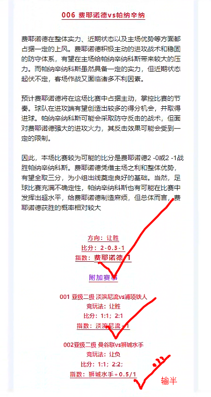 财哥团队 【财哥团队】由知名足彩专家财哥牵头组建,团队秉承“精准、真实、稳定”的考核门槛,所有成员均经过三个月以上实战考核,命中率稳定才开正式加入!诚邀海内外足球大咖前来合作,如果您有足球圈内的特殊资源,都可前来合作洽谈!朋友们亦可关注《阿财评球》参与评选,申请为特邀分析师! 团队主理人【财哥】前网易红彩、有料吧付费专栏作者,01年开始涉足足彩领域,历经超过20年实战依然屹立不倒,海内外均有一手消息渠道,实时掌控球队最新动态! ![]() ![]() 01 ![]() 昨日回顾 2025.10.23 近期重心都是稳稳拿下 ![]() 财哥公推回顾 ![]() 02 ![]() 今日重心 财哥刊球 ►►► 欧联 纽卡斯尔vs墨尔本胜 001 纽卡斯尔vs墨尔本胜 总结与预测综合考虑两队的近期状态、战术打法及历史交锋记录,墨尔本胜利在整体实力、近期状态和主场优势等方面占据一定上风,而纽卡斯尔喷气机则在反击能力上具备一定威胁。若墨尔本胜利能够充分发挥自身水平,特别是在防守端减少失误,他们赢得比赛的可能性将大大增加。根据Footballprediction的预测,纽卡斯尔喷气机在主场有可能以1比2不敌墨尔本胜利。这场比赛不仅关乎积分,更是双方在新赛季重整旗鼓的重要时刻,期待双方能为观众奉献一场精彩的比赛。但是我就要大家要思路相反,我看好纽卡斯尔 胜 放心干 001 纽卡斯尔vs墨尔本胜 方向:让胜 比分:1-1.2-1 指数:纽卡斯尔+0/0.5 附加赛事 011 德甲 不莱梅vs柏林联合 竞玩法:让负 单关负 比分:1:1;1:2;1:3 012 意甲 AC米兰vs比萨 竞玩法:让胜 比分:2:0;3:0;4:1 014 英超 利兹联vs西汉姆联 竞玩法:让负 比分:1:2;0:2;1:1 关注我,领取更多私推红单,私推多为临场发挥准确率更高 私信更多 合理规划,胜在稳定。 咱们只有一个共同目标就是收收 如果有重心或分析变化,临场再给大家 免责声明 本文所提供之中国竞彩赛事分析文章,纯属个人兴趣而创作,并非投注建议。数据及资讯皆来自中国竞彩官方网站。据此购彩风险自担。相关部门已暂停网络购彩,一切互联网售彩皆为非法,请彩民朋友到线下合法销售网点购彩! |