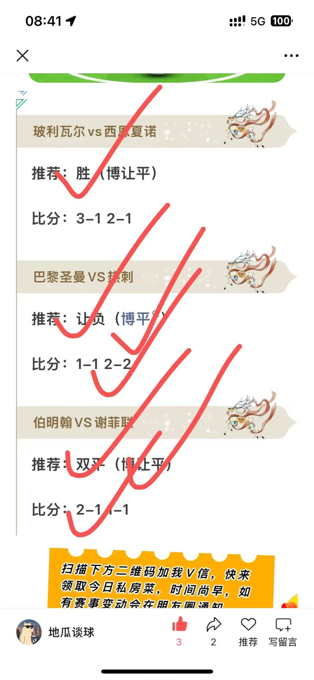 扫描下方二维码加我V信,快来领取今日私房菜,时间尚早,如有赛事变动会在朋友圈通知。