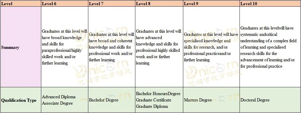 ![]() ![]() 澳大利亚和新西兰同属南半球,两者英式的教育体制以及较为宽松的移民政策,一直以来为中国的家长及学生青睐。但是,很多人在选择去留学的时候都会犹豫,到底去新西兰还是澳大利亚?今天优润可就来为大家详细解读澳新的学历资格异同点,给还在纠结的同学一个参考~ ![]() 关于澳大利亚学历资格框架 Framework ![]() 澳大利亚学历资格框架的作用 澳大利亚学历资格框架Australian Qualifications Framework(简称AQF)是澳大利亚教育和培训中有监管资格的国家政策。该框架旨在确保各个教育机构按照规定进行审批注册,并提供经过批准的课程。此外,所颁发的学位证书也必须符合国家的指导大纲,以保证其学术质量。 ![]() 澳大利亚学历资格框架的体系 澳大利亚学历资格框架还对课程衔接和学分转换作了详细的规定,通过这一框架,学生只要符合学生签证要求,就可以从一个教育阶段顺利进入下一阶段,或者从一个院校升读到另一院校。这种灵活性为学生提供了更多职业选择的机会,同时也增加了职业规划的灵活性。 AQF共分为10个等级,涵盖了中等教育、职业教育和高等教育的十五种学历资格。这些学历资格之间相互衔接,层次分明。学生可以根据自己的兴趣和职业目标,在不同的学历等级之间进行选择。 澳大利亚学历资格框架的实施,为学生提供了清晰的学习路径和职业发展途径。学生可以根据自己的需求和目标,在不同的学历层次之间流动,并获得相应的学历资格认可。这一系统化的框架为学生的学习和职业发展提供了更大的灵活性和选择性。 ![]() ![]() ![]() ![]() 关于新西兰学历资格框架 Qualification Framework ![]() 新西兰学历系统 新西兰采用英式教育体系,与中国教育体系有所不同。尽管学历的名称和学制不同,但仍然可以将这些独特的英式教育体系中获得的学位在中国进行学历认证,以获得中国教育部和相关工作单位的认可。 新西兰学历评估委员会,也被称为新西兰学历认证局(New Zealand Qualifications Authority),简称NZQA,类似于中国教育部学历认证中心,负责评估新西兰学历的质量和进行认证。此外,它还负责将国际学历认证为与新西兰学历相当的水平。NZQF(新西兰学历框架)是由NZQA定义的学历体系,用于对学历进行认证和评估。NZQF根据学历的层次划分为10个等级,其中Level 10为最高级别,Level 1为最低级别。 ![]() 新西兰学历框架 ![]() 在新西兰学习的过程中,我们要了解一下这里的学历体系。新西兰的学位体系由三个层次组成,分别是资格证(Certificate),毕业证(Diploma)和学位证(Degree)。对应于中国的学历制度,我们可以做以下对比: 中国的大专相当于新西兰的4-6级的专科文凭(Diploma)。这意味着在新西兰,完成了4-6级的专科文凭,你可以获得类似于中国的大专资格。 中国的本科相当于新西兰的7级的学士学位(Bachelor)。这意味着在新西兰,如果你完成了7级的学士学位,那么你可以获得与中国本科相对应的资格。 中国的研究生相当于新西兰的9级硕士学位(Master)。在新西兰,如果你完成了9级的硕士学位,那么你可以获得与中国研究生相当的学历。 ![]() ![]() 这些对比可以帮助我们理解在新西兰的学习水平对应于中国学历制度中的哪个层次。请注意,这只是一个大致的对比,每个国家的学历体系可能有所不同。因此,在选择学习计划时,最好咨询所在国家的教育机构以获取更准确的信息(有不清楚的欢迎咨询)。 ![]() end |