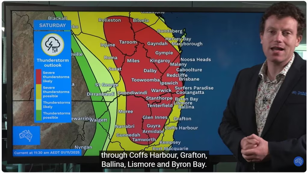 ![]() ![]() 悉尼生活资讯 刚晾好的衣服被吹飞、门口的垃圾桶自己跑了、闪电像在开演唱会,如果你最近在澳洲东岸,这些画面可能马上要上演...就在刚刚,澳大利亚气象局(BOM)警告说, 一场“极度危险”的超级雷暴正在逼近! 强风、暴雨、冰雹、甚至龙卷风, 都可能在今晚登场! ![]() ![]() “澳洲东海岸发布紧急龙卷风警报, 超级单体风暴逼近” ![]() 今天下午,澳洲气象学家 Angus Hines在最新预报中说,虽然今天全国很多地方都有雷暴可能, 但最严重的一波会袭击 新州(NSW)和昆州(QLD)! ![]() 他指出:“地图上黄色区域可能出现强雷暴,红色区域则极有可能出现强雷暴。” 如果你看到你所在的地方在红区,那真不是闹着玩的。 ![]() 这波强雷暴可能会带来不少破坏: