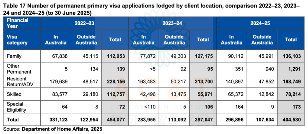 移民局将同时与澳洲教育部、就业部及Jobs and Skills Australia机构合作,更精准定义澳洲技能需求。 ![]() 签证总人数 2024 - 2025财年,澳洲移民局总共批准了185,001个永居签证,其中: