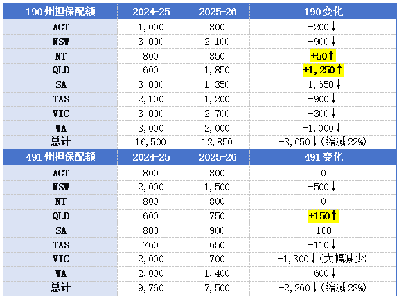 ![]() 点击蓝字 ![]() 关注我们 ![]() SUBSCRIBEto us 澳大利亚各州和领地的2025-26财年技术移民州担保配额终于尘埃落定。与上一财年相比,总配额减少了近6,000个,从26,260个降至20,350个。这一变化在移民圈引发了广泛关注。本文将为您详细解析各州配额情况、已开放邀请的州及应对策略。 2025-26财年澳洲州担保技术移民总配额为20,350个,其中190签证12,850个,491签证7,500个。这一数字比上一财年的26,260个减少了5,910个,降幅超过22%。 以下为2025-26财年各州和领地具体配额情况: ![]() 以下为两个财年各州和领地配额对比情况: ![]() 整体变化: ACT减少200个 NSW减少1400个 NT增加50个 QLD暴涨1400个 SA减少1550个 TAS减少1010个 VIC减少1600个 WA减少1600个 ![]() 哪些州已开放申请? 🔹 维州:可以递交新的ROI,去年已递交的如收入变更等情况,才需要重新递交 🔹 新州:190和491 P2 EOI通道一直可以递交,491 P1/P3还未开放 🔹 昆州:已经开放,都需要重新递交 🔹 南澳:州内的ROI通道还在关闭状态;海外EOI通道一直开放递交 🔹 堪培拉:开放递交,上财年已递交的不需要重复递交 🔹 塔州:ROI开放递交,因为新打分制,本财年建议都重新递交 🔹 北领地:2025年11月24日开放 ![]() 给申请人的建议 面对配额整体缩减的形势,技术移民申请人需要调整策略: 1️⃣ 尽早提交EOI:由于配额紧张,各州很可能优先邀请分数高、符合紧缺职业且提交时间早的申请人。 2️⃣ 关注州政策细节:每个州的提名要求和职业清单都有所不同,需仔细研究。例如,塔州对金色级别职业给予最高优先。 3️⃣ 考虑491偏远地区签证:虽然491是临时签证,但转永居的要求相对较低,且本财年配额虽减少但仍是重点。 4️⃣ 准备备选方案:如果某个州的竞争过于激烈,可以考虑申请其他配额相对充足的州,或探索雇主担保、189独立技术移民等其他途径。 5️⃣ 专业咨询:考虑到政策频繁变化,咨询专业移民律师或代理可能有助于制定最佳申请策略。 2025-26财年澳洲技术移民的整体形势明显趋紧,州担保分数水涨船高、配额收紧已成定局,预计州担保的竞争将会非常激烈!然而,机会仍然存在,各州仍在持续发放邀请,只是更需要申请人精准定位、快速反应。 如果你的EOI分数并不占优,与其在高竞争中被动等待,不如主动换赛道:雇主担保 186 / 482 / 494 / DAMA 等项目,反而在今年呈现出更稳定、更现实的机会窗口。 澳洲移民新风口:雇主担保186、482、494、DAMA,谁才是你最快的上岸通道?内附多个正在急招的真实岗位! 我们澳创移民团队长期深耕澳洲市场,手里有真实且持续更新的澳洲本地雇主资源,能够为你匹配更适合的岗位与通道。如果你不想错过今年的窗口期,现在就是该来咨询、评估、抢位的最好时机。 澳创海外客服 ![]() 17666132402 ![]() ![]() 澳创专注澳洲,新西兰,英国,美国和香港、新加坡移民留学,欢迎扫码咨询 #澳洲#澳洲移民#澳洲技术移民#澳洲州担保#澳洲州担保正式配额#澳洲移民方式#澳洲签证#澳洲491#澳洲190#澳洲189#澳洲雇主担保#澳洲永居PR#澳洲绿卡#澳洲州担保申请#澳洲186#澳洲工签#澳洲移民配额#澳洲482#澳洲dama#澳洲494 澳洲NIV国家创新签证 1、【澳洲移民】GTI没了,NIV来了!澳洲最新“国家创新签证”到底是谁的机会? 2、创新者和投资者想要申请澳洲NIV,需要满足哪些条件? 3、【澳洲移民】南澳开启NIV提名申请!利好企业家和创新投资者,这些行业不被认可符合创新! 4、【澳洲移民】官方数据:3510份 NIV创新签证EOI 仅70人获邀!移民官最看重这3个行业,快看看你的职业在不在其中~ 5、【澳洲移民】昆州NIV细则更新!想投资移民澳洲的人士速来,投资100万澳币可直接拿澳洲永居! 澳洲技术移民汇总 1、【科普】澳洲技术移民方式详解,189独立技术移民、190及其491州担保签证各自的要求汇总 2、【澳洲移民】北领地MINT项目:低至65分拿190永居,最后名额抢占中!为高净值申请人开启的专属通道~ 3、你知道吗?技术移民分数不是越高越好,EOI高分不再是唯一关键点! 4、【澳洲移民】澳洲官方OSL各州紧缺职业清单发布!移民风向已变,选对职业和州是关键!这些职业仍是最稳的移民选择~ 5、【澳洲技术移民】一文看懂你是否具备技术移民资格! 6、澳洲技术移民:境内申请和境外申请有什么区别?哪个更好上岸?各州偏好哪类人群? 7、【澳洲移民】EOI分数不高,要不要尽早递交呢?有哪些加分策略?⏪低分上岸小妙招! 8、【澳洲移民】移民配额紧张、职业受限?堪培拉小生意项目正在“放水”,抓紧上车! 9、【澳洲移民】EOI分数不够高?塔州小生意移民或许是你的Plan B! 澳洲雇主担保移民汇总 1、【澳洲移民】雇主担保:什么是186/482 SID/494/dama?它们有什么区别?哪一条更适合我? 2、澳洲3类新财年爆火的雇主担保,申请要求是什么,申请难点在哪里? 3、【澳洲移民】2025年澳洲移民新风口——DAMA!一年回本,两年永居,门槛还低! 5、澳洲“小绿卡”:这五大优势让494签证成为大龄申请人首选,堪称186低配版,澳洲移民隐藏王者! 6、【澳洲移民】北领地雇主直招,DAMA通道会计岗位,先到先得! 7、急招!澳洲最大手机维修连锁企业直聘!真实岗位+移民担保+雅思仅需5分! 8、【澳洲雇主直招】急聘美发师/意大利厨师!DAMA项目低雅思,多个热门城市任你选! 9、【澳洲移民】官方数据:482(SID)雇主担保申请量和批发量大爆发!哪些行业和岗位正在疯狂“抢人”?各州移民情况如何? 澳洲其