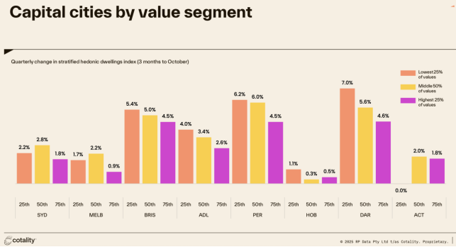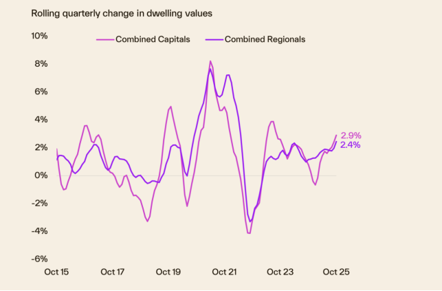 澳洲权威房产数据机构 Cotality 最近发布了 2025 年 11 月份全国住宅市场报告。本期文章将从数据出发,带你全面拆解澳洲房地产在过去一个月里的变化趋势,帮助投资者更清晰地判断市场周期,以制定更精准的投资策略。 如果您想了解2026年的房产市场机会, 欢迎扫码注册12月2日 the HOUSECLUB举办的线上交流会。 ![]() 01 全国住宅总值首次突破 12 万亿澳元 根据 Cotality 的最新统计,截止 2025 年 10 月,澳洲住宅房地产总市值首次突破 12 万亿澳元,再度刷新历史纪录。 推动市值创新高的原因主要包括: • 房价持续上升(详见后文) • 新增住房供应持续入市 02 季度涨幅 2.8%: 房价进入“加速上涨”阶段 过去三个月,全国房价上涨 2.8%,年度涨幅为 6.1%。 各区域季度涨幅: ![]() 增长最强劲的首府城市: • 珀斯(+5.4%) • 达尔文(+5.4%) • 布里斯班(+4.9%) • 阿德莱德(+3.2%) 可见,澳洲房地产最强动能仍集中在中小型城市,而悉尼与墨尔本的增长相对温和。 趋势判断:季度增长曲线向上拐点明显 ![]() 根据趋势线,当前房价涨幅大致处于过去十年的平均水平,但最近两个季度出现 加速上涨迹象,市场正在进入新一轮上行周期。 如果您想了解2026年的房产市场如何选择,欢迎扫码注册12月2日the HOUSECLUB举办的线上交流会。 ![]() 03 年度涨幅:偏远地区增幅超过首府城市 年度涨幅(过去12个月): • 全国:+6.1% • 首府城市:+5.6% • 偏远地区:+7.5% 涨幅前三城市: 1. 达尔文:+15.4%(全国第一) 2. 布里斯班:+10.8% 3. 珀斯:+9.4% 偏远地区受益于: • 工作机会增长 • 基建投资 • 相对较低的购房门槛 • 强劲的人口流入 因此涨幅全面超越首府城市。 04 不同价位房产全面上涨: 低价房领涨全国 Cotality 特别统计了各城市不同价位房产的表现: ![]() 共同趋势: • 全澳 高中低三档房产全部上涨 • 唯一例外:堪培拉的低价房微跌 低价房涨幅最强的城市: • 达尔文 • 珀斯 • 布里斯班 • 阿德莱德 • 霍巴特 这些城市的共同点是: • 可负担性较高 • 入门级产品需求旺盛 • 投资回报率普遍高于大城市 悉尼与墨尔本情况不同 • 中价位增长最好 • 高价房增长最弱 原因: • 高端市场对利率更敏感 • 可负担性限制买家数量 2026年澳洲房产市场会有哪些机会? 请扫码报名线上交流会, 席位有名额限制,报满即止。 ![]() 05 供应分析:挂牌量上升 但仍远低于正常水平 新增挂牌量(新供应): • 同比:-3% • 较 5 年平均:+0.4% 冬季供应极度低迷 → 进入春季后明显反弹,但仍未触及历史正常值。 ![]() 总挂牌量(整体供应): ![]() • 同比:-14.3% • 较 5 年平均:-18.3% 结论:供应仍处于极低区间,需求强劲,房价易涨难跌。 ![]() 06 成交量分析:部分城市需求出现爆发 成交量变化: • 全国成交量:+2.5% • 增幅最大: 达尔文 +57.7% 达尔文表现出价格上涨、成交量增大。 悉尼、珀斯、布里斯班则出现: • 价格上涨 • 但成交量下降 原因:供应不足限制了成交量增长。 07 租赁市场:房租涨幅重新加速 ![]() • 全国租金:+4.6% • 首府城市:+4.0% • 偏远地区:+6.1% 过去两年房租涨幅放缓,但 2025 年再次出现加速迹象,说明租赁供应仍然严重不足。 租金回报率(Gross Yield) • 全国:3.6% • 首府城市:3.4% • 偏远地区:4.3% 偏远地区收益显著高于大城市。 08 新建住房批准量:虽有回升但仍远不足 ![]() 根据数据: • house 建设批准量仍低于过去 10 年平均 • unit 建设批准量略有修复 结论: 新建房供应的恢复速度远落后于需求增长,这将成为未来房价继续上行的核心动力之一。 总结:澳洲房价正进入新一轮上升周期 结合本次 Cotality 的核心数据: • 房价季度涨幅加速 • 年增幅进入上行通道 • 供应极度紧张 • 租金再次加速上涨 • 新房建设持续落后 • 人口持续增长 • 多个城市处于强势区间(布里斯班、珀斯、阿德、达尔文) 结论十分明确: 澳大利亚房地产市场正处于新一轮上涨周期的“加速阶段”。 2026年澳洲房产市场会有哪些机会? 请扫码报名线上交流会, 席位有名额限制,报满即止。 ![]() |