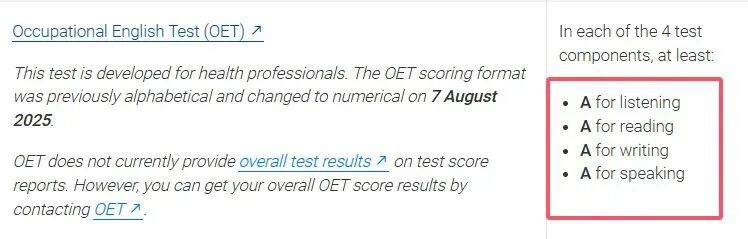 所以大家才一窝蜂去考 PTE。 但 2025 年 8 月 7 日开始,这一切都改变了。 02 政策重大改革——OET评分方式全新升级 ![]() ![]() ![]() 过去移民局看 OET,只看字母分: