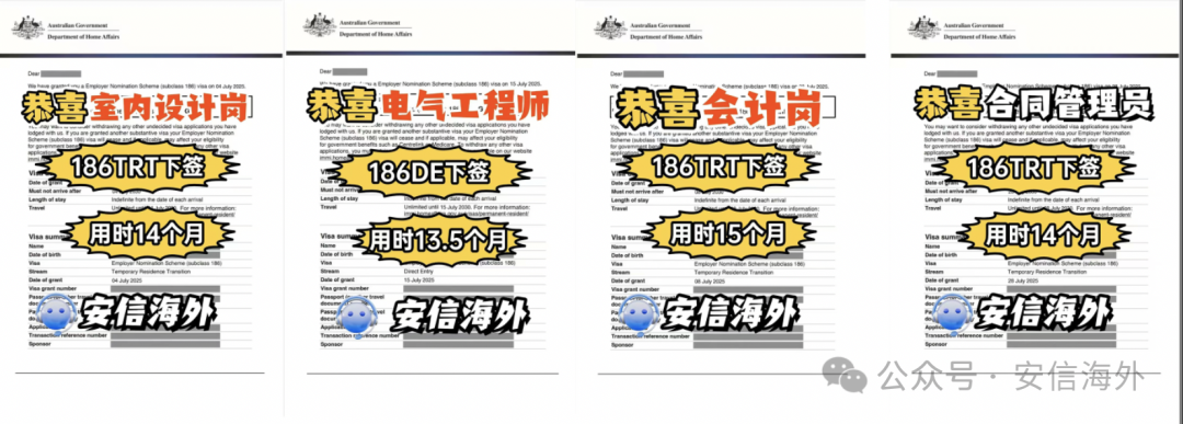 四、常见问题解答(FAQ)Q:所有职业都需要进行技能评估吗? A:绝大多数提名职业都要求申请人通过指定的评估机构进行技能评估,以证明其技术水平符合澳大利亚标准。具体要求取决于提名职业。 Q:英语要求是否有例外? A:存在少数豁免情况,例如:持有特定英语国家护照、完成规定年限的澳大利亚全英文授课学历、或申请薪酬高于规定门槛的高薪职位等。但豁免条件严格,需个案确认。 Q:申请处理时间有多长? A:审理时间因申请类别、材料完整性及移民局案件量而异,通常在数月到一年以上不等。建议提前规划并预留充足时间。 Q:获得永久居留权后,是否有居住限制? A:186签证是永久签证,无附加的“移民监”条件。但若未来需申请居民返程签证(RRV)以维持永居身份入境权利,或申请加入澳籍,则需满足相应的居住要求。 专业建议与提醒:186签证申请涉及复杂的法律程序和文件准备,政策细节也时有调整。强烈建议申请人寻求专业协助。我们能够帮助评估申请资格、准备具有说服力的申请材料、指导雇主满足担保要求,并在整个过程中提供法律支持,这是提高申请成功率、规避潜在风险的关键。 ![]() 为什么选择安信海外移民 ![]() ✅团队强劲|专业护航全程 🏅澳新本地团队 + 持牌律师,严格把关 🏅独立文案团队,量身定制方案 🏅从资格评估到材料准备,难题全消! ✅32项安家服务|落地即是新生活开端! 🎯住房安排🏠、子女入学🎒、本地咨询⚖️、就业指导💼等服务 实现“移得出、落得稳”! ✅真实案例|口碑印证实力 多年助力无数家庭获新西兰绿卡🏅客户涵盖企业家、白领、留学生等 高获批率与真实反馈,是实力见证!📈 📩 咨询,就得专属方案 + 案例参考! ![]() ![]() ![]() 安信海外 移民澳洲,选对机构真的很重要 ![]() ✅ 全澳、新西兰正规企业合作资源,覆盖建筑、IT、管理、制造、工程等热门行业。 ✅ 雇主全部经过20+道合规审核,澳洲、新西兰团队实地核查+资质审查+配合度评估,确保担保资格完整,全程配合申请。 ✅ 一对一精准匹配,让你的申请“能提名、能通过、能落地”。 【从评估到签证|一站式搞定】职业评估指导:根据你的学历&工作背景准备材料,提前规避常见拒评问题,复杂案例还能提供优化方案! 🥰【落地支持|安心到像回家】 1.落地安家服务:生活建议/学校/租房/一条龙。 2.申请变动:如遇变动,提供完善支持,移民路径绝不中断! 3.拒绝一锤子买卖:靠长期服务和口碑圈粉,老客户转介绍超级多。 4.适合人群:想通过雇主担保移民澳洲,担心雇主不靠谱/申请被拒/落地迷茫的/预算有100个w左右的申请人。 ![]() 澳洲 移民小帖士 建议:根据个人情况选择合适的签证类型,并提前准备语言考试、资金证明等材料,以提高申请成功率。 你不需要"足够优秀"“准备完美”才能开始行动,每个人能拿到结果的人都是在边学边做,你唯一需要的,是先行动起来的勇气! ![]() ![]() 1 安信值得信任 ▫️安信海外,深耕澳洲移民14载,国内与澳洲的直营公司,如同坚实的后盾。 ▫️30多项安家服务,让赴澳之路充满温暖与安心。 2 安信真踏实 ▫️0客户纠纷,帮助上万家庭移民澳洲,是实力与口碑的彰显。 3 安信靠得住 ▫️与澳洲官方机构无缝对接,本地团队7×24小时紧急支援,是贴心的守护。 3 ![]() 用“诚信、专业、稳健、创新”的理念,帮客户避开90%的移民坑。无论你是技术移民、雇主担保还是投资移民,都能得到量身定制的方案,如同为梦想穿上合身的衣裳。 ![]() ![]() 01 深耕澳洲移民14载 01 国内+澳洲有直营公司 01 30多项安家服务,让您赴澳无忧 04 0客户纠纷,帮助上万家庭移民澳洲 澳洲移民先行者 ![]() |
