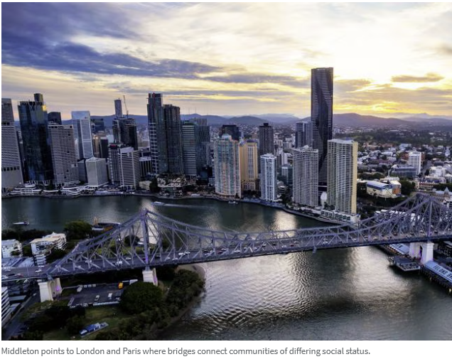 桥梁能改变布里斯班的未来?![]() Middleton 表示,再建 10 座跨河桥梁可以“彻底改变城市的感受和连接方式”,并强调这一数字“非常合理”。 其中,可能的桥梁连接包括: • Highgate Hill 至昆士兰大学(UQ) • East Brisbane 至 New Farm • Park Road Milton 至 South Brisbane • Kingsford Smith Drive 跨向 Bulimba 或 Colmslie 布里斯班在河流公里数方面位居全澳洲首都城市之首,但桥梁数量却最少。 根据Middleton回忆,早在担任政府建筑师时期,他们对全球河城进行研究,在市中心半径 5 公里范围内,布里斯班拥有最长的河段,却拥有最少的桥梁。 据《华友周报》得到的数据:伦敦有 35 座桥横跨泰晤士河,巴黎有 37 座桥跨越塞纳河,而桥梁正是连接不同社会群体的重要纽带,布里斯班目前算上机动车桥,铁路桥,步行/自行车桥,总数刚好20座。 Middleton 发现一张 1920 年代的布里斯班地图,其中早已绘出十余座桥梁的规划,但最终都未建成。“当时布里斯班由多个小区政府组成,预算根本不够。”他说,“所以布里斯班从未真正实现跨河连接。” ![]() 如今要再建汽车桥非常困难,因为公众反对声会很强烈。他虽支持 UQ 与 Dutton Park 间的 Eleanor Schonell Bridge,但遗憾它“晚来了 80 年”。 他举例称,新的 Kangaroo Point 大桥已经改变了周边地块的性质和人流方式。 他认为 从 Toowong 到 West End 的跨河桥是最明显、最有益的连接之一,这能真正把北岸与南岸“缝合”在一起。
