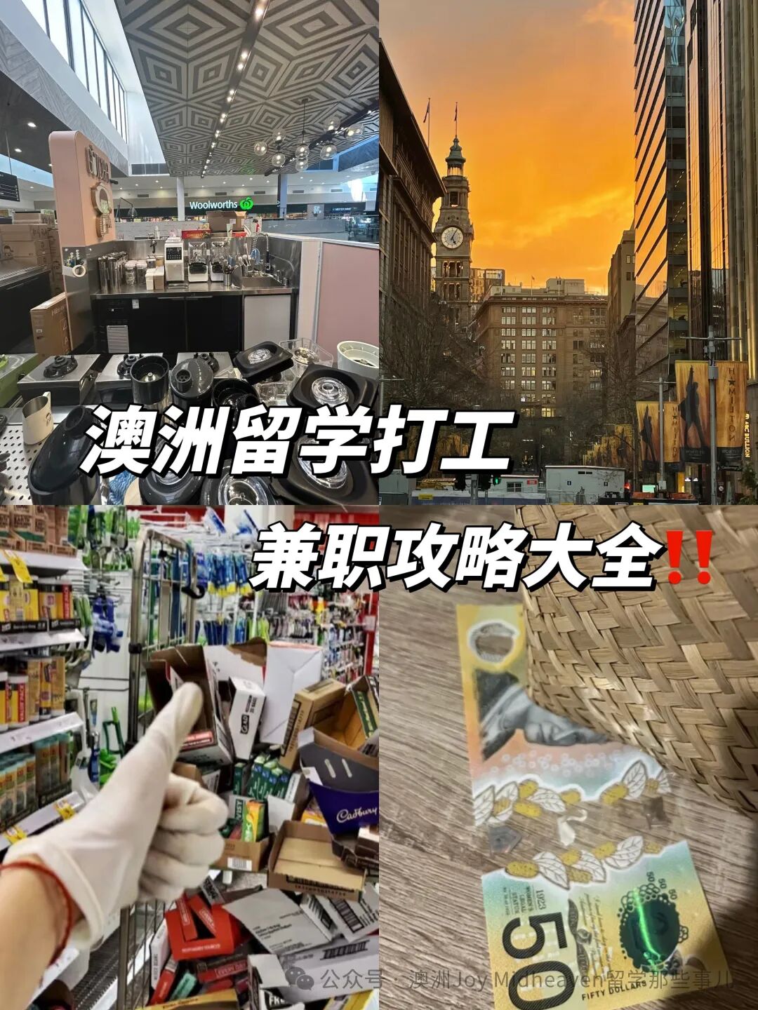 ![]() 🇬🇧澳洲留学打工兼职攻略大全‼️澳洲🇦🇺是对留学生兼职非常友好的国家,事儿菌之前也是尝试过不少兼职!不仅赚到了一些零花钱,重要的是还交到了很多当地的好朋友~ ![]() 🌟那获取兼职的途径有哪些?有什么注意事项🔍?事儿菌这里给大家总结了一下:✒️澳大利亚留学打工政策 📘🔹工作时间:从2023年7月1日起,每两周工作时长不得超过48小时⏰。🔹最低工资:从2024年7月1日起,最低薪资标准为24.10澳元/小时,或者915.90澳元/周💰。折合RMB大约为115元/小时,或者4370元/周。🔹获得支持:澳洲政府和社会对于留学生兼职还是有很多支持的,无论是政府部门、私人企业还是教育机构,都会提供必要的帮助和指导🤝 ![]() ✒️ 兼职寻求渠道 🔍👉招聘平台:🔹Jora:澳洲本土的简直招聘平台🌏🔹Seek:澳洲最大的招聘平台之一,薪资通常较高💸🔹Student Edge:专为澳洲学生设计,提供兼职和实习机会🎓🔹Airtasker:提供短期任务,如清洁、组装和送货等🛠🔹JobSearch:澳洲政府官方就业平台🏛🔹Workfast:提供灵活的兼职机会⚡🔹Diomand Pony:适合无经验且没有永久居留权的留学生 ![]() 👉常用求职App:🔹Facebook:通过社交网络加入相关群组,发布个人工作经历和求职信息👥🔹Gumtree:类似国内58同城的平台,可直接与雇主沟通,应聘流程简单🌐🔹LinkedIn:专业网络平台,适合寻找与专业相关的兼职或实习💼.✒️兼职打工注意事项👉法律方面:确认签证条件允许工作,避免违反法规📜。所有工作者必须拥有澳洲税号(TFN),通常申请过程需要两周📅。澳洲留学兼职/工作离不开的TFN怎么申?5分钟搞定整个流程! 👉财务方面:每年申报退税,合法获取税收返还🧾。在学校假期期间,可享受无限制的工作时间🌞。注意工作所得的一部分需存入超级福利账户(superannuation),比例为11.5%💼。 ![]() 👉重视学业,确保至少80%的出勤率,避免因工作影响学业成绩📚。💡当然除了上述问题,大家一定也要注意安全,在海外职场遇到问题的话,都可以来问事儿菌哦~ ![]() ![]() 文字编辑:Rachel&Bonnie 文字审核:Jason 图文来源于网络 缤纷校园,精彩有你 ![]() 有态度 | 有温度 澳洲留学那些事儿 留学不迷路! |