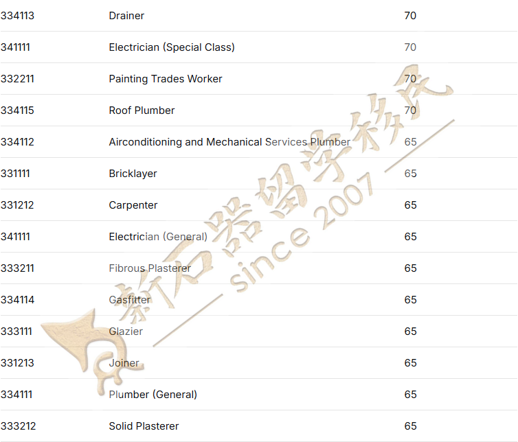最新一轮(189签证11月13日)官报再次印证:木工、瓷砖工、水管工等多个技工职业仅65分即获邀,竞争压力远低于大部分热门专业。