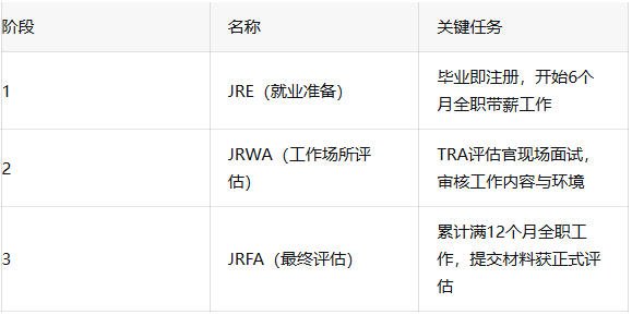 大部分蓝领职业需要通过 TRA(Trades Recognition Australia) 的职业评估。针对毕业生,TRA设有 JRP(Job Ready Program) ,分为三步,全程可在线推进: