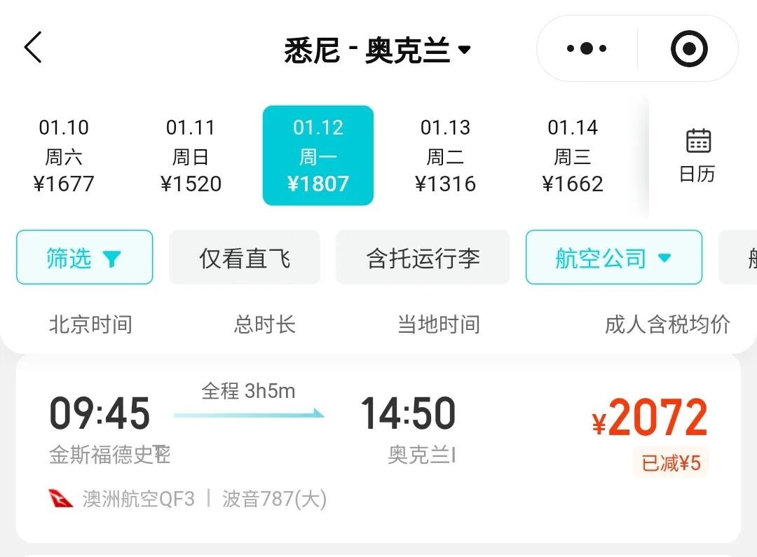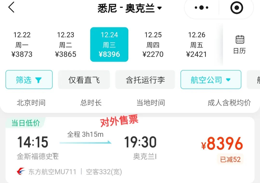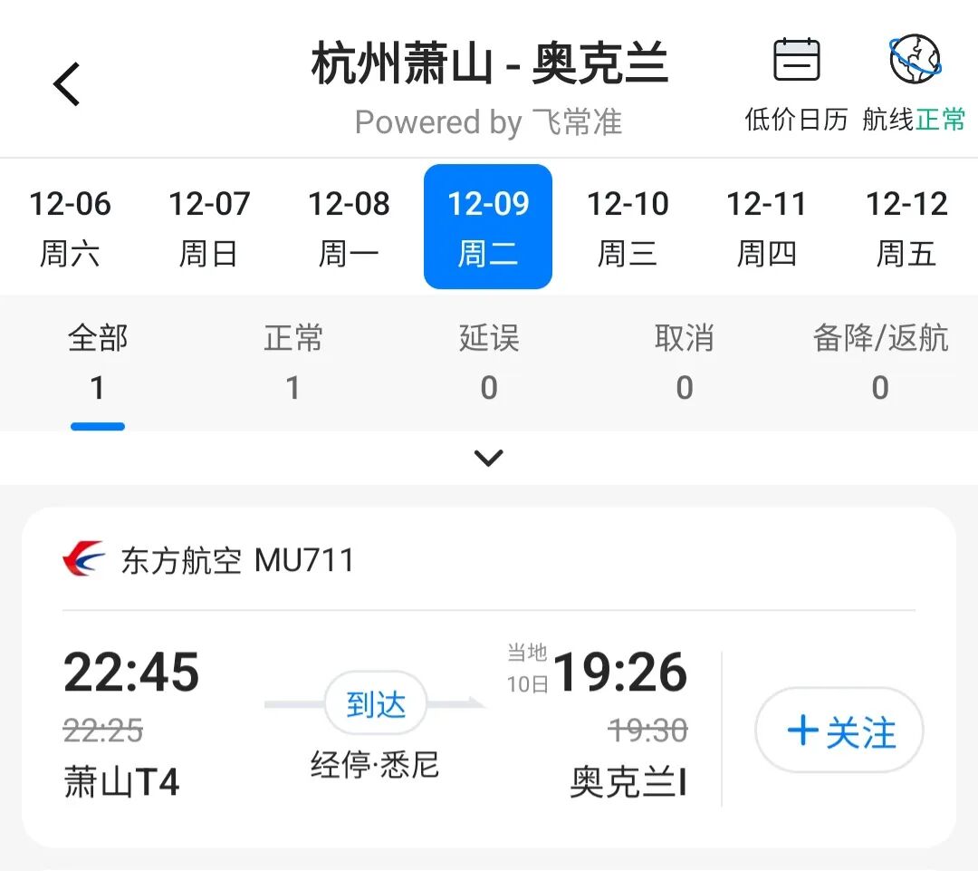 还有我们的东方航空杭州飞奥克兰经停悉尼,后段悉尼=奥克兰对外售票。可以打卡呢。(下图)