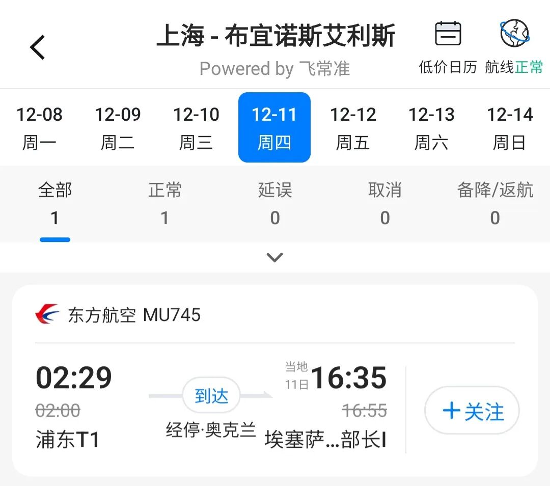 一条就是东航新开的上海浦东=布宜诺斯艾利斯,后段售票。(下图)