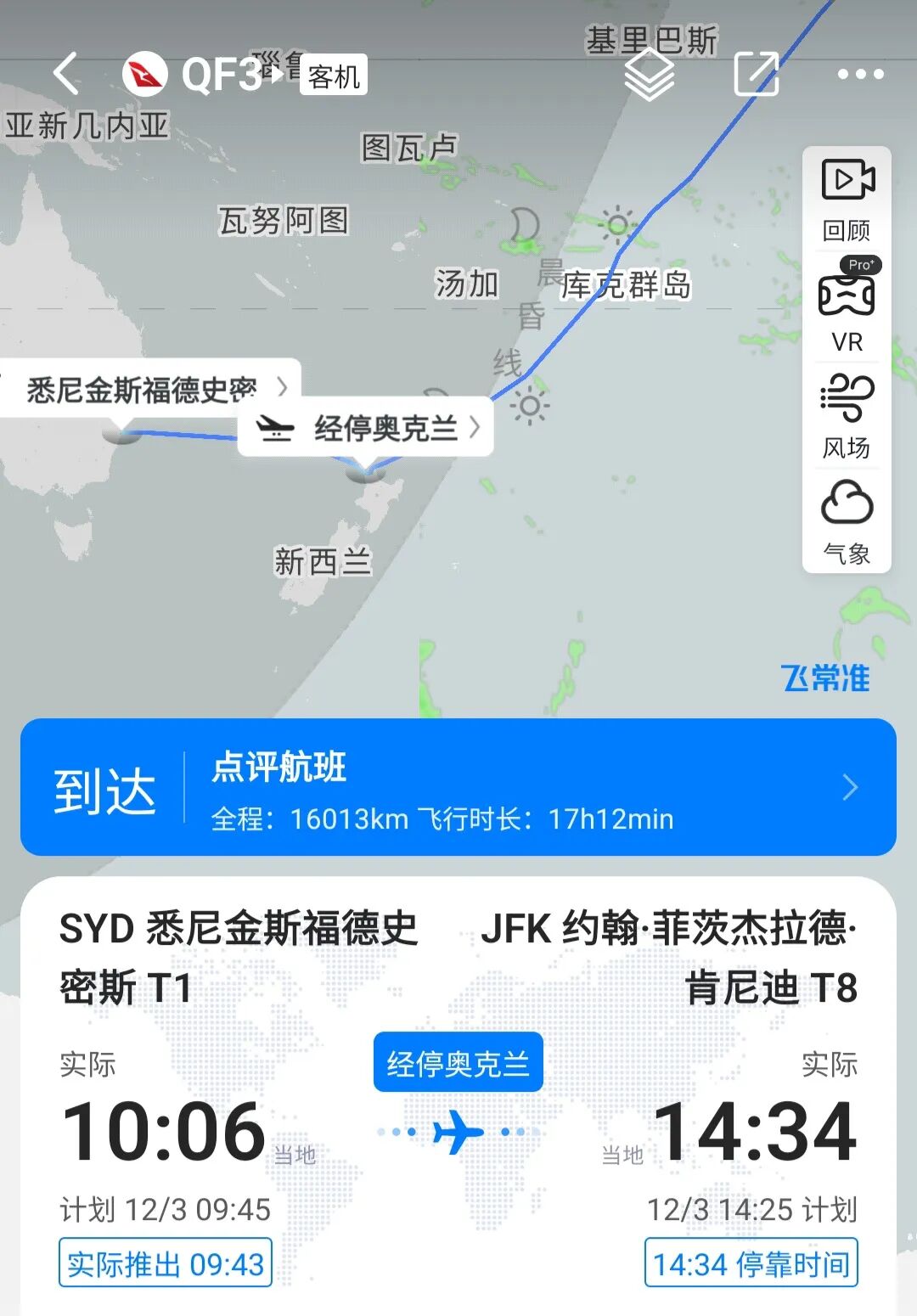 还有澳洲航空的悉尼=纽约,经停奥克兰。其中首段对外售票。具体如下: