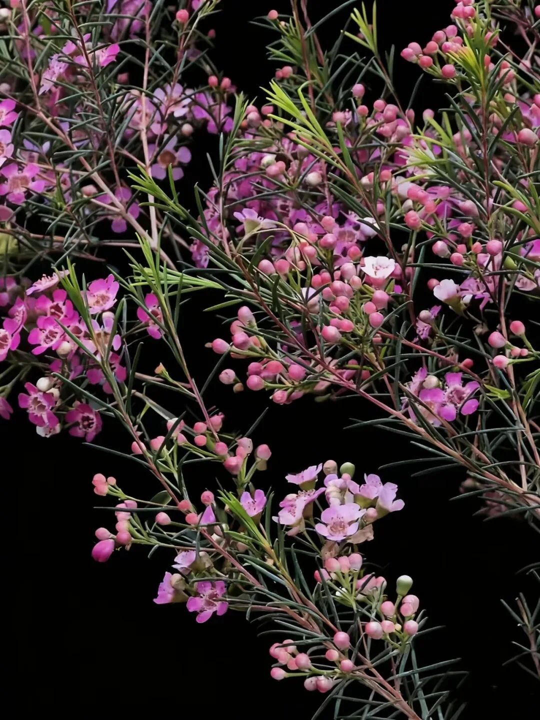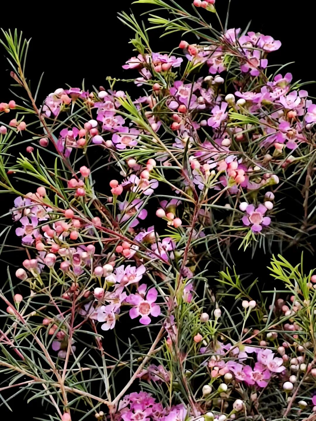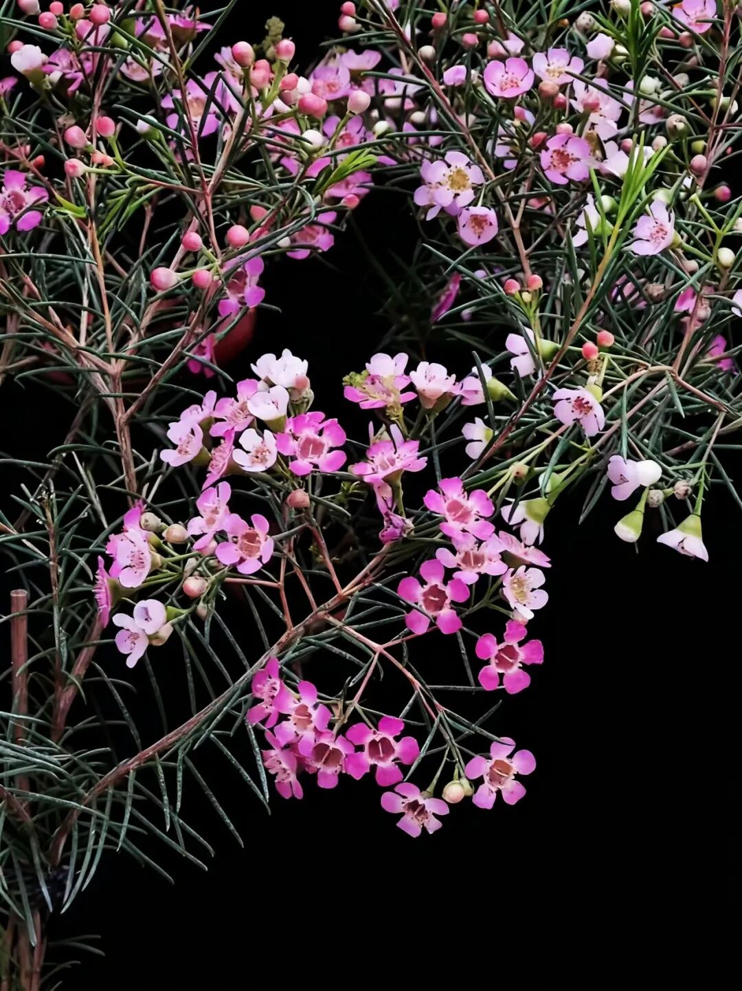澳洲腊梅,别名杰拉尔顿蜡花、淘金彩梅等,是一种原产于澳大利亚西北部沙地的桃金娘科风蜡花属矮生灌木。尽管其名称中带有“腊梅”和“梅花”,但它与中国的蜡梅(蜡梅科)或梅花(蔷薇科)并无亲缘关系,仅因花型和部分特征相似而得名。 澳洲腊梅,为常绿灌木,生长迅速,栽培当年可达1米高,三年内可长至3米,树形呈自然灌丛状。其叶片对生线形,细长如松针,四季常青,带有淡淡清香。花型小巧,通常有5枚花瓣,呈梅花状,花瓣外层具蜡质光泽,晶莹剔透。原生花色为白色或粉红色,花心常为紫色或金黄色。白色花朵香气浓郁,类似梅花与蜂蜜的甜香;粉紫色香味较淡。 澳洲腊,因其花期长、花色淡雅、枝叶优美,广泛用作切花、盆栽或园林景观植物,被誉为“年宵花”。 澳洲腊梅,以其独特的东方神韵与西方生命力的结合,成为现代花卉市场中备受喜爱的“新贵”。 澳洲腊梅,象征高洁、坚贞、友谊长存和忠贞的爱情,适合赠予亲友或恋人。 ![]() ![]() ![]() ![]() ![]() ![]() ![]() ![]() ![]() ![]() |