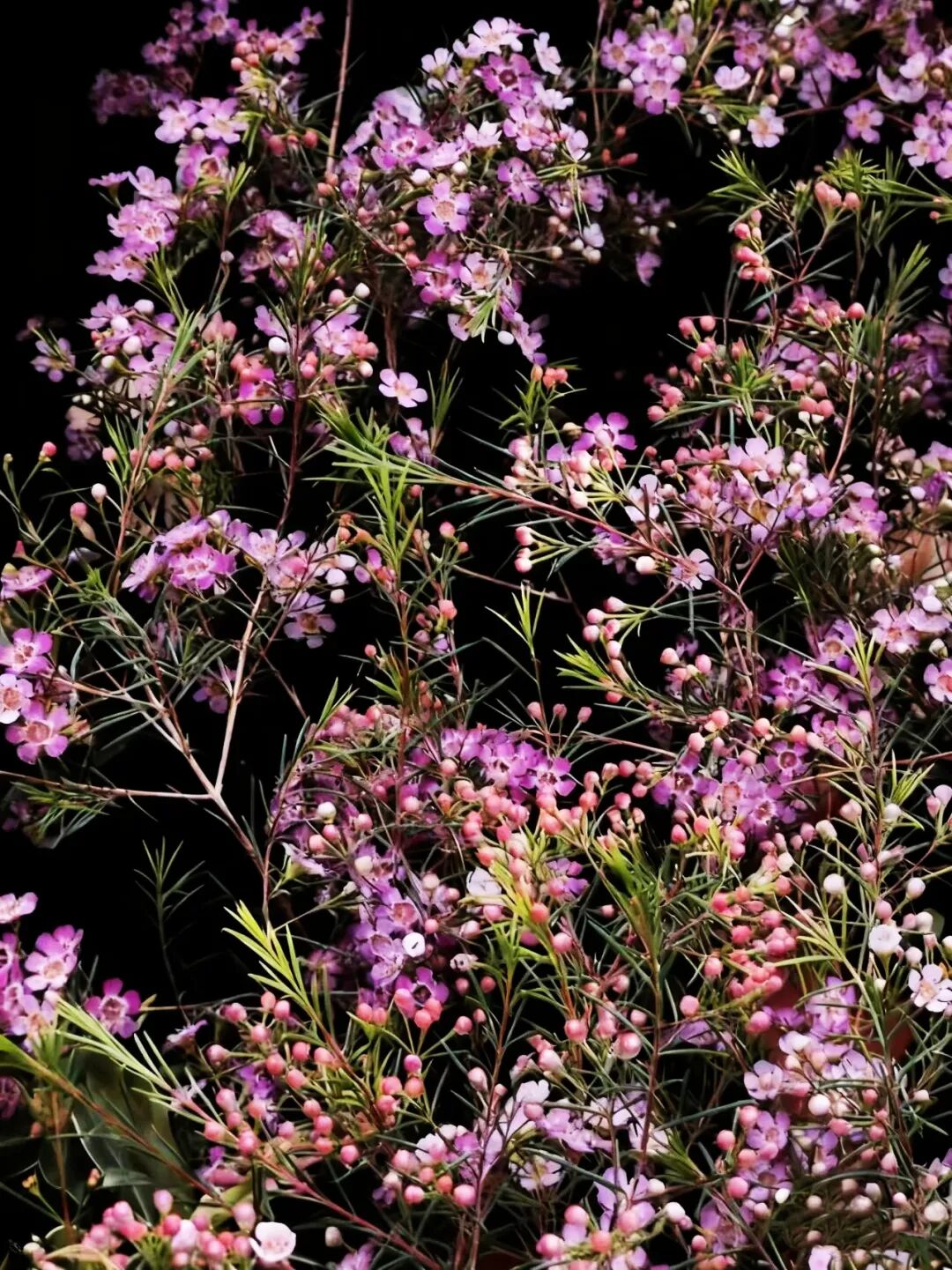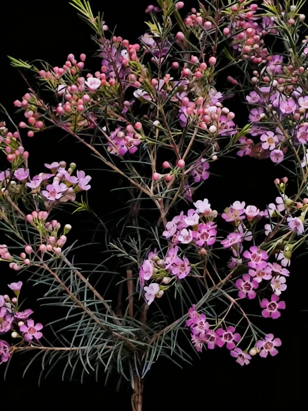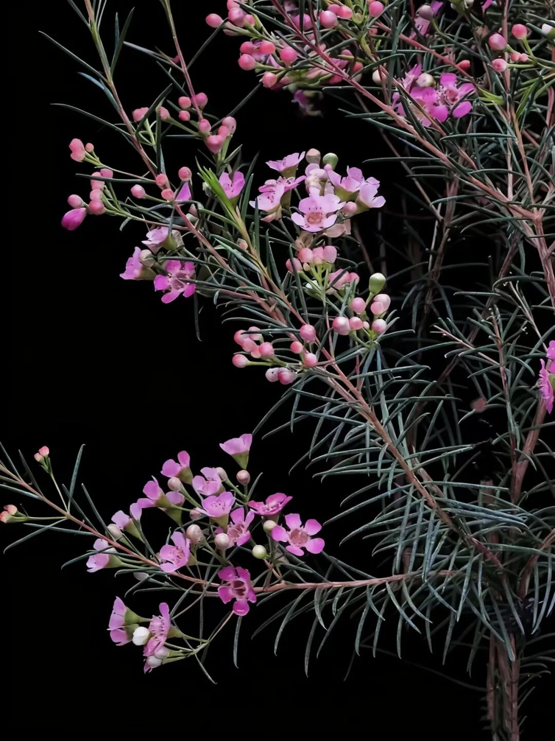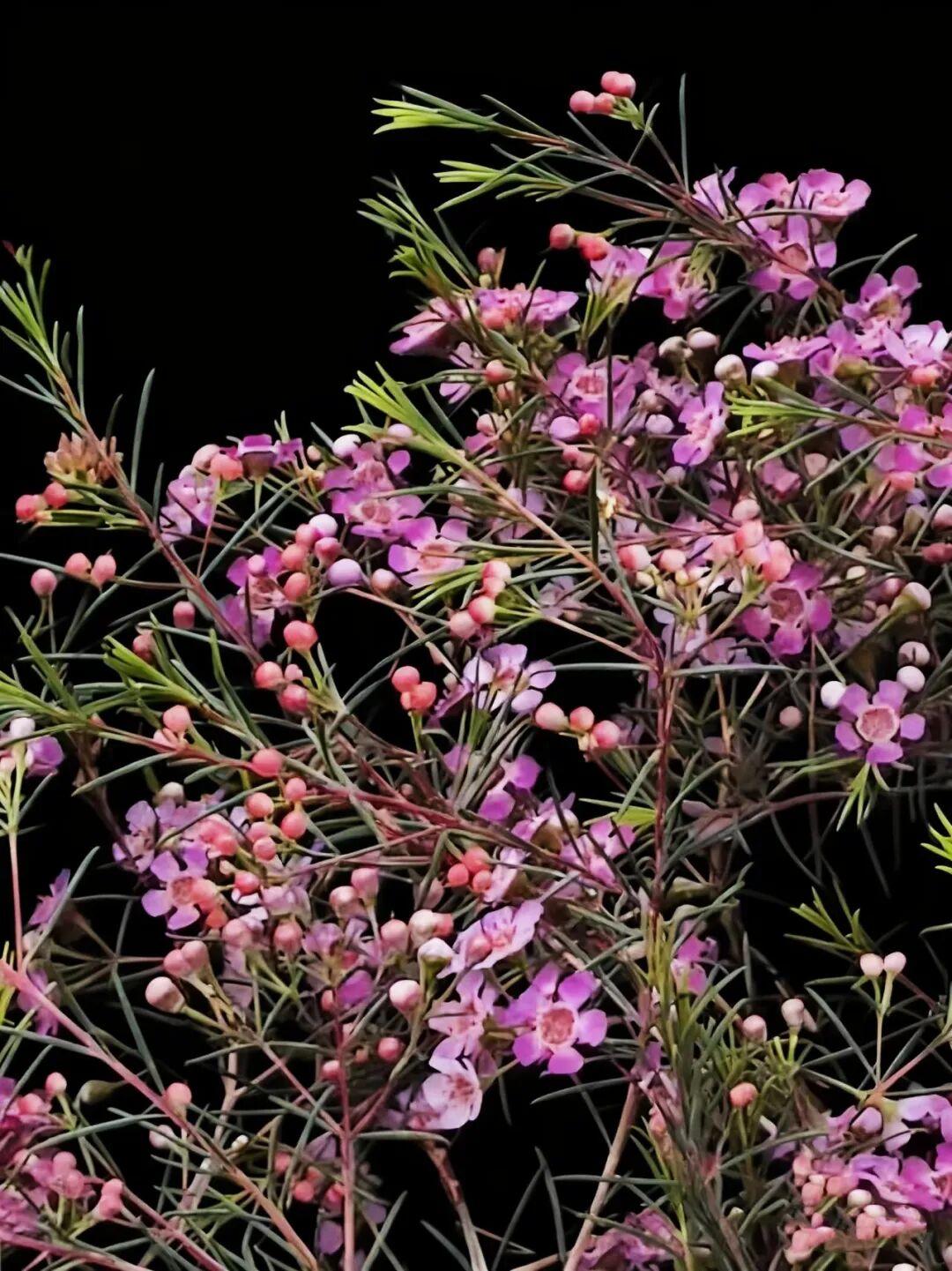 澳洲腊梅,别名杰拉尔顿蜡花、淘金彩梅等,是一种原产于澳大利亚西北部沙地的桃金娘科风蜡花属矮生灌木。尽管其名称中带有“腊梅”和“梅花”,但它与中国的蜡梅(蜡梅科)或梅花(蔷薇科)并无亲缘关系,仅因花型和部分特征相似而得名。 澳洲腊梅,为常绿灌木,生长迅速,栽培当年可达1米高,三年内可长至3米,树形呈自然灌丛状。其叶片对生线形,细长如松针,四季常青,带有淡淡清香。花型小巧,通常有5枚花瓣,呈梅花状,花瓣外层具蜡质光泽,晶莹剔透。原生花色为白色或粉红色,花心常为紫色或金黄色。白色花朵香气浓郁,类似梅花与蜂蜜的甜香;粉紫色香味较淡。 澳洲腊,因其花期长、花色淡雅、枝叶优美,广泛用作切花、盆栽或园林景观植物,被誉为“年宵花”。 澳洲腊梅,以其独特的东方神韵与西方生命力的结合,成为现代花卉市场中备受喜爱的“新贵”。 澳洲腊梅,象征高洁、坚贞、友谊长存和忠贞的爱情,适合赠予亲友或恋人。 ![]() ![]() ![]() ![]() ![]() ![]() ![]() ![]() ![]() ![]() |
