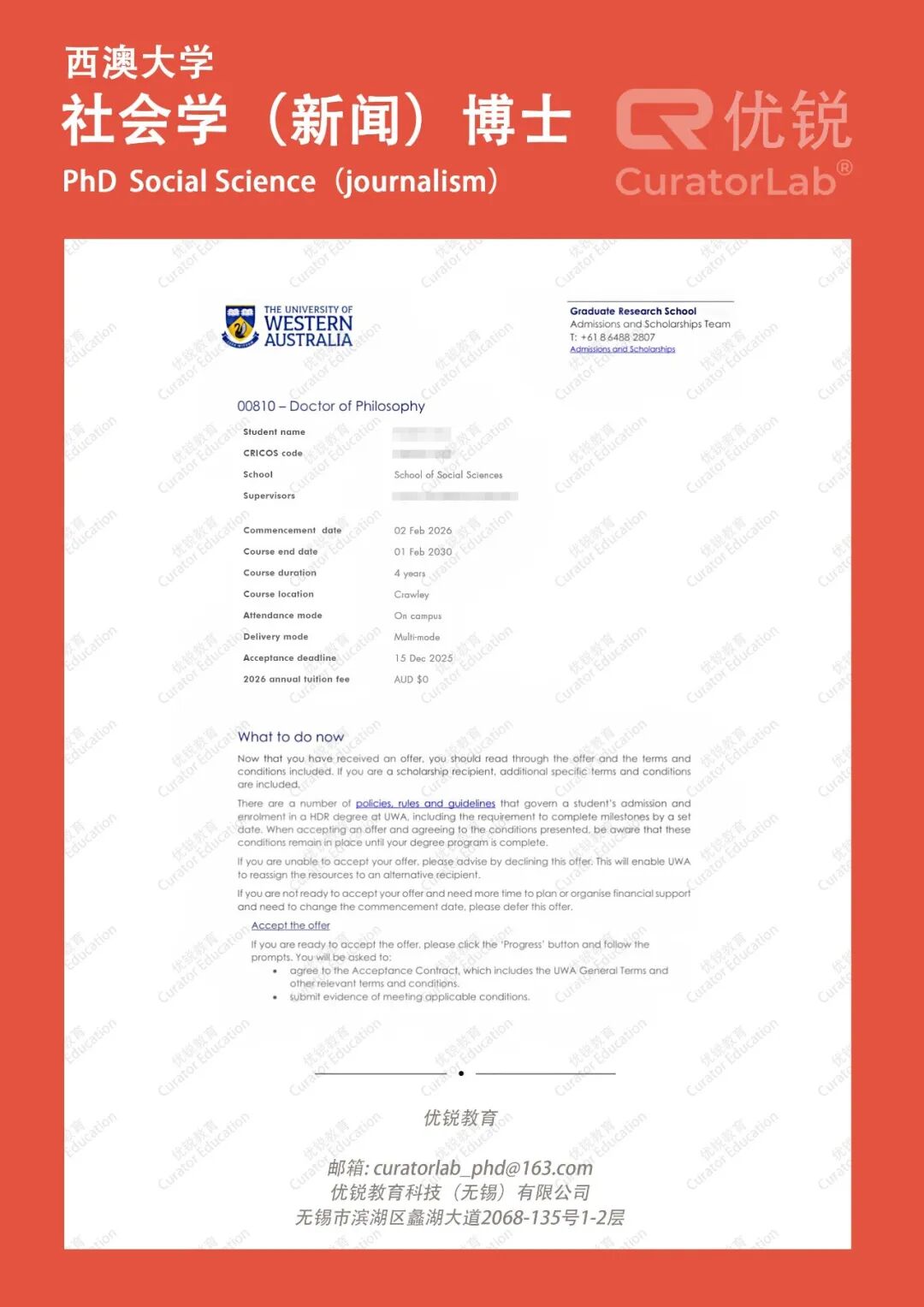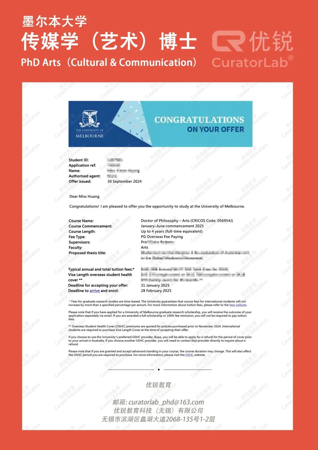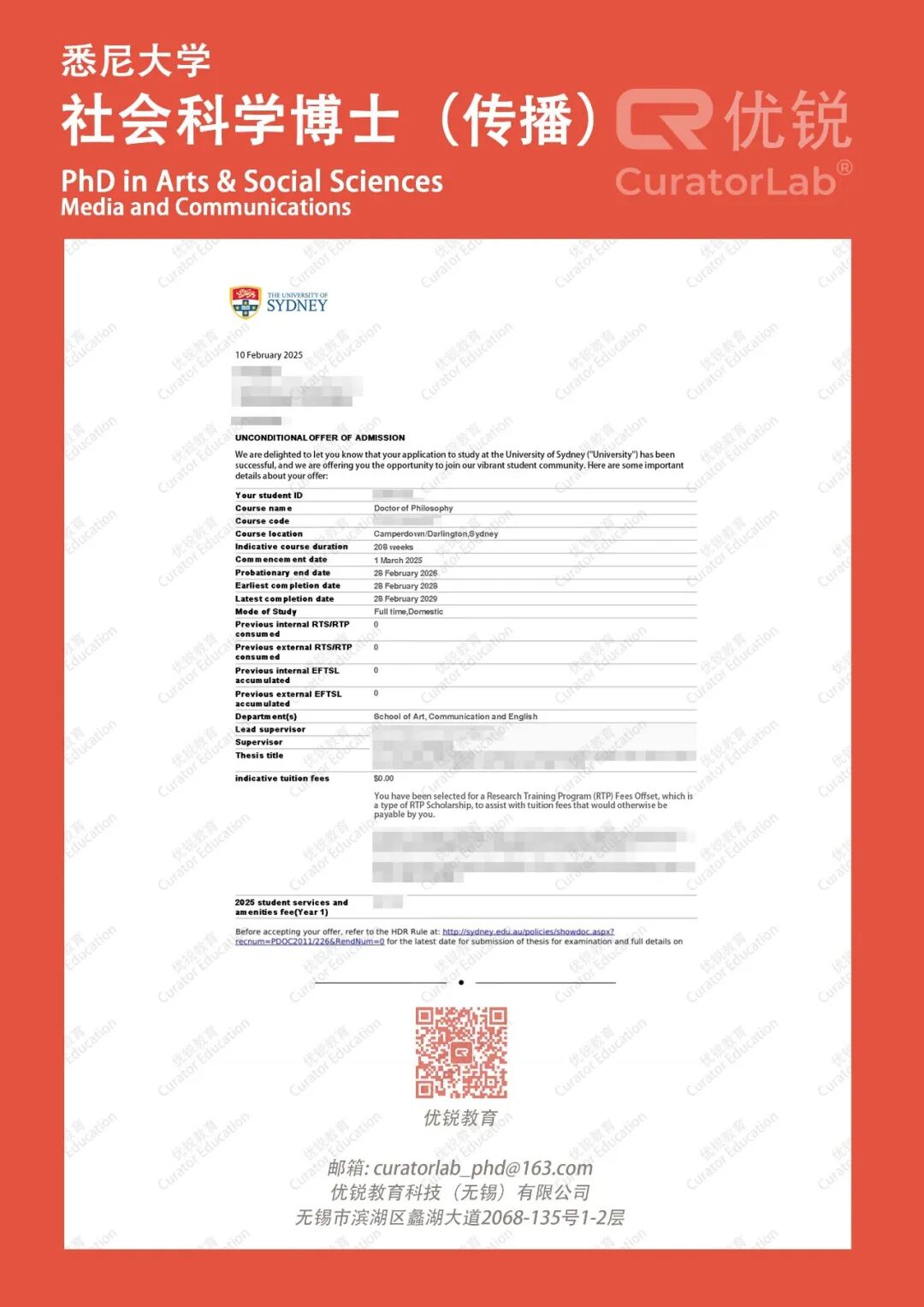 ![]() ![]() @offer展示 【学生背景】 本科:澳洲某院校,传媒与传播学,HD 硕士:澳洲某院校,全球媒体传播,HD 【院系介绍】 University of Sydney 的 PhD in Arts and Social Sciences(Media and Communication) 是一个研究导向型博士项目,聚焦媒体与传播在社会、文化与政策中的作用。研究主题包括媒介与社会关系、数字与社交媒体文化、政治传播、视觉与声音媒体分析等领域。 @USYD ![]() @offer展示 【学生背景】 本科:国内某院校,国际新闻,88/100 硕士:国内某985,新闻学,3.6/4.0 【院系介绍】 The University of Western Australia 的 PhD in Social Science(Journalism 方向) 是一项以新闻与传播研究为核心的博士学位。该项目强调媒体理论、新闻制作实践、媒介与社会互动、数字平台影响等主题的深入探讨,适合希望在新闻研究、政策分析或高校学术领域发展的申请者。 @University of Western Australia ![]() @offer展示 【学生背景】 本科:国内某211,传媒学,3.27/4.0 硕士:澳洲某院校,数字媒体技术,HD 【院系介绍】 University of New South Wales 的 PhD in Art, Design and Media 项目鼓励跨学科探索,研究主题涵盖视觉与数字媒体、艺术与社会实践、设计理论与方法、创意技术与文化政策等。适合希望在艺术媒体研究、创意产业研究或高校教学方向发展的申请者。 @UNSW ![]() @offer展示 【学生背景】 本科:国内某双非,新闻学,3.79/4.0 硕士:国内某985,国际新闻传播学,3.6/4.0 【院系介绍】 RMIT University 的 PhD in Communication 是研究导向型博士学位,重点在于对传播现象与媒介实践进行深入学术探究。研究方向包括媒介与社会互动、数字传播与平台文化、政策与公共传播、国际传播等,强调理论与实证方法的结合。适合希望在传播学术界、高级传播研究或政策咨询领域发展的申请者。 @RMIT ![]() @offer展示 【学生背景】 本科:国内某双非,新闻学,3.62/4.0 硕士:澳洲某院校,新闻与传播学,Distinction 【院系介绍】 Queensland University of Technology 的 PhD in Communication 是一个以深入媒介与社会研究为核心的博士学位项目。研究范围涵盖媒体政策、数字与社交平台、文化与身份传播、组织与国际传播等方向,强调批判性理论框架与严谨的研究方法(包括定性与定量方法)。适合希望在传播学术界、政策研究或高级传播岗位发展的申请者。 @QUT ![]() @offer展示 【学生背景】 本科:国内某双非,新闻学,3.62/4.0 硕士:澳洲某院校,新闻与传播学,Distinction 【院系介绍】 Victoria University of Wellington 的 PhD in Communication 是一项以传播理论与实证研究为核心的研究型博士学位。项目涵盖媒介文化、政策与治理传播、数字与社交媒体、政治与全球传播等议题。 @VUW ![]() @offer展示 【学生背景】 本科:国内某双非,新闻学,3.62/4.0 硕士:澳洲某院校,全球研究,Distinction 【院系介绍】 University of Canterbury 的 PhD in Communication and Media 是一项以传播与媒介研究为核心的博士学位,强调对媒体、社会与文化现象的理论与实证探究。研究议题可以涵盖媒介政策与治理、数字与新媒体、政治传播、跨文化传播、媒介影响与社会变迁等。 @University of Canterbury ![]() @offer展示 【学生背景】 本科:国内某院校,国际新闻,88/100 硕士:国内某985,新闻学,3.4/4.0 【院系介绍】 The University of Auckland 的 PhD in Communication 是一项以传播理论与媒体实践研究为核心的博士学位。项目支持数字媒体、政治与公共传播、全球与跨文化传播、媒介政策等多样议题,强调批判性理论与实证方法结合。 @University of Auckland ![]() @offer展示 【学生背景】 本科:国内某美院,视觉传达,3.79/4.0 硕士:香港某院校,视觉艺术,3.6/4.0 【院系介绍】 University of Melbourne 的 PhD in Arts(Cultural & Communication 研究方向) 是一项以原创性学术研究为核心的博士学位,强调历史、文化与传媒领域的深度理论与方法训练。学生可在 Media and Communications、Screen and Cultural Studies 等研究领域开展长期独立课题并与导师紧密合作,探讨媒体、文化与社会交织的议题。 @University of Melbourne ![]() @offer展示 【学生背景】 本科:澳洲某院校,传媒与传播学,Credit 硕士:英国院校,电影学,Merit 【院系介绍】 Monash University 的 PhD in Film & Media Communication 是一项以电影与媒体传播研究为核心的研究型博士学位。项目支持全球影视文化、数字媒体与社会互动、媒介生态与政策、视觉文化与批评等多维度课题,强调理论深度与严谨方法训练。适合希望在电影/媒体学术研究、政策分析或批评与策展方向发展的申请者。 @Monash University ![]() @offer展示 【学生背景】 本科:国内某双非,英语,81/100 硕士:国内某双非,文物保护与修护,87/100 【院系介绍】 Australian National University 的 MPhil(HDR)Digital Humanities(Media & Screen 方向)是一条以研究为核心的硕士路径,非授课型项目。学生在导师指导下,结合数字方法与人文研究,探讨媒体、影像、屏幕文化与社会议题,如数字叙事、视觉文化分析与文化数据研究等。以完成研究论文为目标,常被视为衔接 PhD 的重要阶段,适合希望走数字人文与媒体研究学术路线的申请者。 @ANU ![]() @offer展示 【学生背景】 本科:国内某双非,传播学,3.3/4.0 硕士:澳洲某院校,传媒学,Distinction 【院系介绍】 The University of Queensland 的 PhD in Communication and Arts 是一项研究型博士学位,将传播研究与艺术文化研究相结合。项目涵盖媒体与社会互动、政治与公共传播、媒介技术影响、视觉与