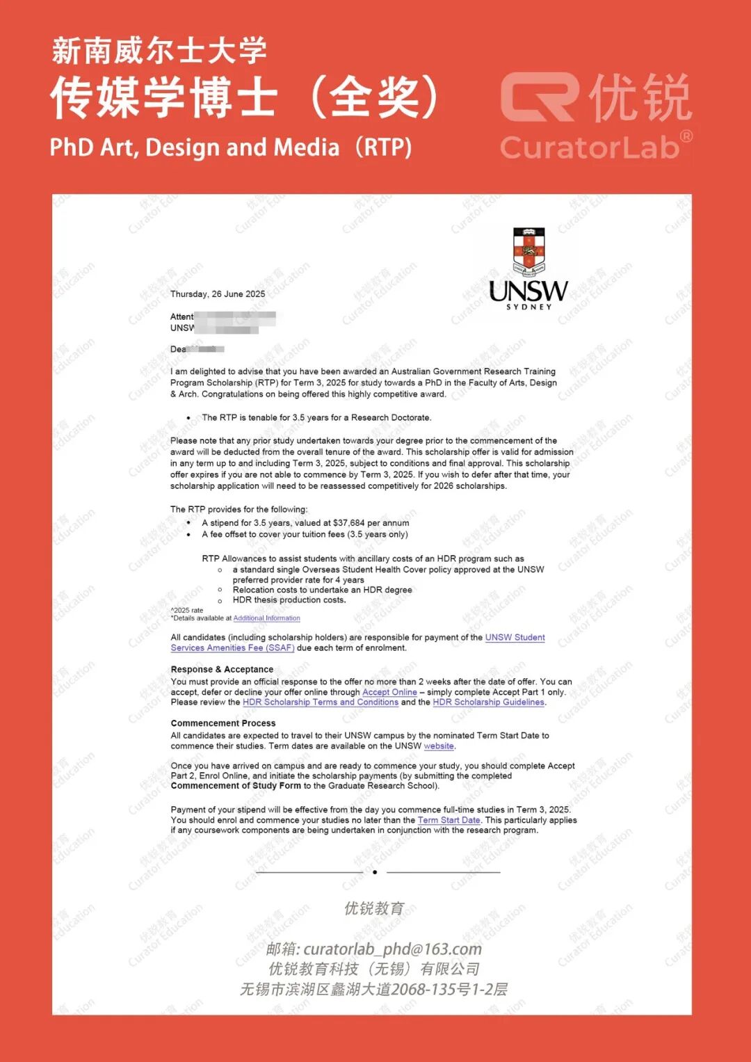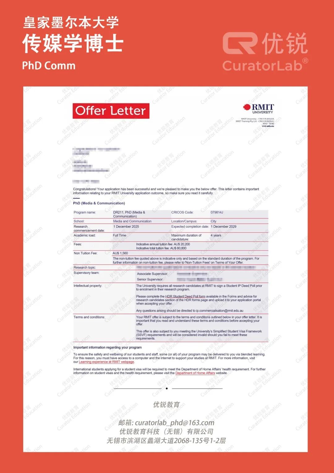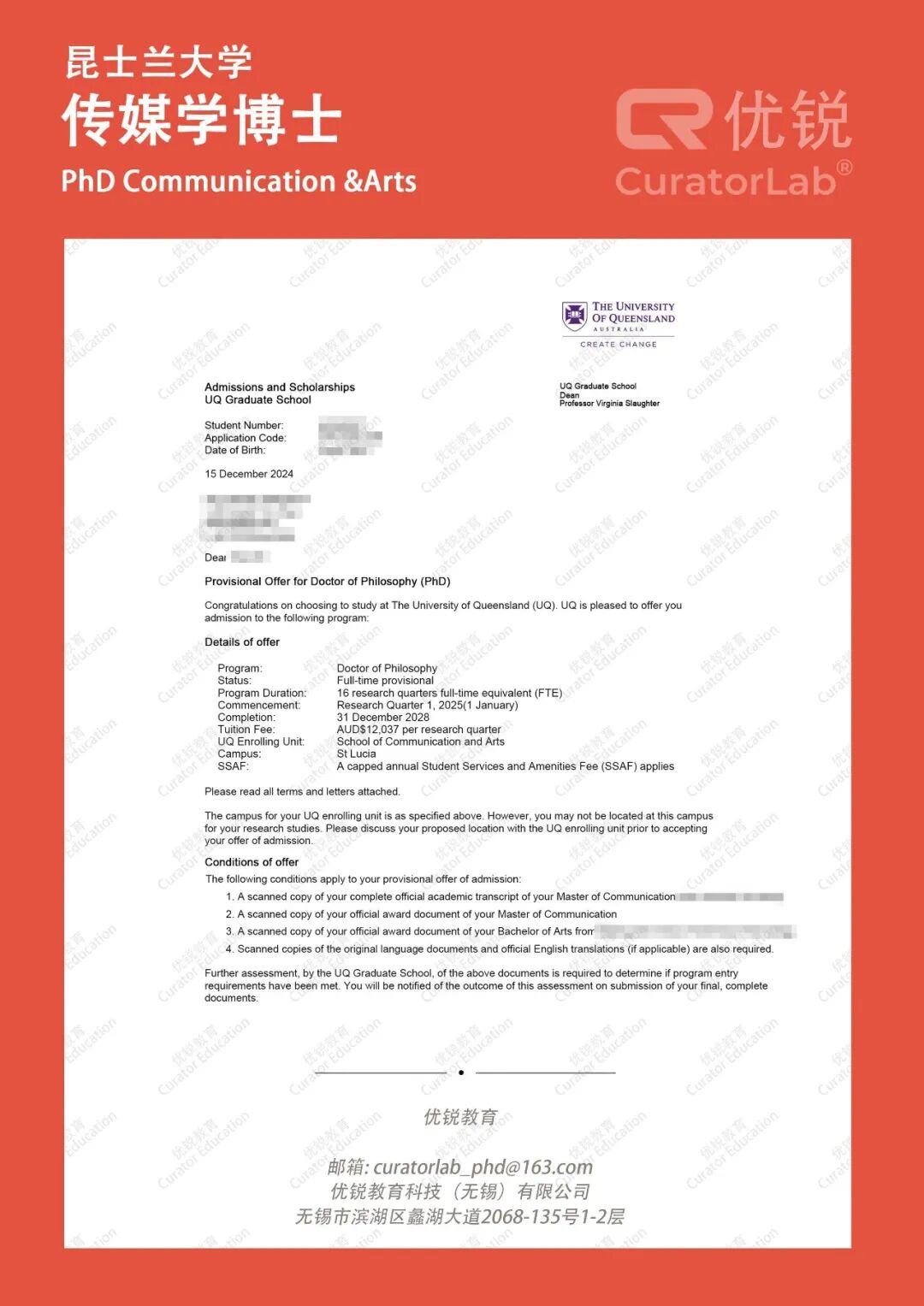 ![]() ![]() @offer展示 【学生背景】 本科:澳洲某院校,传媒与传播学,HD 硕士:澳洲某院校,全球媒体传播,HD 【院系介绍】 University of Sydney 的 PhD in Arts and Social Sciences(Media and Communication) 是一个研究导向型博士项目,聚焦媒体与传播在社会、文化与政策中的作用。研究主题包括媒介与社会关系、数字与社交媒体文化、政治传播、视觉与声音媒体分析等领域。 @USYD ![]() @offer展示 【学生背景】 本科:国内某院校,国际新闻,88/100 硕士:国内某985,新闻学,3.6/4.0 【院系介绍】 The University of Western Australia 的 PhD in Social Science(Journalism 方向) 是一项以新闻与传播研究为核心的博士学位。该项目强调媒体理论、新闻制作实践、媒介与社会互动、数字平台影响等主题的深入探讨,适合希望在新闻研究、政策分析或高校学术领域发展的申请者。 @University of Western Australia ![]() @offer展示 【学生背景】 本科:国内某211,传媒学,3.27/4.0 硕士:澳洲某院校,数字媒体技术,HD 【院系介绍】 University of New South Wales 的 PhD in Art, Design and Media 项目鼓励跨学科探索,研究主题涵盖视觉与数字媒体、艺术与社会实践、设计理论与方法、创意技术与文化政策等。适合希望在艺术媒体研究、创意产业研究或高校教学方向发展的申请者。 @UNSW ![]() @offer展示 【学生背景】 本科:国内某双非,新闻学,3.79/4.0 硕士:国内某985,国际新闻传播学,3.6/4.0 【院系介绍】 RMIT University 的 PhD in Communication 是研究导向型博士学位,重点在于对传播现象与媒介实践进行深入学术探究。研究方向包括媒介与社会互动、数字传播与平台文化、政策与公共传播、国际传播等,强调理论与实证方法的结合。适合希望在传播学术界、高级传播研究或政策咨询领域发展的申请者。 @RMIT ![]() @offer展示 【学生背景】 本科:国内某双非,新闻学,3.62/4.0 硕士:澳洲某院校,新闻与传播学,Distinction 【院系介绍】 Queensland University of Technology 的 PhD in Communication 是一个以深入媒介与社会研究为核心的博士学位项目。研究范围涵盖媒体政策、数字与社交平台、文化与身份传播、组织与国际传播等方向,强调批判性理论框架与严谨的研究方法(包括定性与定量方法)。适合希望在传播学术界、政策研究或高级传播岗位发展的申请者。 @QUT ![]() @offer展示 【学生背景】 本科:国内某双非,新闻学,3.62/4.0 硕士:澳洲某院校,新闻与传播学,Distinction 【院系介绍】 Victoria University of Wellington 的 PhD in Communication 是一项以传播理论与实证研究为核心的研究型博士学位。项目涵盖媒介文化、政策与治理传播、数字与社交媒体、政治与全球传播等议题。 @VUW ![]() @offer展示 【学生背景】 本科:国内某双非,新闻学,3.62/4.0 硕士:澳洲某院校,全球研究,Distinction 【院系介绍】 University of Canterbury 的 PhD in Communication and Media 是一项以传播与媒介研究为核心的博士学位,强调对媒体、社会与文化现象的理论与实证探究。研究议题可以涵盖媒介政策与治理、数字与新媒体、政治传播、跨文化传播、媒介影响与社会变迁等。 @University of Canterbury ![]() @offer展示 【学生背景】 本科:国内某院校,国际新闻,88/100 硕士:国内某985,新闻学,3.4/4.0 【院系介绍】 The University of Auckland 的 PhD in Communication 是一项以传播理论与媒体实践研究为核心的博士学位。项目支持数字媒体、政治与公共传播、全球与跨文化传播、媒介政策等多样议题,强调批判性理论与实证方法结合。 @University of Auckland ![]() @offer展示 【学生背景】 本科:国内某美院,视觉传达,3.79/4.0 硕士:香港某院校,视觉艺术,3.6/4.0 【院系介绍】 University of Melbourne 的 PhD in Arts(Cultural & Communication 研究方向) 是一项以原创性学术研究为核心的博士学位,强调历史、文化与传媒领域的深度理论与方法训练。学生可在 Media and Communications、Screen and Cultural Studies 等研究领域开展长期独立课题并与导师紧密合作,探讨媒体、文化与社会交织的议题。 @University of Melbourne ![]() @offer展示 【学生背景】 本科:澳洲某院校,传媒与传播学,Credit 硕士:英国院校,电影学,Merit 【院系介绍】 Monash University 的 PhD in Film & Media Communication 是一项以电影与媒体传播研究为核心的研究型博士学位。项目支持全球影视文化、数字媒体与社会互动、媒介生态与政策、视觉文化与批评等多维度课题,强调理论深度与严谨方法训练。适合希望在电影/媒体学术研究、政策分析或批评与策展方向发展的申请者。 @Monash University ![]() @offer展示 【学生背景】 本科:国内某双非,英语,81/100 硕士:国内某双非,文物保护与修护,87/100 【院系介绍】 Australian National University 的 MPhil(HDR)Digital Humanities(Media & Screen 方向)是一条以研究为核心的硕士路径,非授课型项目。学生在导师指导下,结合数字方法与人文研究,探讨媒体、影像、屏幕文化与社会议题,如数字叙事、视觉文化分析与文化数据研究等。以完成研究论文为目标,常被视为衔接 PhD 的重要阶段,适合希望走数字人文与媒体研究学术路线的申请者。 @ANU ![]() @offer展示 【学生背景】 本科:国内某双非,传播学,3.3/4.0 硕士:澳洲某院校,传媒学,Distinction 【院系介绍】 The University of Queensland 的 PhD in Communication and Arts 是一项研究型博士学位,将传播研究与艺术文化研究相结合。项目涵盖媒体与社会互动、政治与公共传播、媒介技术影响、视觉与