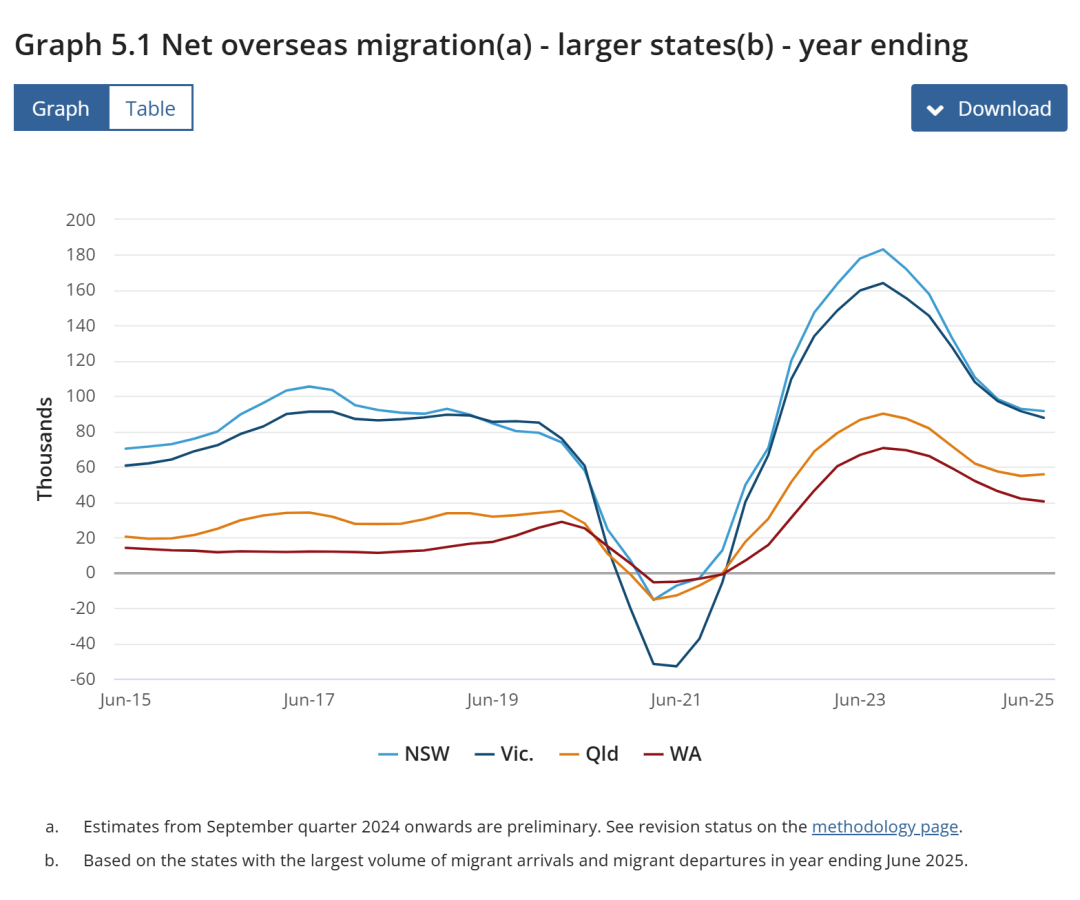 | 澳大利亚统计局(ABS)发布2024-25财年海外移民核心数据,给想要赴澳留学、移民或定居的人带来重要参考。数据显示,上财年澳洲净海外移民人数回落至30.6万人,虽较峰值显著下降,但仍处于高位水平。(添加微信:13426090496了解详情) 核心数据速览 净海外移民30.6万人,同比减少12.3万(上一财年42.9万) 移民入境56.8万人,同比下降14%(上一财年66.1万) 临时学生成最大入境群体,达15.7万人(占比约27%) 移民离境26.3万人,同比增长13%(上一财年23.2万) ![]() 整体数据情况 从入境结构来看,2024-25财年澳洲移民入境规模持续收缩,各类签证持有者入境人数呈现“普降”态势。其中,临时签证持有者入境36.3万人,较上一财年的45.8万人明显减少,但仍是移民入境的核心贡献群体。 除学生外,其他临时签证入境情况为:打工度假者7.8万人、临时技术移民4.6万人、访客5.6万人。永久签证持有者入境同样小幅下滑,全年入境8.8万人,较上一财年的9.1万人下降3%。 ![]() 移民来源国TOP5 2024-25财年,澳洲移民抵达人数排名前五的国家依次为印度、中国、英国、澳大利亚和新西兰。中印两国移民持续占据核心来源国地位,英国和新西兰紧随其后,这一格局与近年趋势基本一致。 此外,数据中还包含一定规模的澳洲本土出生人口回流,进一步印证了全球人员流动在疫情后逐步恢复正常的态势。对于计划赴澳的中国申请者而言,中印作为核心来源国的地位,意味着相关的生活配套、社群支持等资源依然相对完善。 ![]() 签证类型分化明显 尽管移民入境总人数同比下降14%,但不同签证类别的降幅差异显著,体现出澳洲移民政策的调控导向: 临时访客签证:下降34% 国际学生签证:下降23% 永久签证:降幅最小仅3% 整体临时签证:同比下降21% ![]() 年龄及性別 年龄方面,2024-25财年入境移民的年龄中位数为26岁,众数为23岁。 性别结构上则出现明显反转:本财年入境移民中女性多于男性,性别比为98(即每98名男性对应100名女性);而疫情前的2018-19财年,男性移民多于女性,性别比为102。 ![]() 各州分布 从地区分布来看,2024-25财年澳洲所有州及领地均实现人口净增长,海外移民的区域分布呈现“核心州主导,偏远州崛起”的特点: 新南威尔士州:净增91,570人,居全澳首位; 维多利亚州:净增87,770人,紧随其后; 昆士兰州:净增55,740人; 西澳大利亚州:净增40,410人; 南澳大利亚州:净增18,730人; 首都领地:净增4,980人; 北领地:净增3,610人; 塔斯马尼亚州:净增2,720人。 ![]() 2025-26财年澳洲移民 2025-26财年澳洲永久移民总配额稳定在18.5万个,核心是“控总量、提质量、强匹配、偏偏远”,技术移民占比71.4%达13.22万,雇主担保成核心通道,州担保配额缩水且分化,家庭团聚配额稳定,合规与门槛全面趋严澳大利亚内政部移民和公民事务。 技术移民虽然依然是本财年绝对主力,但是在配额使用与政策调整来看,明显呈现向“雇主驱动+紧缺技能+偏远落地”的深度倾斜。这一点在2026年还是非常值得大家持续关注的。 雇主担保(186/SID/494):配额4.4万个,为技术移民最大通道,职业清单从216个扩至456个,覆盖医疗、IT、先进制造等。SID(原482)工作经验从2年降至1年,转186永居无年龄上限,70%配额流向偏远地区,优先处理真实雇主担保申请。 独立技术移民(189):配额1.69万个,较上财年缩减,仅优先邀请裸分90+、匹配紧缺职业(如医疗、数字科技、绿色能源)的申请人,打分制竞争白热化。 州担保(190/491):总配额2.035万个,同比降22.5%,190为1.285万、491为0.75万。各州分化显著:昆州190配额从600增至1850(+208%),新州190从3000降至2100(-30%),维州491从2000降至700(-65%),偏远地区担保权重持续提升。 创新与人才类:NIV(国家创新签证,替代188/GTI)约6-8个月可获全家PR,顶尖人才年薪门槛提至18.31万澳元;GTI配额4000个,聚焦战略紧缺领域。 ![]() 建议计划赴澳的朋友重点关注政策动态,结合自身需求选择合适的签证类型和定居地区,并且从以下几个方面做出细致考量和精准准备: 优先锁定雇主担保:尽快对接合规雇主,尤其是偏远地区真实岗位,利用SID/186通道降低难度。 精准匹配州担保:避开新州、维州等热门州,关注昆州、南澳等配额增长或政策友好地区,叠加紧缺职业加分。 提升硬实力:强化英语、学历、工作经验,瞄准医疗、IT、绿色能源等联邦重点紧缺领域,适配 NIV 或 GTI 通道。 合规先行:确保材料真实完整,提前规划经济担保与薪资达标,避免因细节问题导致拒签。 留学移民咨询:刘成13426090496(微信) ![]() ![]() 澳洲移民生活成本大起底为什么那么多华人一边赖在澳大利亚,一边劝你不要来?移民澳洲,才是开始......澳大利亚留学热门专业介绍,了解一下~澳洲经济增长为何如此需要移民?好消息!!澳洲移民配额恢复至16万,未来两年增加12万!澳洲2020-21财年移民报告出炉:中国移民数量首次第一!澳洲各州如何进入?你需要这份最新澳洲境内州际旅行指南最新发布! 澳洲人平均寿命持续增长, 排全球第六, 长寿原因曝光…在澳洲,孩子上学要花多少钱?公校家长比私校更操心 |