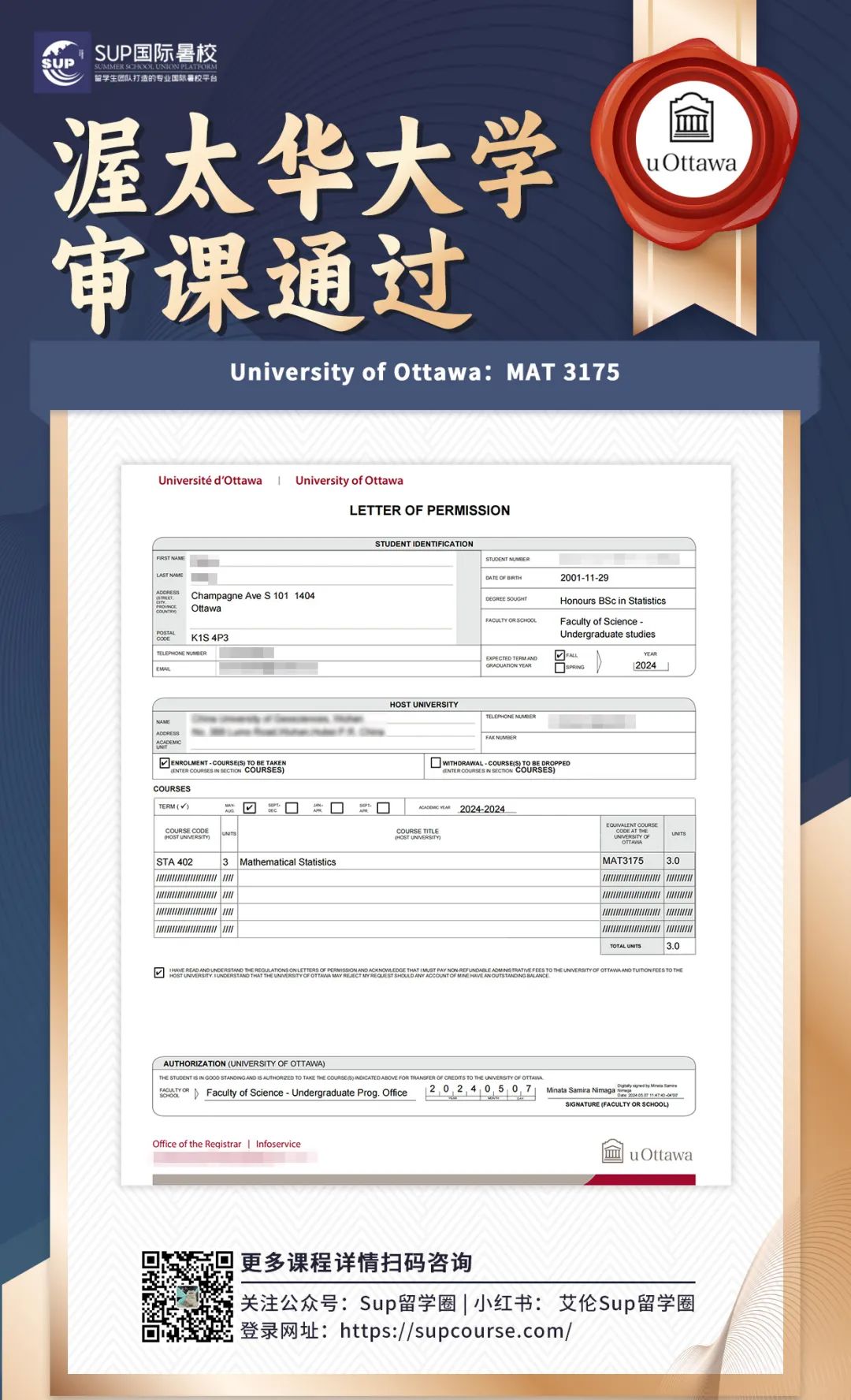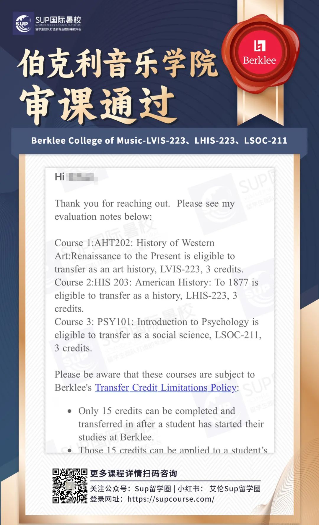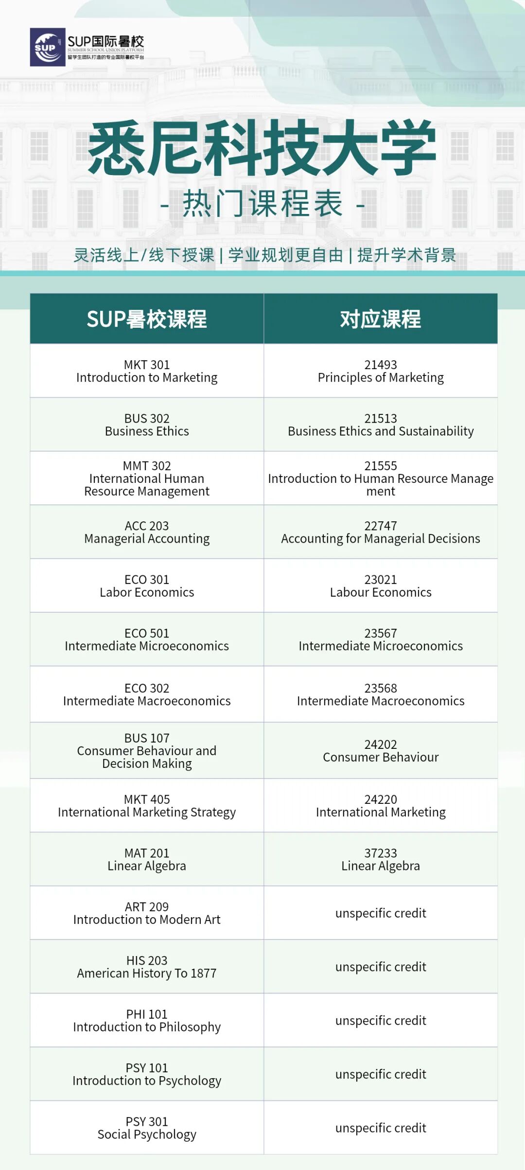 ![]() 宝子们,在北美上大学,学分制可是“必修课”,除了在校按部就班上课,假期其实还有隐藏副本可以刷—比如通过SUP国际暑校这样的正规渠道,在假期修读受认可的课程,然后把学分顺利转回本校! 这波操作最香的是啥?这些转回来的学分,不计入GPA!就像给绩点穿上了“金钟罩”,遇到那些难度爆表的“杀手课”,或者不确定自己能不能驾驭的硬核内容,完全可以考虑校外修课,既凑满了毕业所需学分,又完美避开了GPA被拉低的风险~ 这波操作简直是学业规划的“安全开关”,关键时候真的能救命!感兴趣的话,不妨了解一下SUP国际暑校的课程安排,给自己的学业加个“外挂”吧! ![]() -学校介绍- ![]() 悉尼科技大学(简称UTS)成立于1843年,前身为悉尼机械学院,是一所位于澳大利亚悉尼市的公立研究型大学,澳大利亚科技大学联盟(ATN)、中澳工科大学联盟(SAEUC)、世界大学联盟(WUN)、经AACSB认证的世界著名高校。 悉尼科技大学拥有多元文化的校园和充满活力的国际交流与研究计划,帮助毕业生为现在和未来的工作做好准备。学校有超过43,000名学生,其中国际留学生超过10,000名 ,是澳大利亚规模最大的高校之一。 ![]() ![]() -转学分政策- 为什么转学分如此重要?转学分不仅能帮你解决繁杂的文化课,还能让你更快适应留学生活的节奏,节省时间和精力。 选择专业并适合自己的转学分机构,可以让你在UTS的学习效率翻倍、更加从容。 ![]() 1⃣️ 转出学校和专业必须获得UTS认可。 2⃣️ 申请人必须提供详细的课程描述和学习成绩单。 3⃣️ 申请人需要与UTS的相关课程进行对比,找出相似的课程。 4⃣️ 转学分课程的学分必须与UTS对应课程的学分相当。 5⃣️ 转入的学分必须符合UTS的学术标准。 ![]() 审课截止时间:*至少在主办大学开课前四周递交申请 ![]() -转学分流程- 转学分注意事项 确定选课 与SUP暑校顾问老师沟通计划报读课程,以及当下优惠政策。 提交审课 1.在官网页面搜索Concurrent study UTS,打开网页后下载Application for Concurrent Study,Application中已经写明了审核所需要的所有文件的checklist,准备好所需的资料后通过email交给学校审核。 2.在Ask UTS的网页中提交第一步的Application Form,将要上课程的Syllabus作为附件提交。 等待上课 审课通过后,再根据学服老师的安排开始上课。 转学分 结课后,主办大学发送官方成绩单至UTS,收到成绩单后,转学分成功。 注意事项: 1. 审课过程中,收到邮件答复后请及时将信息同步给学服老师; 2. 如需补交材料,请第一时间和暑校学服老师联系,我们会妥善安排,及时提供。 -扫码了解更多审课政策及优惠- ![]() ![]() -悉尼科技大学对课表- SUP国际暑校开设了许多满足UTS同学需求的各科课程,以下是UTS热门课程推荐。 ![]() ▲可以上下滚动的图片 ![]() -选择SUP国际暑校的优势- ![]() 节省留学费用 SUP暑校致力于为留学生提供绝佳课程质量、高性价比的国际学分课程,费用仅为本校50%甚至更低,在提高学生不同学术体验的同时,还能省钱、放心。 缩短毕业时间 SUP暑校提供灵活,丰富的授课形式和课程选择,线上+线下的上课方式,可以让每一个学生合理利用假期时间,提前完成学位要求,留出更多时间去规划未来。 3V1全方位服务 资深顾问、学服老师与售后老师联合打造3V1式个性化服务,确保每一个学生顺利完成转学分流程,给留学生提供优质的国际学分项目。 ![]() -加入SUP留学路上不孤单- ![]() SUP暑校会组织参加各种线上及线下活动,有机会认识各大高校不同领域的留学生,可以互相交流经验,丰富课余生活,拓宽人际社交圈。 SUP国际暑校部分学员案例 ![]() ![]() ![]() ![]() ![]() ![]() ![]() **向下滑动查看内容 -扫码了解更多审课政策及优惠- ![]() 岁序更迭,新程启幕新年特别活动已上线把专属福利打包送给奔赴新岁的你! 活动期间立享¥2026新年专属优惠福利力度拉满! ![]() ![]() ![]() ![]() ![]() ![]() ![]() ![]() ![]() ![]() |