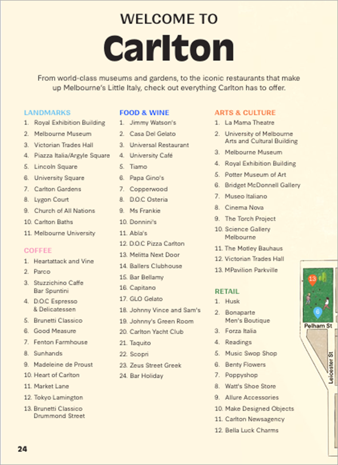 ![]() 卡尔顿(Carlton)街景(照片来自CARLTON directory)很多人也许并不知道卡尔顿(Carlton)这个地方。即使你在澳大利亚的第二大城市墨尔本,也许未必了解卡尔顿。但是,对大部分游客来说,或多或少知道墨尔本展览馆(Exhibition Building)、卡尔顿花园(Carlton Garden)、墨尔本博物馆(Mel. Museum)、意大利街或拉岗街(Lygon St)、墨尔本大学(Mel. University)等地方。就好比很多到过北京的游客,知道故宫、北海、颐和园、天坛和香山等,但未必知道和了解这几个景点所在的区:东城区、海淀区和西城区等等。卡尔顿(Carlton)在墨尔本CBD(中心商务区)正北面的一个区,邮政编码3053。 ![]() 卡尔顿区的位置和范围它的左边是墨尔本大学所在的Parkville区,右边是酒吧云集的Fitzroy区。它们都算是墨尔本的内层郊区(Melbourne inner Suburbs),属于墨尔本市(The City of Melbourne)的范围,之外的区都属于维多利亚州的范围。 ![]() 墨尔本城市的范围 ![]() 世界上任何一个地方,如同一个人一样,有它的出生与成长过程与历史,由弱小到壮大,再盛到衰,再从衰到更新发展,直至今天成熟、繁荣的盛景。卡尔顿也不例外。从它的前世与今生中,可以看到墨尔本乃至澳大利亚的城市,从无到有的发展历程的一个缩影与标本。 ![]() 卡尔顿早期十九世纪的照片 早期的卡尔顿(Early Carlton) 卡尔顿成立于1852年,是墨尔本城市的延伸,维多利亚街(Victoria St)的北部和吉普斯区(Gipps Ward)的一部分。 19世纪50年代的淘金热(Gold Rush)推动了它的发展,当时移民的涌入造成了前所未有的住房需求。卡尔顿以一种杂乱无章的方式开发,大量的砖和青石建筑建在帆布帐篷或木材和镀锌结构旁边。 新的史密斯区于1865年宣布成立,1857年12月,墨尔本第一个网状供水系统通过卡尔顿花园的主阀门从Yan Yean水库输送。 在19世纪60年代和70年代,在竞争性土地出售的推动下,卡尔顿将其边界进一步向北扩展。 1869年11月,史密斯区的北部被宣布为独立的维多利亚区,北卡尔顿的新郊区在赖利街(Reilly,后来的王子街Princes St)以北建立。 繁华年代(The Boom Years) 卡尔顿在19世纪80年代真正形成了自己的风格,许多现存的维多利亚时代的建筑可以追溯到这一时期。这十年始于1880年展览馆大楼(Exhibition Building)的开放,1883年墨尔本将军公墓以北地区被命名为"王子山(Princes Hill)"。可负担得起的公共交通往返城市的可达性为卡尔顿提供了新的住房和商业机会。尼尔森街(Nicholson St)和拉岗街/埃尔金街(Lygon/Elgin St)埃尔金街缆车(cable tram)服务始于1887年,紧随其后的是1889年拉斯唐斯街(Rathdowns St)的缆车服务。内城的铁路开通于1888年,而在1948年停止了客运。1916年,拉岗街首次引入电车(Electric tram),并与公共汽车一起逐步取代了电缆电车。 ![]() 墨尔本皇家展览馆(Royal Exhibition Building,1880年) 萧条岁月(The Bust Years) 19世纪80年代的乐观主义,让位于19世纪90年代的大萧条。企业倒闭、家庭因支付不起租金或抵押贷款而被驱逐,而投机者和投资者则被宣布破产。卡尔顿的许多豪宅年久失修,低标准的住房形成了贫民区,被宣布为不适合人类居住。随着时间的推移,经济逐渐复苏,但卡尔顿经历了1930年代的大萧条,以及20世纪50年代和60年代维多利亚住房委员会(Housing Commission of Victoria)对卡尔顿贫民窟的大范围清理。20世纪70年代和80年代的中产阶级化,带来了住房标准和遗产保护的改善。21世纪,卡尔顿因为开发不当,而失去了许多历史遗产建筑。 卡尔顿的人(The People of Carlton) 自(卡尔顿区)成立以来,它见证了移民潮,并因新移民的语言、文化和习俗而变得丰富多彩,虽然这里与欧洲移民有很强的历史联系,而来自世界各地的人们都把卡尔顿作为自己的家。在19世纪,中国的洗衣店与传统的盎格鲁商店和企业一起经营,来自印度次大陆的小贩则在卡尔顿做生意。来自叙利亚和黎巴嫩的移民参与了服装交易。拉岗街的餐馆区现在以意大利美食而闻名,也是犹太屠夫和面包师的家乡。卡尔顿为塑造墨尔本人的饮食品味和生活方式,做出了很大的贡献。 (www.innercitynews.com.au/Carlton_Directory) 今天的卡尔顿可以提供24小、从早到晚不停顿的吃喝玩乐及文化活动。 ![]() "如果你有24小时,早晨、下午和晚上......" 早晨 在对标生命普拉提(Aligned For Life Pilates)开启你美好的一天,这家普拉提馆位于老卡尔顿电影馆的放映室内——真正的本地瑰宝。之后,咖啡爱好者可以在咖啡机技术店(Coffee Machine Technologies)尽情享受,这里将浓缩咖啡与创新融为一体,或者从市场巷咖啡(Market Lane Coffee)品尝一杯完美煮制的咖啡。在布鲁内蒂经典蛋糕店(Brunetti Classico)犒劳自己一份糕点,然后悠闲地漫步至凯瑟琳·赛姆图书馆与社区中心(Kathleen Syme Library and Community Centre),这里你可以翻阅书籍、参观展览,或只是坐在阳光洒满的庭院里放松身心。出发前,不妨从本蒂花店(Benty Flowers)买一束花,从格特鲁德·杂货店(Gertrude Grocer)选购美食必备品,再从香料店(Gewürzhaus)挑选几样芳香香料——这是把卡尔顿的一点美好带回家的完美方式。 ![]() 下午 卡尔顿的下午时间适合漫游和放牧。在D.O.C、小吃(D.O.C、Stuzzichino)或卡皮塔诺(Capitano)享用午餐,手工意面和愉快的谈话自然流淌。想要辛辣又让人安心的口味,你好重庆(Hi Chong Qing)的手工拉面从不让人失望。艺术爱好者应抽时间前往火炬(The Torch),一个充满启发性的原住民艺术空间,或探索墨尔本大学的科学