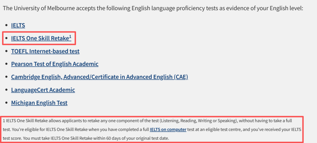 “ PTE考试全面解析 2026年初,留学圈传来重磅喜讯——在2026QS世界大学排名中位列第19、全澳榜首的墨尔本大学,于官网正式宣布接受雅思单科重考(IELTS One Skill Retake)成绩。这一政策的落地,标志着澳洲顶尖的八所研究型大学(澳洲八大)已全部认可这一灵活的英语能力证明方式,为无数因雅思单科短板苦苦挣扎的赴澳留学生,点亮了通往理想院校的新曙光。 ![]() 对于众多雅思总分达标、却因某一单项差0.5分错失录取机会的考生而言,这无疑是雪中送炭的重大利好。以往,这类考生只能重新备战全科考试,耗费大量时间、精力与金钱;如今,只需针对性专攻薄弱科目,即可凭借单科重考成绩补齐短板,大幅降低了语言备考的压力与成本。 ![]() 01 ![]() 墨尔本大学新政深度解读 墨尔本大学在官方政策中明确划定了时间边界,2025年11月17日成为新旧政策衔接的关键节点,具体适用规则如下: 其一,时间划分清晰:2025年11月17日之前递交申请、或已收到录取通知的学生,仍需严格遵守原有语言要求,不适用雅思单科重考政策;2025年11月17日及之后递交的申请,尤其是针对2026年7月及以后入学季的申请者,可正式使用雅思单科重考成绩进行申请。 其二,核心要求明确:所有英语成绩(含雅思单科重考)需在24个月内有效,且必须通过线下考点完成考试,坚决不接受任何在线版本的考试成绩;同时,最终提交的成绩需来自同一份考试成绩单,不可混合使用不同场次的考试成绩拼接达标分数。值得注意的是,雅思单科重考需在原始全科考试后的60天内完成,且同一原始成绩仅能重考一次,最终成绩单会同时显示原始考试日期与重考单项成绩。 其三,考试类型与地点限制:除雅思学术类(含单科重考)外,墨尔本大学还认可托福iBT、PTE学术类、朗思学术类、剑桥高级英语考试、密歇根英语考试等多种语言成绩,为考生提供了多样化选择。但无论选择哪种考试,均需严格遵守地点规定——仅限在考生国籍所在国、上一学历(受教育)所在国、当前居住或工作的国家参加考试,且提交成绩时需提供相应的居住、学习或工作证明材料,例如中国大陆考生需在国内考点参加考试,否则成绩将不被认可。 此外,墨大针对不同课程的雅思基础要求也有明确标准:本科课程需总分6.5、单项不低于6.0;研究生课程总分要求为6.5-7.0,具体需根据专业而定;研究型硕士及博士课程则需结合导师要求,总分通常在6.5-7.0之间,所有课程均认可雅思单科重考成绩补齐单项短板。 02 ![]() 澳洲八大雅思单科重考政策 >> 墨尔本大学 接受雅思学术类+单科重考(线下考点,60天内重考一次),同时认可托福iBT、PTE学术类、朗思学术类等多种语言成绩;考试地点有严格限制,需提供对应证明; >> 新南威尔士大学 接受雅思学术类+单科重考(不接受雅思在线版),同时认可托福iBT(含家庭版)、PTE学术类、剑桥C1高级和C2精通级等;语言成绩有效期2年,雅思单科重考需在原始考试60天内完成; >> 悉尼大学 接受雅思学术类+单科重考、托福iBT、PTE学术类等,部分需要注册的专业(如部分医学、教育专业)不接受剑桥英语成绩; >> 澳大利亚国立大学 八大中对考试类型最开放的院校之一,接受雅思学术类+单科重考、雅思UKVI(含单科重考)、剑桥C1高级、托福iBT(含家庭版)等; >> 蒙纳士大学 可接受雅思学术类+单科重考、雅思在线版、托福系列、PTE学术类、剑桥C1/C2;语言成绩有效期通常为3年(部分专业仍为2年,需提前确认); >> 昆士兰大学 认可雅思学术类+单科重考、托福iBT(含纸笔版)、PTE学术类、剑桥英语/OET(视专业而定); >> 西澳大学 接受雅思学术类、雅思UKVI学术类、雅思单科重考、托福、PTE学术类,也是八大中少数接受多邻国成绩(部分课程)的院校; >> 阿德莱德大学 认可雅思学术类(含单科重考)、PTE学术类、托福iBT、剑桥C1高级、剑桥C2精通级、OET(部分专业); 03 ![]() 雅思单科重考核心考试要点 尽管澳洲八大均接受雅思单科重考,但考生需重点关注以下核心要点,避免影响申请: 1、考试地点:严格执行“三国限定”(国籍国、受教育国、当前居住/工作国),需提供对应证明,否则成绩无效 2、成绩有效期:蒙纳士大学部分专业为3年,其余七大均为2年,有效期从原始全科考试日期算起,需合理规划时间。 3、成绩单要求:重考成绩需与原始全科成绩单绑定,不可混合不同场次成绩拼接,需提交合并成绩单。 4、专业差异:部分热门专业(医学、法学等)可能有更高语言要求或考试类型限制,需提前查询目标专业要求。 补充:单科重考仅适用于学术类、UKVI类雅思,费用约250-300澳元,退考需提前10天申请,可退部分费用。 以上就是关于澳八大雅思考试的相关内容啦,祝每位考生都能精准规划、高效备考,早日拿到理想分数,奔赴目标院校与国家。 如果在语言提升过程中需要专业协助,欢迎扫描文末二维码,添加我们获取免费咨询服务。 以上内容请以官方发布的最新信息为准 — END — 【声明】内容整理自网络,版权归原作者或平台所有,如有侵权请联系删除。 ▉ 关于我们 / ABOUT US ![]() 星度环球文化集团是一家环球A端资源方企业,致力于环球事业已12年有余。公司主要业务包括:翻译、教育、留学、科技及移民投资等。 ▉ 联系我们 / CONTACT US ![]() 咨询或了解 高校申请 / 留学申请 / 翻译 / 语言课程 / 其它 欢迎联系珠海公司沈老师→ ![]() 13926998689 ▉关注我们 / FOLLOW US ![]() 扫码关注 星度环球