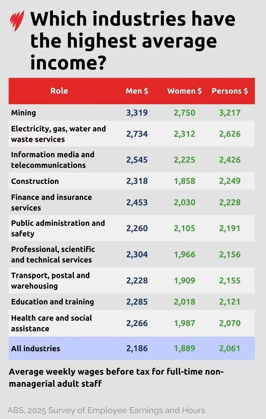 工资收入并不总是反映你工作的努力程度,专家表示有一些关键因素会影响你的薪酬。 澳洲统计局于1月23日发布的《雇员收入和工时》数据显示了澳洲收入最高的人群及其获得报酬的工作时长。 悉尼大学职场专家John Buchanan表示工资可以反映劳动力市场的运作方式,即对更抢手的技能支付更高的报酬,但在围绕人们应该获得多少报酬的争论中,也存在伦理因素。 John Buchanan指出了高级管理人员和首席执行官(包括大学校长),其薪水超过了100万澳元。 他表示,大学校长与其他学术人员之间的薪酬差距已经扩大。 澳洲研究所去年发布的一项分析发现澳洲大学校长的薪酬水平位居世界前列,到2023年,平均工资已接近130万澳元。自1985年以来,他们的工资几乎翻了四倍(基于2024年的数据,经通胀调整后为30万澳元)。相比之下,大学部门其他工人的工资中位数仅增长了39%,从62159澳元增至86673澳元。 ![]() 某些职业“薪酬严重虚高” John Buchanan表示大学校长的加薪反映了高管薪酬更广泛的趋势。 根据Odgers和OpenDirector发布的一项调查,首席执行官的薪酬去年大幅飙升。调查发现,领导澳洲证券交易所前300强公司的首席执行官平均收入为386万澳元,比前一年增长了10%(总薪酬包括基本工资以及任何津贴、公积金、奖金或佣金)。 然而,“实现收入”可能更高,因为它包括了期权和股票归属时收到的资金。 据《澳洲金融评论》2025年11月报道,去年澳洲收入最高的CEO是Develop Global的Bill Beament,他拿到了5960万澳元的实现收入——部分原因是公司的期权转换成了股票。 John Buchanan表示金融行业的人员也享有较高的工资,因为他们可以接触到该行业流动的巨额资金。 “他们并没有让经济变得更高效,”他说。“我认为你必须退后一步问:‘什么是公平的?’” 同样,John Buchanan表示经理们能够“从他们完全可见的现金流中提取资金”。 “我认为高管、金融业的核心部分,以及——特别是私立医疗领域的核心部分——薪酬严重虚高。” 工作时间最长的员工 如果排除具有战略责任或监督大量员工的首席执行官和其他高级经理,根据ABS的数据,澳洲全职成年工人的税前平均周薪为2061澳元。这大约相当于每年107172澳元。 对于全职工作的人来说,他们的“普通时间工时”为每周38小时。这些约定的工时不包括加班费、休假津贴或裁员补偿。 如果算上带薪加班费,数据显示成年人平均每周工作39.2小时。 ![]() 在工作时间最长的人群中,没有一个属于高薪工人之列。 卡车司机的平均周薪为税前2078澳元,平均每周工作46.5小时,远高于39.2小时的总平均水平。 澳洲收入最高的职业是执业医生,平均每周收入3554.1澳元,工作时间约为40.8小时。 ![]() 有几个高收入职业的带薪工时低于平均水平。 这些职业包括:杂项专业经理(未在别处分类的专业经理,包括军队、警察和消防部门的高级官员);商业行政经理;高等教育教师;以及广告、公关和销售经理。 首席执行官和其他高级经理的工作时间和平均工资不包括在这些数据中。ABS的一位发言人表示这些数据来自5万个工作的样本量,“不支持这种细分程度”。 工作时间最短的员工 在带薪工时最低的人群中,只有一个职业也出现在高收入名单上——高等教育教师。 但专家表示带薪工时的数据可能无法反映实际工作时间。 昆士兰科技大学经济学副教授Leonora Risse指出学术人员经常进行无偿加班,例如批改学生作业和回复学生邮件。 ![]() 这意味着对于需要现场办公的工作,如建筑业或采矿业,你更没可能获得额外工时的报酬。 ![]() 为什么有些人的工资比别人高? 谈到高薪职业,John Buchanan表示有些是由于所需的高水平技能和教育程度而显得合理,而另一些则是特定行业的情况。 他指出采矿业——平均工资最高的行业——是资本密集型的,需要对基础设施和其他资产进行大量投资才能运营。但其产品可以在极少雇员的情况下产出,这意味着工人的高薪不会对整体运营成本产生剧烈影响。 在澳洲,17岁及以上的劳动人口中,约有2%受雇于采矿业,18%受雇于医疗保健和社会救助行业,10%受雇于教育和培训行业。 ![]() 采矿业相对较少的员工人数也使得该行业更容易受到停工或工会罢工的影响,因此雇主可能更有可能同意工人的要求。 “不需要太多人就能套牢大量的资本,”John Buchanan说。 Leonora Risse表示同意,并称工作条件也是原因之一,较高的工资可能反映了所谓的“补偿因素”。 但Leonora Risse表示这种解释只能说明部分问题,因为其他一线工作人员或护理人员也可能面临危险环境,但这并没有在同等程度上提高他们的薪水。 另一个需要考虑的因素是,采矿业从业人员通常是FIFO(飞进飞出)员工。当他们在现场时,工作强度通常很大,这体现在他们长于平均水平的工作时间上。这可能使他们有资格获得加班费、夜班津贴、周末费率或其他提高工资总额的罚金工资。 这些因素可能也有助于解释为什么电力行业的人员(需要高技能且有时在偏远地区监督大型项目,如发电厂和输电线路)属于高收入人群。 高学历与高技能 尽管从事采矿相关行业的人员属于澳洲收入最高的群体,但他们并未在收入最高的具体职位中夺魁。 执业医生、ICT经理(监督组织技术系统和基础设施的员工)以及杂项专业经理位居榜首。如果包括加班费,医生平均每周赚取3554.1澳元,而ICT经理每周赚取3401.6澳元