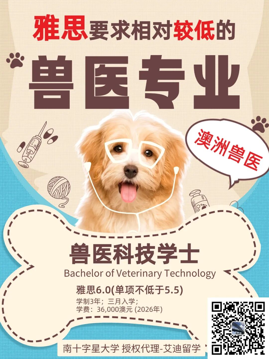 ![]() 🐾 雅思6.0就能冲澳洲兽医!南十字星大学-兽医科技学士! 想学兽医,但被雅思7.0的高门槛劝退?😭 别急着放弃! 澳洲南十字星大学兽医科技学士,雅思只要6.0(单项不低于5.5),简直是兽医留学圈的“宝藏专业”! ![]() 且毕业生可以自愿向澳大利亚兽医护士委员会(VNCA)旗下的“澳大利亚兽医护士与技术员”(AVNAT)注册计划进行注册。 可在澳洲和新西兰的: 兽医诊所/医院 农业企业 动物园/野生动物救助中心 动物保健品公司 从事兽医技术相关工作; 📚 Bachelor of Veterinary Technology 兽医科技学士 热门专业名额有限,且每年只有3月一次开学, 有意向的同学们请尽早递交。 💬 适合谁? 👉 高中生想读兽医,但担心语言考不到7.0+ 👉 预算有限,想要高性价比的澳洲兽医课程 👉 喜欢动手实操,想在真实的兽医环境里学习 南十字星大学授权代理——艾迪留学 澳州留学疑问,直接扫码咨询 ![]() *注:若无特别提示,部分整理自网络,版权归原作者所有, 若侵权,请联系删除。 澳洲留学热文回顾 2026 QS世界大学排名-澳洲大学篇:墨尔本大学稳居榜首!UNSW冲击全澳第二! 新财年澳洲移民配额巨变,留学生如何选州/专业?一文说透新政下的最优解,抓住雇主担保新机遇! 【澳洲签证】 秒下!艾迪留学澳洲签证下签分享!这一波太给力了! 哇!澳洲学签下签大爆发! 保姆级教程 | 手把手教你申请澳洲学签,照做就行! 【紧急通知】!澳洲学生签证115新部长令已颁布,11月14日即刻生效! 【offer秀(2025新)】 接!新鲜出炉!【墨尔本大学-本科offer】! 晒一波 | 澳洲非八大,世界Top 200名校offer! 晒一波!澳洲八大【预科+本科双offer】,百强名校提前占位! 【硕士:一年制/专升硕】 重磅升级!澳洲八大奖学金——最高涨幅50%,国际生迎申请黄金期! 重磅!澳洲八大一年制硕士课程 合集! 15所澳洲大学#专升硕#合集!学历提升收藏! 高中生-预科/本科: 不用飞澳洲,一次看全4所八大预科!提前锁定世界百强名校! 澳洲博士 接!澳洲博士offer+学签,助力攀登学术高峰!附:博士申请攻略 澳洲博士 | 查尔斯达尔文大学博士申请攻略 其他热文: 2026墨尔本大学中国信息日 报名开启! 澳洲移民三宝:幼教/护理/社工 拿PR现状!用数据说话! 悉尼大学:本科、硕士申请全指南! 塔州留学利好 | 毕业生工签最长4年!留学签证高优先级处理(Priority 1)! 北领地留学利好 | 集齐“偏远地区加分”+ 最长工签! |