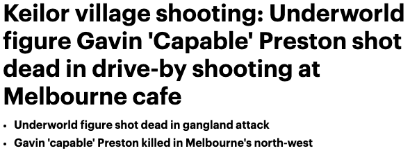 ![]() ![]() 据《每日邮报》报道,周六上午,墨尔本西北部Keilor发生枪击事件,一名黑社会人物在城区的一家咖啡店吃早餐时被枪杀。 ![]() 报道称,墨尔本头目Gavin 'Capable' Preston在该市西北部Keilor Village的Sweet Lulus咖啡店遭到伏击。 ![]() 据《先驱太阳报》报道,据信Preston在与犯罪分子Nabil Maghnie的一位近亲一起用餐时身中10枪。 9news报道称,Preston当场死亡,另一名男子受重伤。 维州警方已经关闭了购物区两端的Old Calder高速公路,并呼吁居民避开交通严重拥堵的区域。 据信,涉嫌枪手已驾车逃离现场。 凶杀组的警探、警察和急救人员正在现场。 ![]() 维州警方告诉《每日邮报》,警方正在调查这起事件。 一位发言人说:“警方目前正在Keilor调查一起致命枪击案。警方已经封锁了该地区,并建立了犯罪现场。警方仍在努力确定事件的相关情况,但在目前的早期阶段,这起事件似乎是有针对性的。” Preston是墨尔本最暴力、最令人恐惧的黑帮人物之一,他在2012年因枪杀毒贩Adam Khoury而入狱11年,今年2月获释。 Preston还参与了当年的一系列枪击案,当时另一名毒贩也受了伤。 Preston的绰号叫“Capable”,因为他被认为“什么都敢干”,他在18岁时就有过严重的暴力犯罪前科,包括武装抢劫和使用武器。 ![]() 后来,他把这个绰号纹在了脖子上。 当地一位店主告诉《先驱太阳报》,他当时正在喝咖啡,突然听到街上“一片混乱”。 他说:“我没有听到任何枪声,但我听到了警笛声,所有人都冲了过来。这个国家怎么了?昨晚(墨尔本CBD致命车祸),现在又是这样。这太疯狂了。” 自Preston获释后,警方和黑社会人士一直保持警惕。 ![]() 报道称,50岁的Preston被怀疑与前飙车族Toby Mitchell之死有关,并涉嫌密谋杀害Mick Gatto。 维州警察局长Shane Patton在与维州州长Daniel Andrews就周五晚发生在Bourke St的恐怖车祸举行新闻发布会时,被要求谈及这一事件。 据报道,Preston已经为出狱做了准备,他联系了以前的宿敌,向其保证出狱后不会再找他们算旧账。 一位认识Preston的人告诉《时代报》:“没有人相信他想要平静生活的说法。他一直都很疯狂,这一点不会改变。人们议论纷纷,有些人显然更希望他留在监狱里。” 编译:Kazaf来源:Daily Mail 以上为正文内容 ![]() ![]() ![]() ![]() ![]() ![]() ↑ 滑 动 查 看 更 多 图 片,扫码观看↑ ![]() ↓↓↓️️点️️击此处“阅读全文”,下载澳洲印象App |