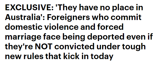 ![]() ![]() //前言// 今天早上维州州长摔倒的消息令人揪心, 就在刚刚, 州长发布了一份声明说明了伤势, 摔得还真是不轻… 另一方面, 澳洲封国以来移民产业止步不前。 随着疫情好转, 最近终于有了一丝丝复苏的迹象... 然而在这个时候, 澳洲移民部长却宣布收紧签证审批规定! 更让人意想不到的是, 外界对这个消息却一致拍手叫好? #01: 维州州长摔倒严重受伤, 正在接受重症监护 今天一大早,就传来了一个让人非常揪心的消息: 维州州长今天早上不慎在家中摔倒,被紧急送往医院。 ![]() (图片来源:ABC News) 就在刚刚,州上发布了一份声明,说明了自己目前的大概状况。 声明中指出,维州州长Daniel Andrews是今天早上在自家湿滑的楼梯上不慎摔下。 目前正在接受重症监护。 ![]() (图片来源:3AW) 被送往医院之后,CT扫描显示他的肋骨骨折、椎骨受损。 在声明中,Andrews还感谢了在医院照顾他的护理人员。 据媒体今天早些时候报道称,维州州长Daniel Andrews今早在家准备出门上班时摔倒,随后被送往医院。 副州长James Merlino将于今日接替Andrews的职务,包括上午9点30分在墨尔本东北部举行的新闻发布会。 在上午的新闻发布会上,Merlino还表示,Andrews仍在医院接受“预防性x光检查”。 他表示Andrews摔得很重,但“目前很好,很快就会站起来”。 ![]() (图片来源:3AW) Andrews先生从上周五下午开始休假,原本预计今天将回到工作岗位。 他在第二波疫情期间连续每天出席100多场新闻发布会,还带火了“North Face”的夹克,一下看不到他了,竟有些不习惯。 ![]() 虽然封城政策造成了很多人的不满,也因为隔离酒店的事情饱受诟病。但也是州长采取的这样强有力的政策,才能让维州人民顺利度过一波波疫情。 希望州长能够好好休息养伤,早点回来继续与民众并肩作战。 #02: 澳收紧签证审批, 这么做会被驱逐 另一方面,澳洲的签证政策又有了新的变动。 根据Daily Mail的报道,昨天,澳洲移民部长Alex Hawke签署指令,宣布收紧签证评估政策。 ![]() (图片来源:Daily Mail) 这项指令要求移民部工作人员在评估签证时,必须严格对待家暴和逼婚等罪行。 凡是在澳实施家暴和逼婚的签证持有人,哪怕没有被定罪,也有可能会被驱逐出境! Hawke在Western Sydney Women发表演讲时表示: “ 如果你想要成为澳洲社会的一员,就有责任遵守澳洲法律。 我们不会容忍针对弱势群体的家暴或其他罪行,这种人在澳洲没有立足之地。 ” ![]() (图片来源:Daily Mail) 根据澳洲移民法规,如果外国公民未能通过“品格测试”,移民部有权拒绝发放或撤销其签证。 如果签证持有人被判入狱且刑期超过1年,其签证会自动失效。但是,对于那些刑期较短的人,移民部有权决定是否要将其驱逐出境。 Hawke签署的第90号部长令,要求移民部工作人员在评估签证时重点考察家暴或“澳洲政府和社区非常关注”的其他罪行。 这份重点考察清单包括:家暴、强迫他人结婚(不论是否定罪)以及针对弱势群体(老年人或残障人士)的犯罪行为。 ![]() (图片来源:Daily Mail) Hawke表示:“新的规定符合澳洲民众的期望,犯有严重罪行的外国公民不应当被允许入境或留在澳洲。” 消息曝光后,许多网友都拍手叫好! “ 这个法律好! 加油澳大利亚,家庭暴力真的是非常可怕的事情。 ” ![]() (图片来源:Daily Mail) 不少华人网友也全力支持这项新的签证规定。 ![]() ![]() 相信有了这项规定的加持,发生在澳洲的家暴行为会越来越少... #03: 华人家庭是重灾区 说起来,在华人的家庭里,对孩子的家暴行为是非常普遍的。 毕竟,中国有句老话:“棍棒底下出孝子”。 孩子作业没及时写完,一顿打;考试没及格,一顿打;跑出去瞎玩晚回家,一顿打。 好像在许多华人的心目中,挨打挨骂就是一个人长大的必经过程。 ![]() (图片来源:Daily Mail) 但是这些“管教子女”的手段实际上触犯了澳洲的法律,并有可能会造成严重的后果。 此前,一名居住在澳洲华人母亲因女儿没有好好做作业,一气之下用皮带对女儿进行抽打。 在这位中国母亲眼里看来,如此管教是非常常见的手法。 但是在澳洲,她却被告上了法庭,最终被判为期9个月的感化令,甚至还差点失去孩子监护权。 在最新的签证审批规定实施后,这位母亲要承担的后果可不止是上面的判罚,她还极有可能被当局驱逐出境! ![]() (图片来源:网络) 家庭暴力不只是对孩子,许多女性一直以来也遭受着来自丈夫的暴力行为。 去年,一位华人男子因为家暴自己的妻子,被告上法庭。 最终他获刑5年6个月,而且将在出狱后被取消PR签证! 也就是说,出狱即遣返。 最后 澳洲政府为了减少家暴悲剧,收紧了签证审批规定,这个决定保护了许多弱势人群。 在这里也要再次提醒广大华人,无论是对孩子还是对家人,能动口的千万不要动手。 毕竟,这一时的情绪失控,会让人付出惨重的代价! 另外,希望维州州长能够快点好起来。 Ref: https://www.3aw.com.au/premier-daniel-andrews-taken-to-hospital1/ https://www.dailymail.co.uk/news/article-9336843/Foreigners-guilty-domestic-violence-forced-marriage-face-deported.html 移民 要闻 ☆重大变革!澳洲投资移民申请模式发生彻底改变!不成功再也无须额外花钱啦! ☆为什么要到澳洲留学?这十大理由告诉你 ☆突发!父母移民再传噩耗,担保金暴涨50%,难度全面升高! ☆无英语要求,也不用找工作,澳洲PR可飞速下签!配偶移民原来还有这种操作? 更多好文 点击图片即可查看 ![]() ![]() !