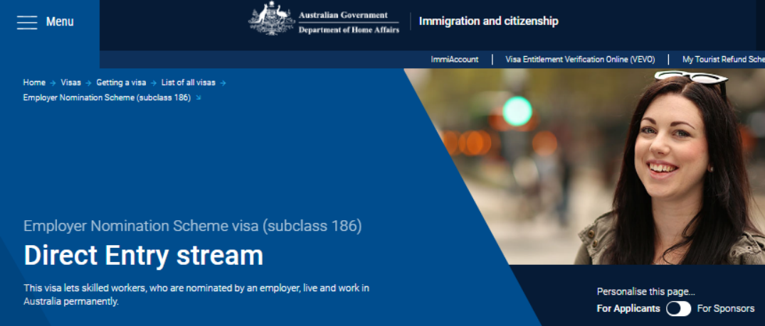 很多人以为65分就够了,但实际上,65分只是进入申请池的最低门槛,而不是能被邀请的分数线。现在真正能获邀的人,通常具备非常完整的背景,比如硕士或博士学历(尤其是澳洲本地学历)、接近满分的英语成绩、几年以上对口工作经验,并且会通过职业年、NAATI等方式把加分做到极致。 也确实存在低分获邀的案例,但主要集中在木工、电工、水管工等紧缺蓝领职业,而且通常需要持牌。而像IT、工程、建筑等热门方向,基本已经进入90分以上的竞争区。整体来看,技术移民并没有关闭,但已经从“普通通道”转变为高分精英筛选机制。 雇主担保(186) 与技术移民不同,186雇主担保更像是一种“就业导向”的移民方式。简单来说,就是你找到一个愿意长期雇佣你的澳洲公司,由企业出面为你申请永居(PR)。它和技术移民最大的区别在于: