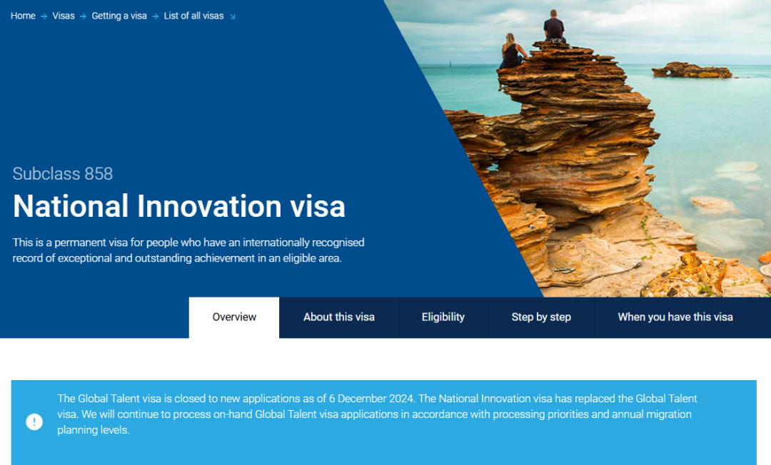这条路径的优势在于降低了一步到位申请PR的难度,更容易赢得雇主的信任,同时也能积累宝贵的本地工作经验。但与此同时,它也意味着更长的周期、对雇主更高的依赖,以及中途换工作等不确定性因素。本质上,这是一个更“现实但更考验执行力”的选择。 ![]() 偏远地区移民(491/494) 澳洲政府为了鼓励人才前往指定偏远地区(即除悉尼、墨尔本和布里斯班以外的大部分地区)生活和工作,专门设立了偏远地区移民签证。相比前两类主流路径,这一类别常被视为一种“过渡型方案”或“缓冲通道”。目前主要分为两种类型: 491签证(偏远地区州担保) 491签证是一个技术移民签证,申请的核心是与澳洲的某个州或领地政府建立联系。你需要满足澳洲技术移民的基本门槛,即年龄在45周岁以下、通过职业评估、英语达到雅思4个6或同等水平,并在线提交一份意向书(EOI)。移民局会根据你的年龄、学历、工作经验等进行EOI打分,获得州政府或符合资格的亲属担保后,就能获得额外的15分加分,从而更容易达到65分的合格线。这种签证对你没有硬性的工作经验要求,核心在于你的“综合实力”,也让你不必与单一雇主绑定,自由度相对更高。 ![]() 494签证(偏远地区雇主担保) 494签证是一个雇主担保签证,你需要先在澳洲偏远地区找到一个愿意为你提供担保的雇主。除了同样需要满足年龄45岁以下、通过职业评估、英语4个6的条件外,它还有一个明确的“硬指标”:你必须具备至少3年与提名职业相关的全职工作经验。它不采用打分制,更看重你的“实操经验”,成功与否直接取决于你是否能获得一份真实的工作邀请。 ![]() 这两类的共同特点是:分数要求更低、职业范围更广,也更容易获得机会。但需要特别注意的是,这并不是一步到位的永居签证。申请人需要在偏远地区生活和工作至少三年,并达到一定收入要求,之后才能申请191永居签证。491签证适合那些个人综合条件优秀(如年轻、学历高、英语好),希望通过自身能力竞争,并获得州政府支持的申请人。494签证则更适合有丰富工作经验、能够获得偏远地区真实工作机会的申请人,即使EOI打分不高,也能通过这条“雇主驱动”的路径实现移民目标。 NIV国家创新签证 为进一步吸引全球顶尖人才,澳洲政府推出了国家创新签证(National Innovation Visa, NIV),旨在吸纳来自全球的高端专业人士、科技创新者和企业家。 NIV申请人资格