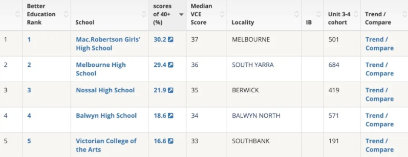 ![]() 维州 首先我们先来说说维州公立学校的TOP5,公立学校由政府投资,占所有学校总数的约60%,入学要求相对较低,但并不意味教学质量不高。 ![]() TOP1 Mac.Robertson Girls’ High School ![]() 公立学校中排名第一的是一所女子学术学校,优秀率达到了30.2%,VCE考试中位分数为37。 地理环境极佳,位于墨尔本CBD以南的Albert Park湖畔,可以说是想要让女孩子在学术和潜能上都得到最大程度开发的最佳选择。 ![]() ![]() TOP2 Melbourne High School ![]() 排名第二的学校跟第一截然相反,是一所精英男校,优秀率达到了29.4%,VCE考试中位分数为36。 这所学校坐落在South Yarra,成立1905年、为9至12年级的男孩提供教学,主要以其强大的学术声誉而闻名。 ![]() TOP3 Nossal High School ![]() Nossal是一所男女同校的精英高中,优秀率达到了21.9%,VCE考试中位分数为35。 2010年成立的它并不输于其他学校,早在2018年,Nossal的VCE成绩在州立学校中就排名第3了。 ![]() TOP4 Balwyn High School ![]() Balwyn High School是一所公立男女混校中学,坐落在位于墨尔本Balwyn North,优秀率达到了18.6%,VCE考试中位分数为34。 学校创办于1954年,开设7-12年级的课程,是维州的第四大公立高中,学校的科教氛围十分浓厚,许多毕业生进入高等学术、政府和私营部门就职。 ![]() TOP5 Victorian College of the Arts ![]() 这所学校比较特殊,属于大学中艺术与音乐学院的一部分,优秀率达到了16.6%,VCE考试中位分数为33。 涵盖了八个学科:舞蹈,电影和电视,戏剧,土著艺术,音乐剧院,制作,戏剧,视觉艺术和写作,是喜爱艺术学生的不二选择。 ![]() 接下来我们来看看维州私立学校的排名TOP3,这些学校通常历史悠久、教学质量极高、软硬设施一流,但是学费较高而且入学条件苛刻。 ![]() TOP1 Ballarat Clarendon College ![]() 这是一所维州第五古老的私立学校,建于1864年、男女同校,优秀率达到了45%,VCE考试中位分数为39,同样为全维州榜首。 他同样在2019年在维州所有学校中排名第一,不仅仅在学术方面表现优异,该校在体育和艺术方面也取得了不错的成绩。 ![]() TOP2 Bialik College ![]() 是一所古老的犹太学校,秉持着跨社区和多元的教学方式,优秀率达到了44.3%,VCE考试中位分数为39,在维州总排名中仅次于Ballarat Clarendon。 该学校一直被评为维多利亚前10名之一,于1942年建校,提供从幼儿园到12年级的教育。 ![]() TOP3 Mount Scopus Memorial College ![]() 这所学校是墨尔本唯一一所提供国际文凭课程的小学和中学课程的犹太私立学校,优秀率达到了37.4%,VCE考试中位分数为38。 ![]() 新州 除了维州以外,新州也是很多中国家长会选择的移民地,同样新州也有很多优秀的学校可供选择。 ![]() TOP1 James Ruse Agricultural High School ![]() 这是一所公立学校,获得了新州政府的资助,优秀率达到了72.8%,自1991年来连续29年蝉联第一,因其卓越的学术成就而闻名,男女同校,但是不接收国际学生入读。 ![]() TOP2 Conservatorium High School ![]() 这所音乐学校同样也由政府资助,是新南威尔士州悉尼音乐学院的附属学校,也是新州唯一的专业音乐高中,优秀率达到了69.1%。 坐落在悉尼CBD、皇家植物园旁边,学术成绩优异,是喜爱音乐学生们可以放下心专攻“热爱”的不二选择。 ![]() TOP3 North Sydney Boys High School ![]() 很明显,这是一所男子学校,跟去年一样也是在新州学校总排名中位列第三,优秀率达到了62.7%。该校课程较为多元化,能够根据自己的兴趣爱好来选择心仪的课程。 ![]() TOP4 Sydney Grammar School ![]() 这是新州中学排名中唯一一所私立学校,它被认为是澳大利亚最负盛名和最好的私立学校,同样也在澳洲学费最贵排行榜中位居第三,优秀率达到了61.3%。 这很大程度上归咎于课程设置的多样性,学校要求在最后两年除了必修课外至少再修读两门人文学科才能顺利毕业。 ![]() TOP5 Hornsby Girls High School ![]() 这所公立女子学校被多次评为新州表现最好的前五所学校之一,在日本和德国都有姊妹学校,优秀率达到了56.9%。 这所高中分为13个院校,模拟大学的科目分为计算机研究、英语、历史、地理、语言、数学、音乐、个人发展、体育、科学、社科、,技术和应用研究(TAS)和视觉艺术。 ![]() 学校的选择关乎孩子未来的发展,除了学校的排名以外,孩子的偏好和兴趣也是选择中重要一环,希望大家都可以在自己心仪的学校入读,并且在未来取得好成绩! END ![]() ![]() |
