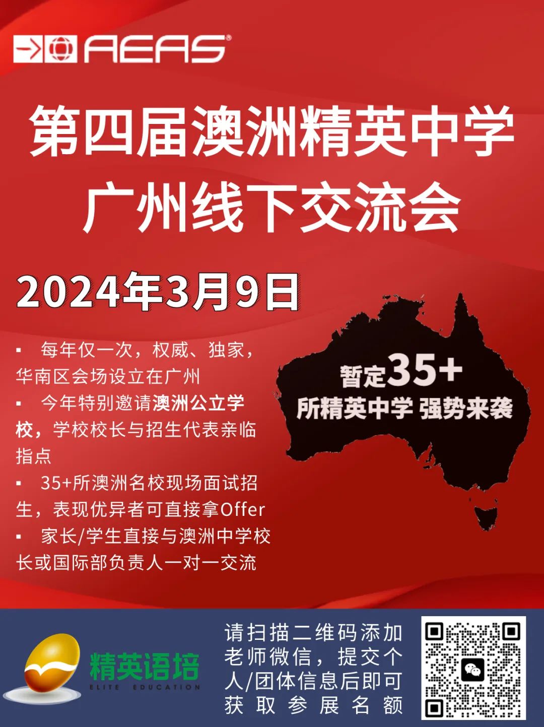 ![]() 2024年AEAS考试现已开放报名,具体考点城市的考试日期请登陆AEAS Testing China查看。⚠️请注意:考试日期会有临时调整,实际日期请按报名时系统显示的日期为准。 低龄留学已经逐渐成为我国留学的主流,许多家长都想在孩子初中,甚至小学时送孩子出国留学,其中澳洲是一个热门国家,对于这些家长,很有必要了解一个非常重要的考试:AEAS。90%的澳洲顶尖私校要求学生提供AEAS成绩,除了可以申请澳洲的私立学校外,AEAS报告也可用于申请新南威尔士州、维多利亚州、昆士兰州、塔斯马尼亚州和西澳州的政府学校。AEAS除了能提供学生的测试成绩单以外,还会根据学生的总体英语水平附带一份详细的评估报告,不仅仅说明学生的语言水平,还有学生的情商、特长、数学和逻辑思维能力等! ![]() (认可AEAS考试的澳洲顶尖私校)01考试内容共以下三个方面 考试题目包括词汇、阅读理解、写作、听力和口语。· 词汇(包括各种题型,例如选择题、同义词搭配和完形填空),考试时间是20分钟,试题数量是20-25题。 · 阅读理解(包括2-3篇不同类型和题目的文章。学生需要阅读文章并回答问题),考试时间为30-35分钟,试题数量为20-30题。 · 写作(需要学生选择自己感兴趣的并适合他们年龄和背景的题目写一篇200字的作文),考试时间为30分钟,试题数量为1题。 · 听力(包括4-6篇不同类型如对话、说明文的文章,学生需根据这些文章的内容回答不同题型的问题,包括选择题和句子填空),考试时间为20分钟,试题数量为20-25题。 · 口语(包括各种会话,例如就熟悉或不熟悉的话题来回答问题,就某个题目作简短的陈述和对话。 这项考试旨在考核学生的口语流利程度、发音、词汇量以及语法等。口语考试一般情况下是需要录音),考试时间为10-15分钟,试题数量为3-4题。 数学推理测试数学推理能力的所有试题都是选择题,学生在参加考试时可使用辅助工具,例如,计算器和词典。但在英语考试中是不被允许的。 非词汇部分综合能力综合能力考试是不需要英语的,考试大约需30分钟。这是一项非语言类的推理选择题考试,能反映学生的综合能力水平。 考试大约共需要3小时15分钟,考试难度根据学生年龄和申请就读的年级而有所不同。 02考试报名方法如何注册参加考试 考生可登录www.aeas.com.cn进行在线注册参加考试,并选择考点城市和考试时间,AEAS会通过邮件确认考试信息。 AEAS考试遍及超过25个国家,比如中国、香港、印度尼西亚、日本、韩国、马拉西亚、新加坡、台湾、泰国和越南等,考生也可在澳大利亚参加AEAS考试。 AEAS考试通常也可以在非考点城市(不在AEAS网站上公布的考试城市之列的)进行,可联系AEAS北京办公室咨询更多信息。 01参加测试时需要携带的东西 · 1张护照尺寸的照片 (必须是近照) · 学校成绩单原件和一份复印件,及英文翻译件 · 护照或身份证原件及一份复印件 · 黑色的圆珠笔或签字笔(铅笔不可以) ?考试当天,考生必须持有效证件和准考证入场,没有有效证件的不能参加当日考试。 AEAS考试费为3150元人民币,考生可在注册考试时选择支付宝在线支付,支付成功后,考生会收到邮件确认考位。 ![]() 广州测试考点2024年度上半年的测试时间为1月20日、2月24日、3月23日、4月20日、5月25日、6月22日。 ![]() 以下更多城市的2024年度上半年测试时间安排: ![]() ![]() ![]() ![]() ![]() ![]() ![]() ![]() ![]() ![]() ![]() ------------------------------2024年第四届广州AEAS官方教育展时间:2024年3月9日 地点:广州市天河区天河路208号粤海喜来登酒店 招生对象:有意申读澳洲精英中小学的学生 专门面向澳洲留学学生群体,真正的低龄留学服务 每年仅一次,权威、独家,华南区会场设立在广州 今年特别邀请澳洲公立学校,学校校长与招生代表亲临指点 零距离了解澳洲精英中学的价值与优势、学校选择、监护安排、住宿选择(学校住宿或寄宿家庭)、AEAS考试等 家长/学生直接与澳洲中学校长或国际部负责人一对一交流 “家旁边”的面试会,为申请人在学校选择、面试申请等方面减少费用成本 35+所澳洲名校现场面试招生,表现优异者可直接拿Offer 提早规划留学,让孩子赢在起跑线上!如果计划到澳洲留学但是却不知道选择哪所学校适合那么就报名参加我们招生展!扫码预约吧! ![]() ![]() End ![]() ●3分钟看懂澳洲低龄留学为什么成为“香饽饽”?●除了高考,澳洲预科低门槛也能就读名校!●妈呀,买了学区房,也不能入学?墨尔本多所公校被迫实施招生限制!●澳洲中小学顶尖私立The Scots College申请指南 对 AEAS 课程 以及 ![]() |