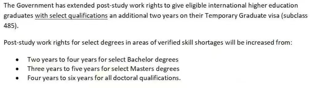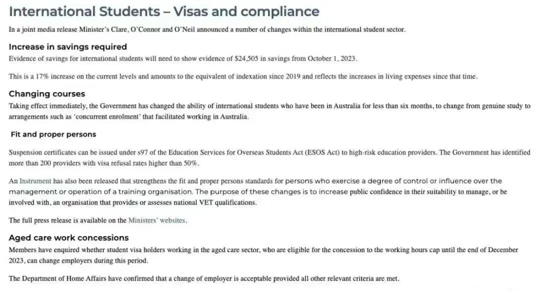 ![]() 马上启诚留学咨询 留 学 资 讯 ![]() 根据AECC近日发布的《2022年全球留学趋势报告》中显示,澳大利亚以8.76分(满分10分)的高分位居榜首,被认为是最安全的留学目的地。加上今年QS世界大学排名中,澳洲八大的名次一涨再涨,今年澳洲的申请人数说句疯爆也不为过。 但随着申请的学生越来越多,澳洲针对留学生推出了新规,接下来马上启诚就给大家盘点一下。 ![]() 留学生签证存款要求增加 ![]() 从2019年开始,留学生办签证需要提供的存款证明数额一直是21041澳元,没有更改过。但从2023年10月1日起,申请澳洲的学生签证银行存款金额提高为至少24505澳元! 而针对这一举动,澳洲官方给出的说明是:为了跟上目前的生活成本。让国际学生在读期间能够负担的起学习生活费用,并且不会因为迫切需要就业而面临被剥削的风险。 ![]() ![]() 多所大学不再认可线上语言考试 包括墨尔本大学、澳国立大学在内的多所澳洲大学都宣布,不再认可online语言成绩。同时,澳国立大学官网显示:不再接受雅思单项重考分数。 ![]() 但对于雅思线下考试、机考的认可度是不变的。 ![]() 禁止赴澳留学生注册多个课程 注册多所高校被叫做平行COE,允许国际学生在注册主要课程时参加其他额外的课程。起初颁布平行COE是为了让国际学生在获取主课程知识的同时,学习其他的课程,提高就业率。结果成了移民者的便利通道,边工作边上课,以此达到留在澳洲的目的。 所以最新规定:留学生在学习6个月之前,不再被允许大学转到职业课程,并且获得学校提供的Release Letter后才能转学。 ![]() ![]() 留学生工作时长改变 之前为了解决劳动力严重短缺的问题,澳洲政府放款了学生签证的工作时间限制。但是今年身价一上来,这时间限制又恢复成原来的了。但也有好消息,从7月开始,留学生工作时间上限改成了48小时,比之前的上限多了8小时。 ![]() 部分专业毕业生签证延长 从7月起,教育、医学、护理、IT、工程、农业、食品等专业的毕业生工作签证可以申请延长2年,最长甚至可以达到6年。 ![]() 也就是说,原本的485工签的时间变为: 部分专业的本科2-4年 部分专业的研究生3-5年 所有的博士都是4-6年 ![]() ![]() 新增允许留学生全职工作的职业 学生签证持有者可以全职在age care (老人护理)行业工作,不受学生签证工作时间限制可以更换雇主。 ![]() 以上就是澳洲颁布的所有新规啦,整体来说对留学生还是挺友好的。现在正是申请季 ,有去澳洲留学意向的同学赶紧联系马上启诚,定制专属你的留学方案吧~ ![]() 扫描小助手二维码 | 预约高端留学咨询 ![]() END 如果你未来有出国留学的打算 想去到世界顶尖学府学习 却不知该如何做出适合自己的留学规划 马上启诚,可以为你提供最专业的协助! ![]() |