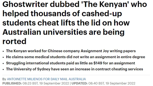 ![]() BAIXU-EDU 专注学业救急 “《每日邮报》在2022年曾报道:一名专为澳洲大学生代写的“枪手”曝光了该行业的内幕。该“枪手”曾为大学生、硕士生代写作业,涉及专业有护理、健康科学、心理学、商科等,其中不乏名校学生,比如悉尼大学、墨尔本大学。” ![]() (图源自:每日邮报 侵删致歉) 学术不端这件事一直是敏感话题,无论是在国内还是国外,校方都对学生高标准严要求,采取0容忍的态度,一旦发现后果也比较严重。 ![]() ![]() 一、什么是学术不端? 学术不端的英文名称为Academic Misconduct,指代的是当学生在学习和考试中进行了违反了学校规定,破坏学术诚信Academic Integrity的行为。 ![]() 澳洲学术不端现状 澳大利亚学术界正在努力研究如何对科研不端行为进行调查。与许多国家不同,澳大利亚没有一个独立机构来监督此类调查,而是由大学和研究机构自己解决。如今,几起备受瞩目的科研不端行为案件引发了人们对现行制度的批评,建立一个独立的研究诚信机构的势头正在形成。 但是,还有一些澳大利亚大学的负责人坚持认为,内部诚信部门足以根除科学不端行为,而设立一个无所不为的诚信机构是一种浪费。目前,相关议题暂未讨论出结果。——中国科学报《澳大利亚正努力改进科学不端行为调查方式》(辛雨) ![]() 二、触犯学术不端的行为 ![]() 论文查重率过高 ![]() Reference引用不当 ![]() 找代写/找代考 找人帮写作业、写论文、代考。 ![]() 共谋行为 与同学分享详细的解题思路或者作业计划,线上考试与多人一起答题,过多借鉴其他同学提出的思路等都属于共谋行为。 ![]() 线下考试作弊被抓包 ![]() 伪造数据和结果 ![]() 抄袭别人的作业或论文内容 ![]() 抄袭自己以前的作业和论文 ![]() 伪造、篡改、造假项目数据 ![]() 引用观点未标明或错误标明出处 总的来说,触发学术不端行为除了主动进行的违规行为,还有无意识的学术不诚信,意思是说学生在对制度解读不清楚而犯下的错误,比如,写论文引用资料时不知道如何使用正确的格式,对澳洲教育体系中约定俗成的学术诚信习惯不了解等,所以留学一定要清楚当地大学的学术要求。 ![]() ![]() 三、被判学术不端后—常见处罚 澳洲大学有很多,但是几乎所有大学对于学术不端的定义都很类似,一般分为轻微、中度、重度3个级别: ![]() 轻微违反学术行为,判定标准是基于学生的粗心或者忽略规则而导致的。 • 轻度剽窃(重复率10%以内),例如“引用”不充分或不一致,转述与原著过于接近; • 轻微的抄写,例如抄写一两个句子。 轻度违反学术的行为影响不大,一般只会扣掉一些作业或是论文的分数。 ![]() 中度的剽窃、抄袭行为 (重复率10-25%)。分为三种情况: ①将别的项目重新包装,作为另一个项目进行评估;②在论文、学位论文、作业中,捏造或者篡改数据、实验结果或者信息来源;③在作业上与其他学生合作,但将其视为个人作业。 学生会收到学校的学术不端邮件通知,如果邮件来自于某一课的教授,说明还在调查阶段,如果来自于学术委员会,这个学术违规的结果可能已经基本确认了,院校会要求学生为学术不端进行解释,并准备后续的听证会。如果学生没有充分的证据,可能导致0分及整个科目挂科处理。 ![]() ①考试作弊被抓包 ②重大剽窃,特别是在论文或学位论文中(重复率25%及以上); ③捏造、篡改数据、实验结果或者信息来源的; ④把别人的作品当作自己的作品或替别人评核(代写)。 重度学术不端可能会收到学术委员会的指控信,那么要特别当心,这个指控基本确认、并且学校已经有证据了。如果解决不当,会导致学术挂科、作业/论文0分,情况严重可能会被劝退。 三、常用3种解决方案对比 很多同学在遇上学术不端问题的时候,首先会想到申诉、申诉不了就转学以及跨本申硕这三种方式,它们适用的情况不同,本期来对比一下它们的区别,以及遇上学术不端的情况,不同情况下应选择哪一种方式进行学业补救。 申诉 申诉流程繁杂,且时间较长,一般分为非正式申诉、学院级别正式申诉、学校级别正式申诉,如果情况严重,将会是一段漫长的拉扯期。需要申请人提出合理的原因、匹配的证据和逻辑缜密条理清晰的解释信,明确表示是由于什么原因导致学术不端的行为,比如若是被判抄袭,就要提出自己当初的写作大纲,包括整个起稿的思路,提供搜索文献的记录或是笔记。 转学 申诉结果不理想,很多同学会考虑转学到其他学校就读,但前置学业有学术不端争议时,可能与很多排名靠前的大学无缘,学分也不能全部转到申请院校,需要读几年也需要由转学院校决定。 ![]() 跨本 申硕 一般本科正常毕业的学生可以靠自己DIY也可申硕士,但本科因为学术不端或挂科原因被劝退、没毕业、没本科学位证想要申硕就可以走“跨本申硕”途径,需要专业留学人员帮忙。它是一种合法合规的录取形式,在国外广为流行,每年都有学生通过跨本申硕的方式入学。跨本申硕不但能够有效补救本科学业,还能拿更高一级的学位,与申诉和转学这2种途径相比,跨本申硕是蕞适合在学业有问题的情况下进行补救的方式。 跨申详情: 跨本申硕学制:一般为1年,部分专业需要2年,硕士毕业后拿学位,正常留服认证。 可以申请的专业和院校:可跨专业申请,美TOP20,英G5,澳八大,QS前100都可以申请。 跨申这种方式是通过背景提升达到录取条件,需要辅助
