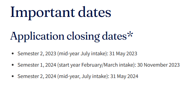 ![]() 可能是在2024的QS世界排名中过于扬眉吐气了,最近澳洲的申请人数可谓是爆满! AECC近日发布的《2022年全球留学趋势报告(AECC Insights Student Survey)》中显示,澳大利亚以8.76分(满分10分)的高分位居榜首,被认为是最安全的留学目的地。 ![]() 可能正是受到了排名上升的影响,赴澳留学申请的学生开始变多,澳洲留学势头一片大好...... 其中,在重新考虑留学目的地方面,澳大利亚以30.8%的增长率位居首位! 可能是数据过于利好,也有可能是申请的学生开始变多,在这个全球都在抢人的情况下,澳洲最近的动作,可以说那叫一个多! 比如说延长工作签证的时间,同时增加了留学生的打工时长等等。接下来就给大家来盘点一下,澳洲最近宣布的留学新规!(在文末还为大家总结了澳洲八大 2024 Fall的申请时间汇总哦) 01 留学生签证存款要求增加 前不久,澳洲政府宣布,将提高国际学生申请学生签证所需的存款证明的金额。 ![]() 图源:澳洲政府官网 由于疫情的原因,该金额自2019年以来一直没有提高过,一直是21,041澳元,但从2023年10月1日起,申请澳洲学生签证银行存款金额提高17%,为至少24,505澳元! 据悉,此次增加金额是为了跟上目前的生活成本,使国际学生在读期间能够负担得起自己的费用,并且不会因为迫切需要就业而面临被剥削的风险。 02 留学生工作时长和时薪增加 此前为了解决劳动力严重短缺的问题,澳洲政府暂时放宽了学生签证的工作时间限制,于今年的6月30日恢复原本的时间限制。 好消息是,从今年7月开始,留学生工作时长上限重新恢复了! 时间上限也改成了48小时,比之前的上限多了8小时。而且最低时薪也涨到了23.23刀! 如果想在课余时间打工的澳洲留学生们简直不要太开心。 03 禁止赴澳留学生注册多个课程 本月的澳洲一项调查显示,截止到2023年5月,一共有27万名留学生在澳洲开始新课程,比去年同期高出60%。 ![]() 图源:路透社 不过,这么庞大的人数并不全都是留学生,而是打着留学生身份的幌子来打工的人。同时,注册多所高校的人数激增,2019年和2022年同期的总人数只有10500人,但2023年上半年就已经达到了惊人的17000人! 注册多所高校其实被叫做平行COE,这个平行COE就是允许国际学生在注册主要课程时参加其他额外的课程。 起初平行COE被颁布时,并不是为了引起这么多的打工人前来,而是为了让国际学生不仅可以获取主课程的知识,还可以通过学习其他额外的课程获得更多有助于就业的培训。 但调查发现,平行COE慢慢地变成了很多其他国家移民者钻空子的工具。 打着留学的幌子,边工作边上课留在澳洲,自然是不被允许的,所以澳洲政府开始对半工半读加以限制: 根据联邦政府的最新改革,留学生在学习6个月之前,不再被允许从大学转到职业课程,并且获得学校提供的Release Letter后才能转学。 04 多所大学不再认可Online语言成绩 包括墨尔本大学、澳国立大学在内的多所澳洲大学都不再认可online语言成绩了! 比如,从今年7月26日开始,改版后的托福考试成绩将不再被接受认可,而多所大学也不再接受任何PTE或TOEFL线上考试作为学校的入学语言成绩。 而澳国立大学官网更是更新了——从即日起不再接受雅思单项重考分数的规定? ![]() 澳洲目前接受以下英语测试: ●雅思 (IELTS),包括单科技能重考 (OSR)* ●PTE ●剑桥英语 (CAE) ● OET(为健康专业人员开发的测试) 05 部分专业毕业生签证延长 从7月起,教育、医学、护理、IT、工程、农业、食品等专业的毕业生工作签证可以申请延长2年,最长甚至可以达到6年。也就是说,原本的澳洲485子类签证的时间变为: ●部分专业的本科2-4年 ●部分专业的研究生3-5年 ●所有的博士都是4-6年 ![]() 图源:澳洲移民局 06 留学生全职工作职业增加 学生签证持有者可以全职在age care(老人护理)行业工作,不受学生签证工作时间限制,可以更换雇主。 对于想打工赚钱的同学来说,是个很不错的选择。 07 11月1日起,澳洲境内续签免体检政策取消! 澳洲移民局在2022年10月份的政策是豁免了境内临时居住签证申请时的查体要求health examination,包括407 / 408 / 482 / 485 / 500 / 590 / 600 / 870等在内的多种临时签证申请人都受益,既可以节省时间高效获批,又可以省下数百澳元的体检费。根据澳洲移民局官网最近发布的消息,取消此项豁免,也就是说从11月1日起,在境内续签临时居留签证,要按照移民局的要求进行体检health examination、提交体检结果。 秒下签将成为历史!尽早递交省时又省钱! ![]() 2024学年 澳八大申请截止日期 01 墨尔本大学 截止时间: ●2024年第一学期(2月/3月入学)截止日期:2023年11月30日 ●2024年第二学期(7 月入学)截止日期:2024年5月31日 ![]() ●在2023QS世界大学学科排名中,墨尔本大学有9个学科进入全球前20名,38个学科进入全球前50名。 02 悉尼大学 截止时间: ●2024年第一学期申请开放日期为2023年8月30日,截止日期为2024年1月15日 ●2024年第二学期申请开放日期为2024年1月31日,截止日期为2024年6月25日 ![]() 03 新南威尔士大学 截止时间: ●2024年Term1申请截止日期:2023年11月30日 ●2024年Term 2申请截止日期:2024年3月31日 ●2024年Term 3申请截止日期:2024年7月31日 ![]() 04 澳洲国立大学 澳洲国立大学2024年第一学期的申请于2023年3月14日开放; 第二学期申请于2023年6月1日开放。 申请者可以在之后的任何时间申请。 ![]() ![]() 05 蒙纳士大学 对国际学生全年开放申请,招满为止