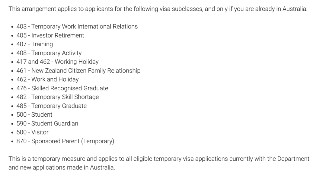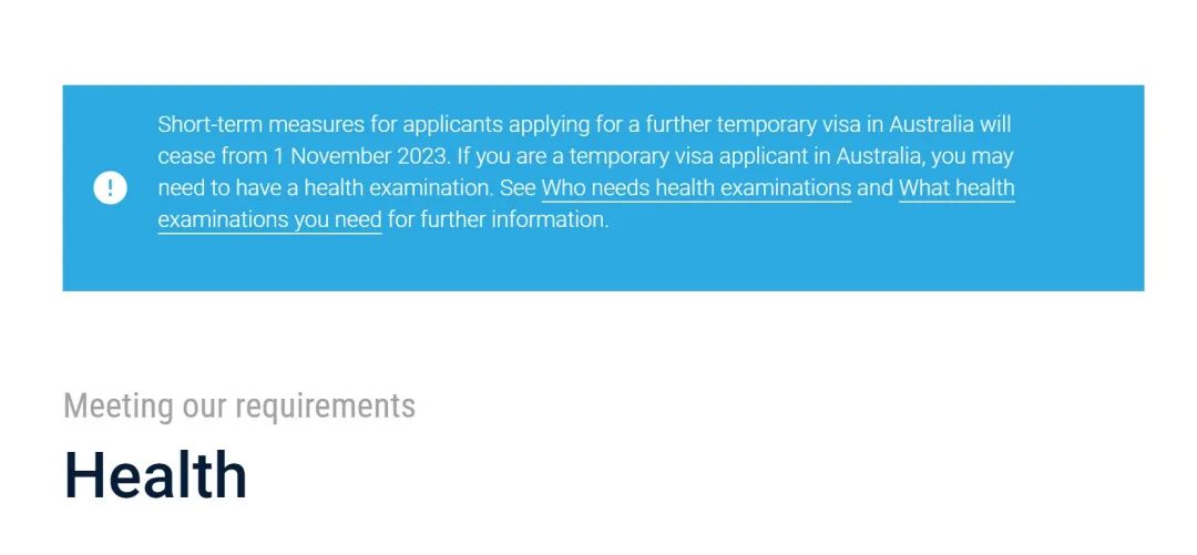 ![]() 2022年10月,澳大利亚移民局为了处理大量的积压案件,对临时签证的要求进行了修改,满足要求的境内申请人可以免体检。但是近期,移民局对此政策进行了更新。 ![]() 澳洲临签体检豁免将取消 ![]() 近期,澳洲政府再次更新体检要求,宣布从2023年11月1日开始,取消此项豁免,对于澳洲境内续签临时居留签证,要按照移民局的要求进行体检Health Examination,提交体检结果。 ![]() 此安排适用于以下签证类别的申请人,并且仅当申请人此刻已经在澳大利亚: 具体需要进行体检临时签证申请人包括: ![]() 403 - Temporary Work International Relations 短期工作签证(国际关系类);405 - Investor Retirement 投资退休签证;407 - Training 培训签证;408 - Temporary Activity 临时活动签证;417 and 462 - Working Holiday 打工度假签证;461 - New Zealand Citizen Family Relationship 新西兰公民家庭成员签证;476 - Skilled Recognised Graduate 指定专业毕业生签证;482 - Temporary Skill Shortage 雇主担保临时签证;485 - Temporary Graduate 毕业生工作签证;500 - Student 学生签证;590 - Student Guardian 学生监护人签证;600 - Visitor 旅行签证;870 - Sponsored Parent (Temporary) 父母临居签证; 目前离11月1日也仅剩下两周,即使递交也有可能无法满足11月1日前能豁免的要求。 澳洲移民律师建议大家,最好还是能在11月1日之前递交,尽早提前准备,这样能剩下400多澳元的查体费,也能节省排队查体的时间。 ![]() 澳洲签证体检项目 ![]() 澳大利亚移民局针对不同年龄的申请人,要求的具体体检项目有所差异,具体如下:
